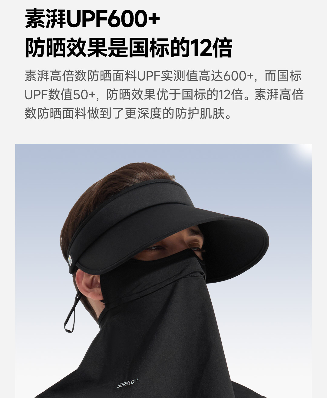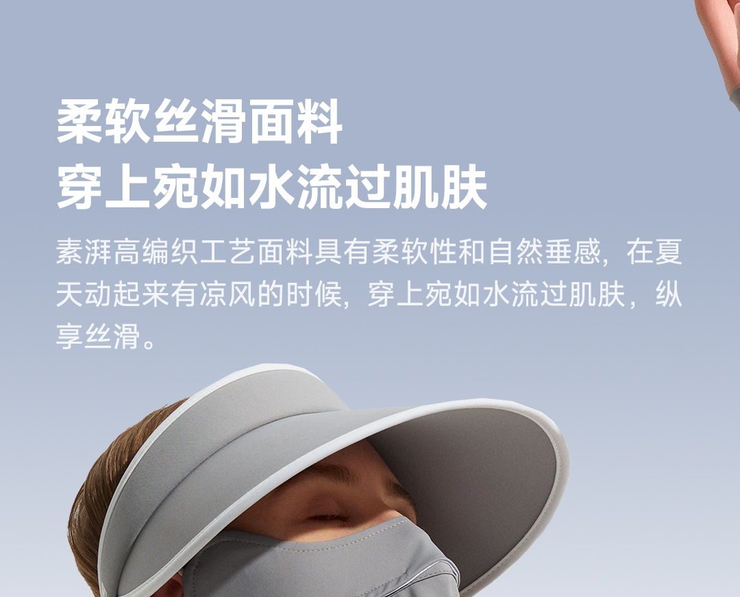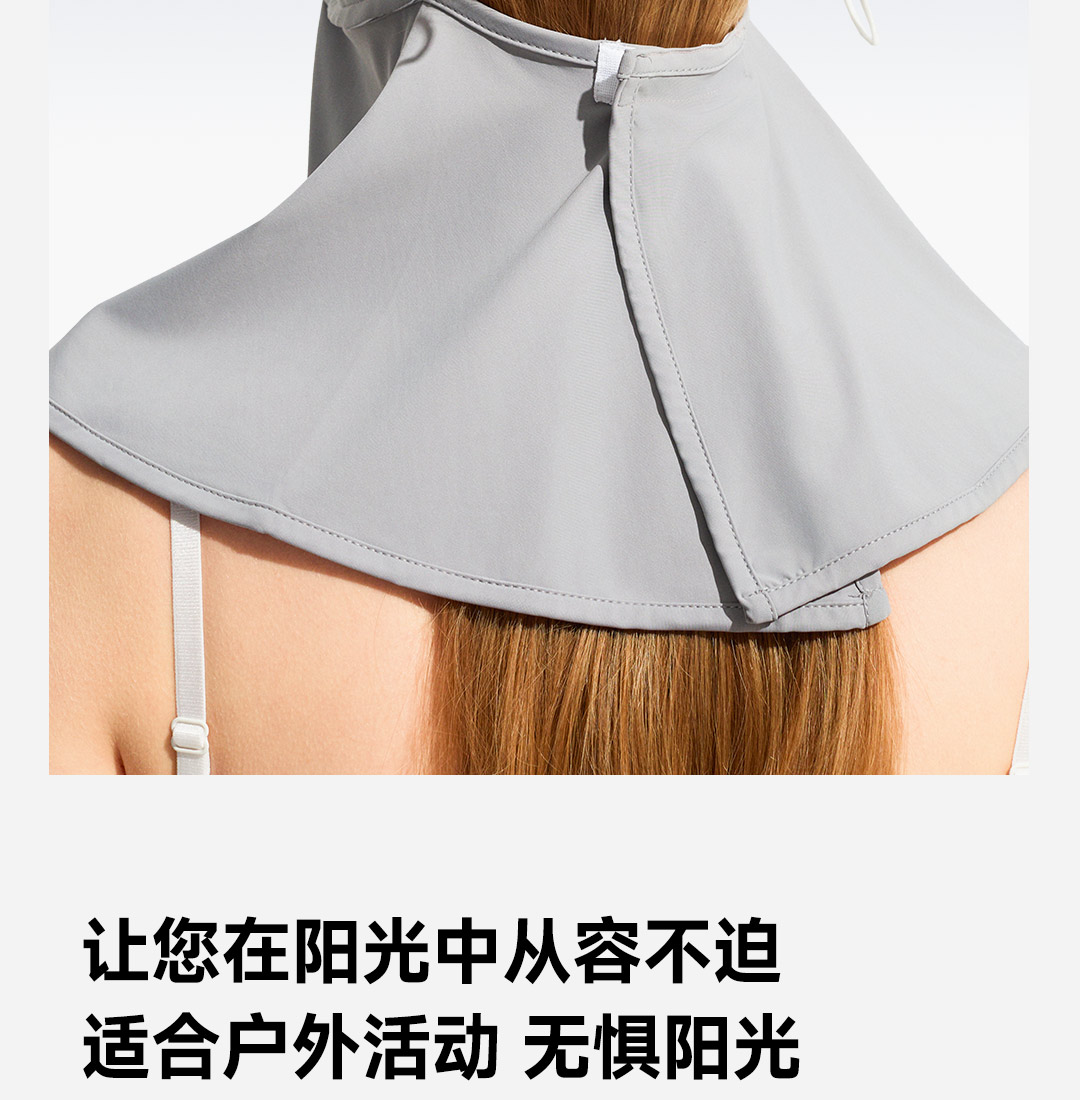 素湃全波段高倍数凉感防晒帽,全脸防晒 为你独当一面、国际皮肤癌基金会推荐;专利全波段防晒防蚊科技面料;UPF600+高倍数防晒;耐磨防勾丝陪你更久