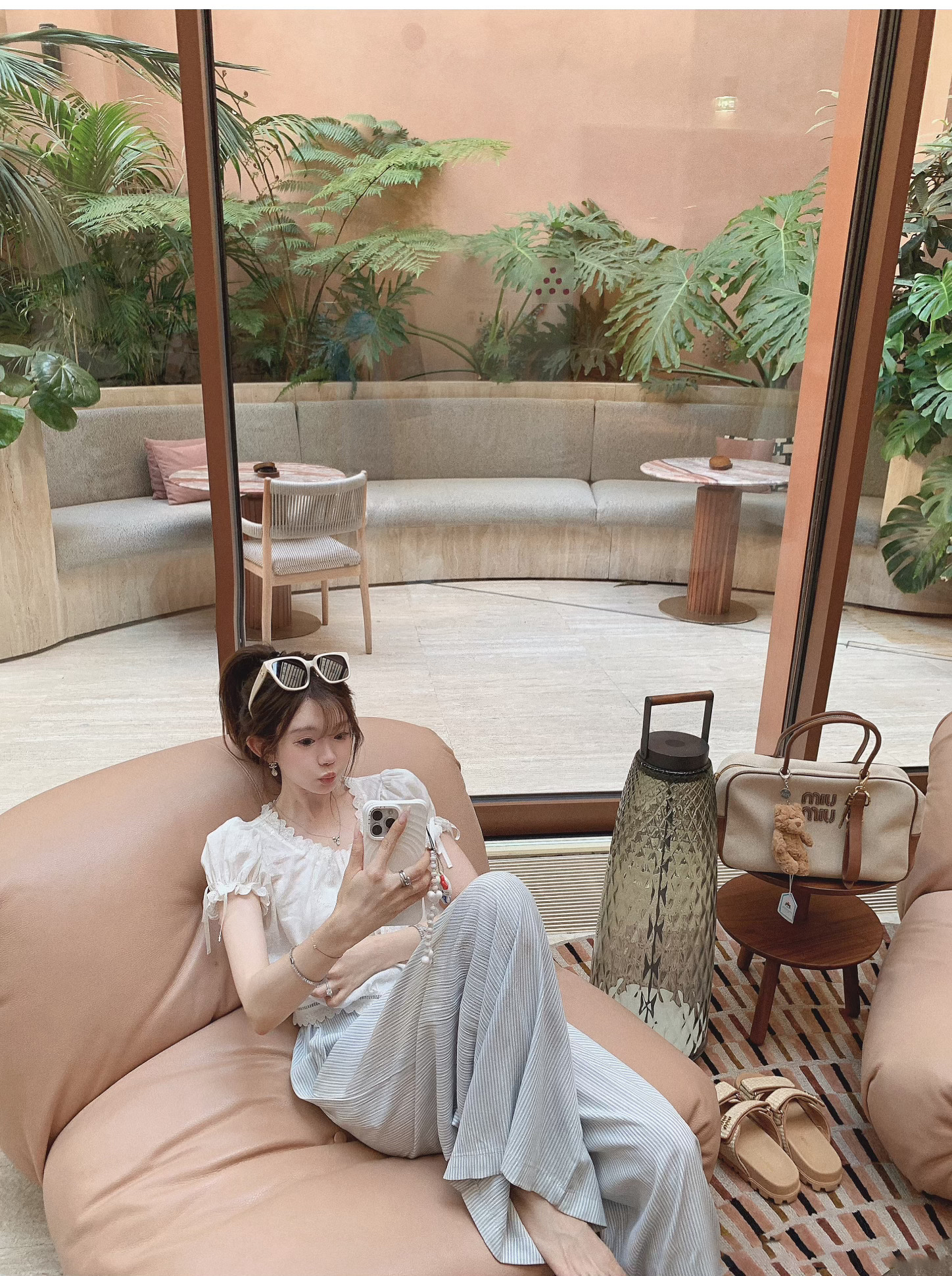 蓝条条 翩翩裤:45聚酯纤维55粘纤