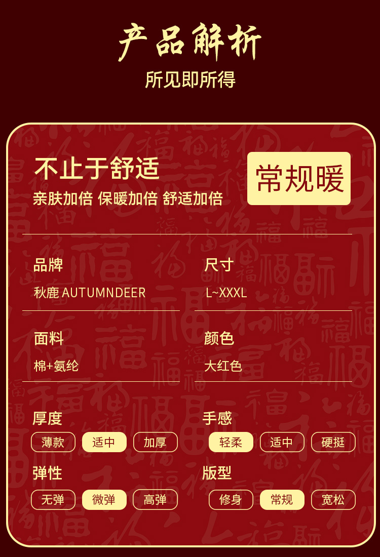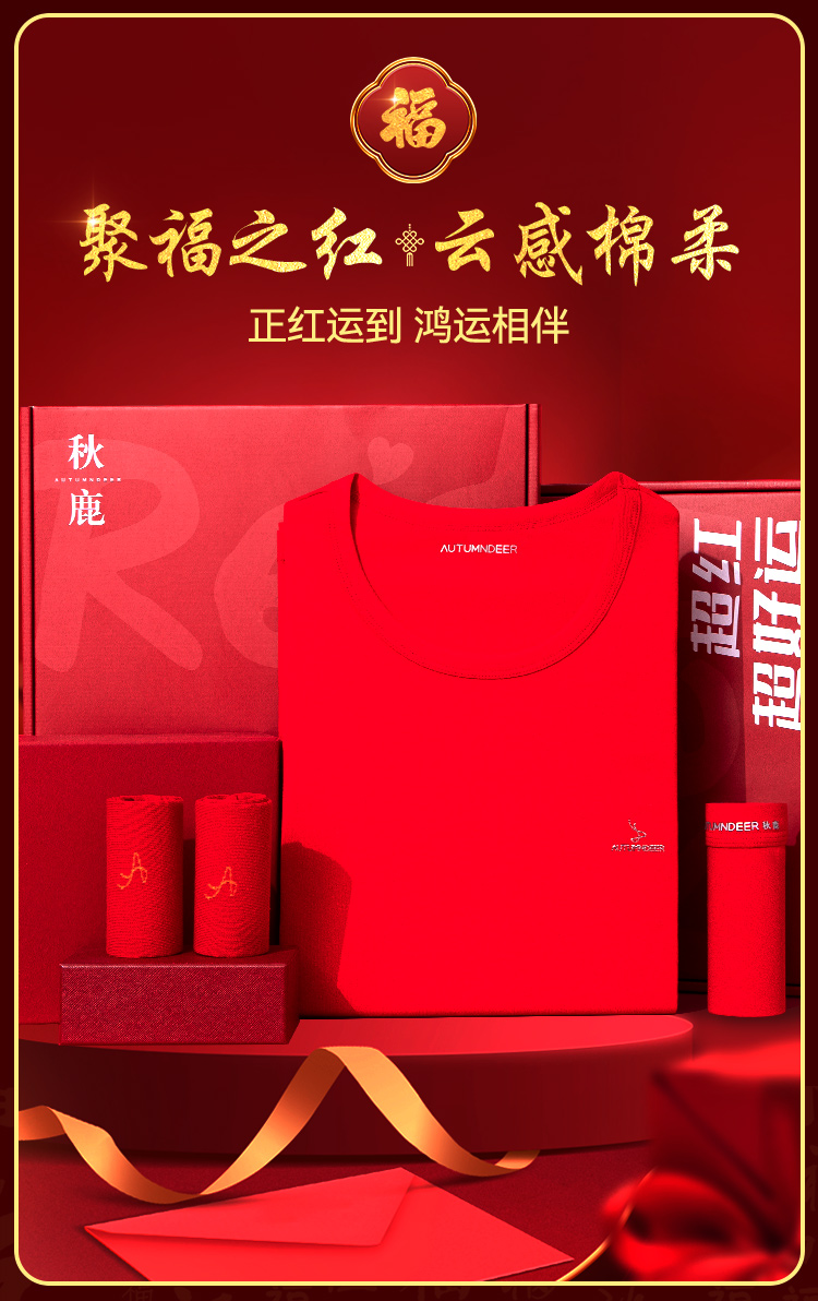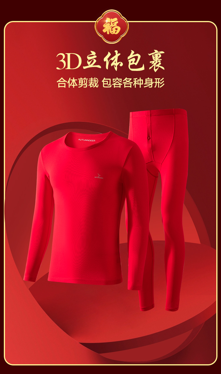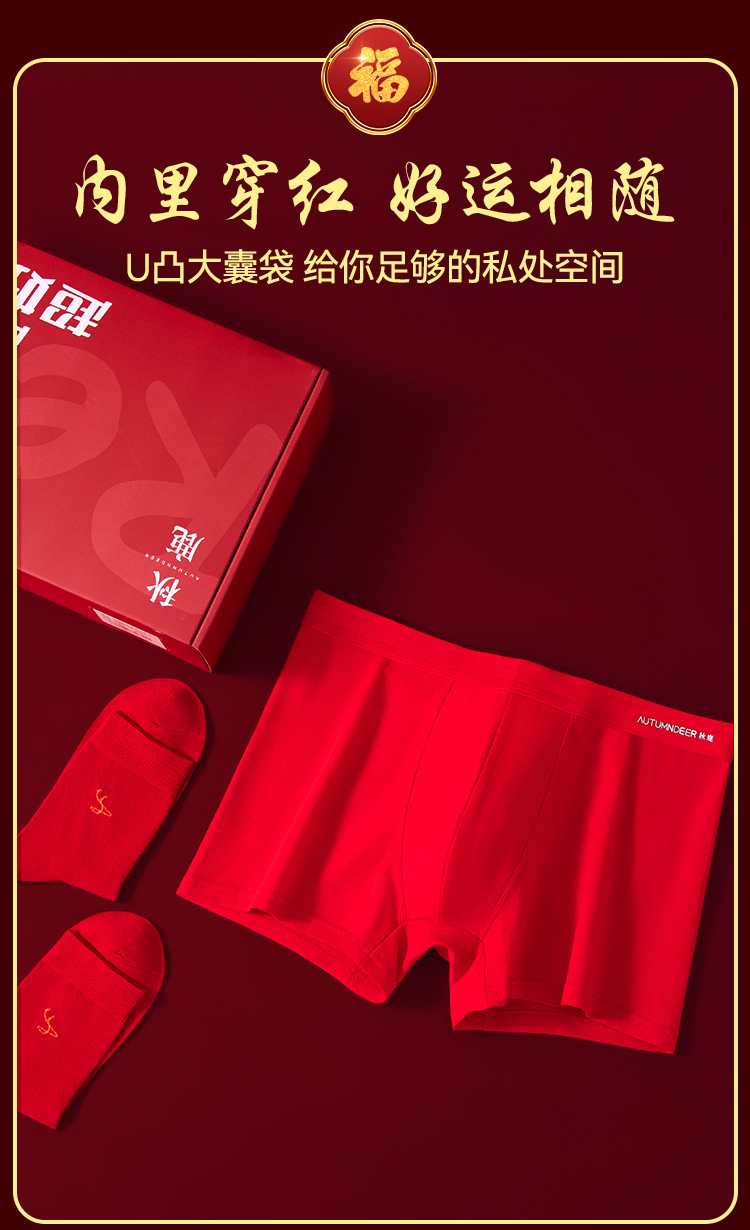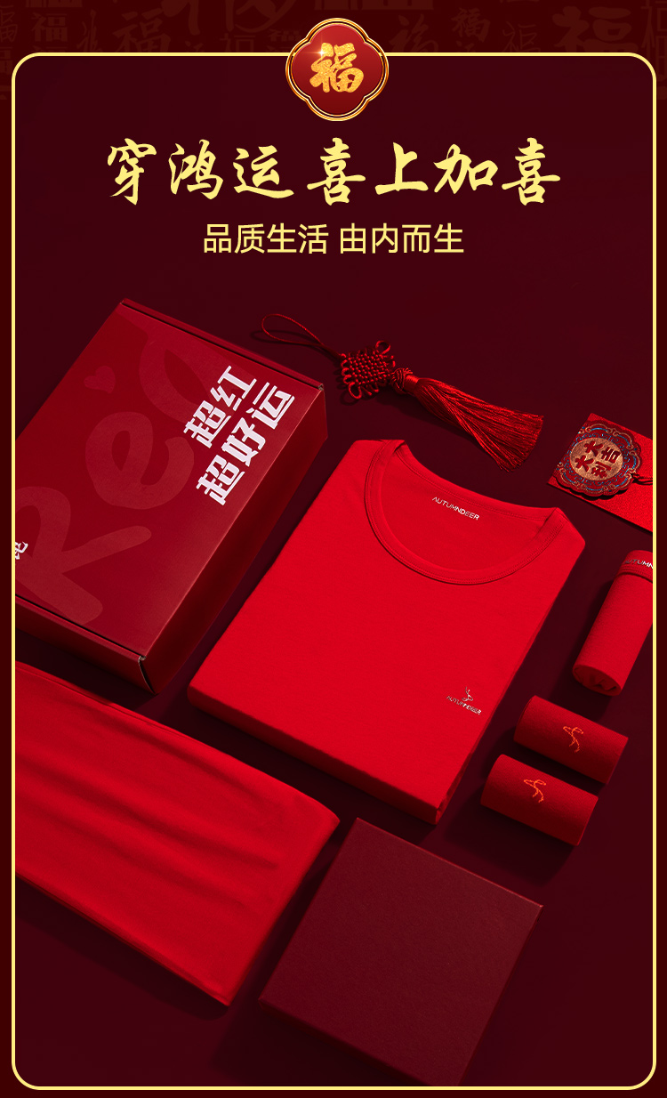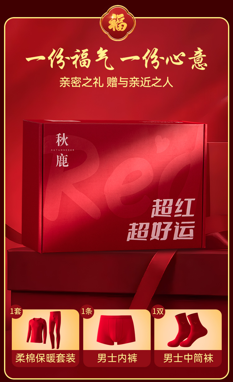 【清仓捡漏】【男士棉氨套装+内裤+福袜】【L-3XL】【秋鹿】男士本命年礼盒套装(95%棉5%氨纶)