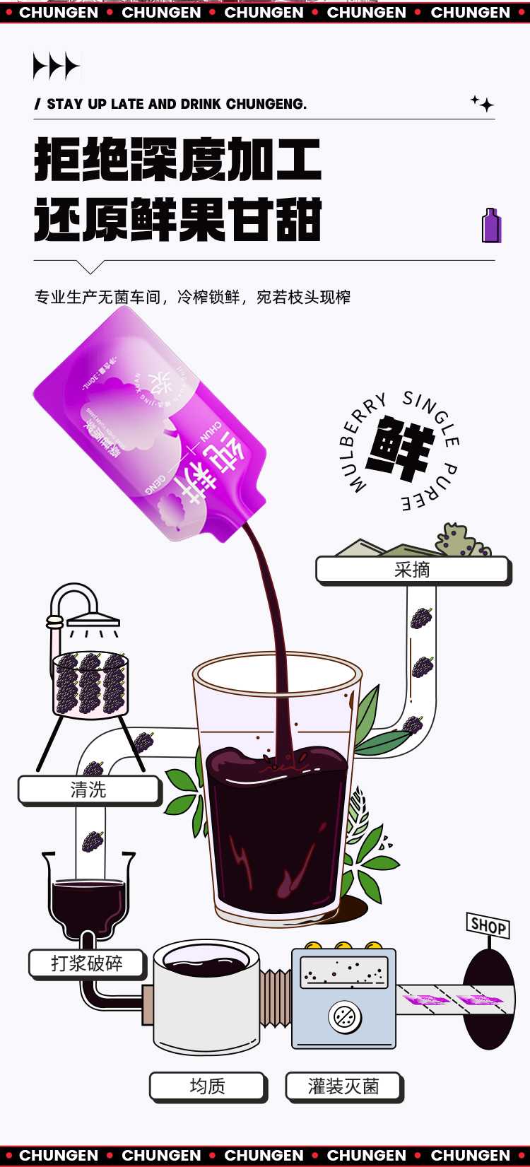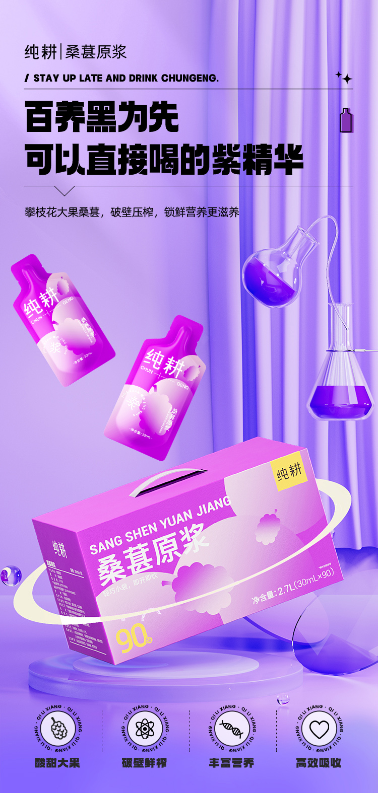 纯耕2.7L(90袋)量贩装桑葚原浆精选四川攀枝花的大果桑葚一袋桑葚原浆≈15颗桑葚榨汁