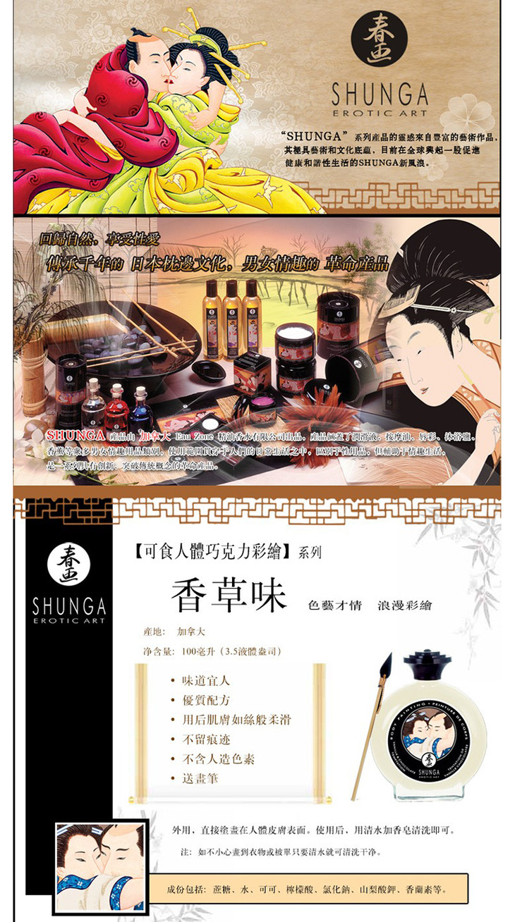 【新品来袭】春画SHUNGA人体情趣彩绘巧克力涂鸦舔食全身成人夫妻房事前戏挑逗用具另类用品加拿大原装进口 草莓香槟味100ml