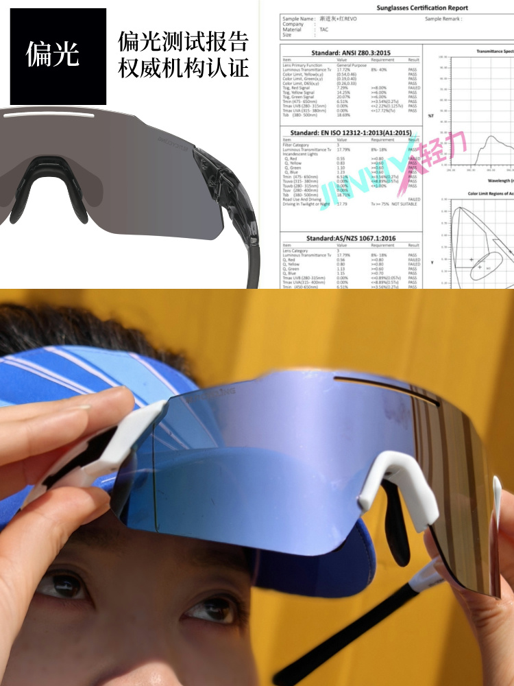 2、轻力不仅偏光,同时防紫外线指数达到UV400,镜片100%防紫外。