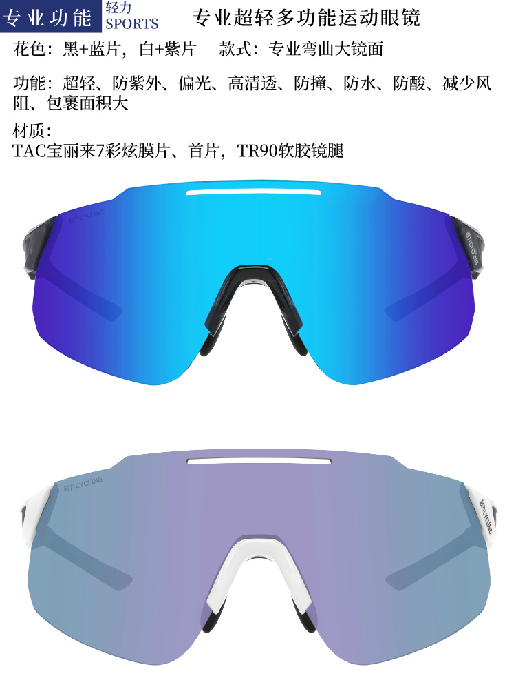 紫雪蓝雪专业超轻偏光防紫外防腐蚀户外运动眼镜2色