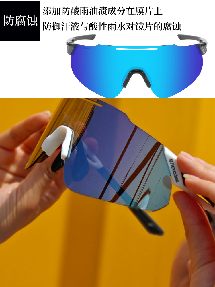 镜片的偏光有偏光膜层,一款镜片是由不同种膜层组成的,镀revo彩膜,是墨镜片里面较贵的其中一种,镀revo膜层,为优质运动眼镜采用。它是由8-12层极薄的水银镀成的,所以比较贵,抗辐射效果非常好,颜色多彩可配合眼镜的颜色,且有防水效果,表面光滑,水滴在片上可以迅速化开,不会停留在片上。