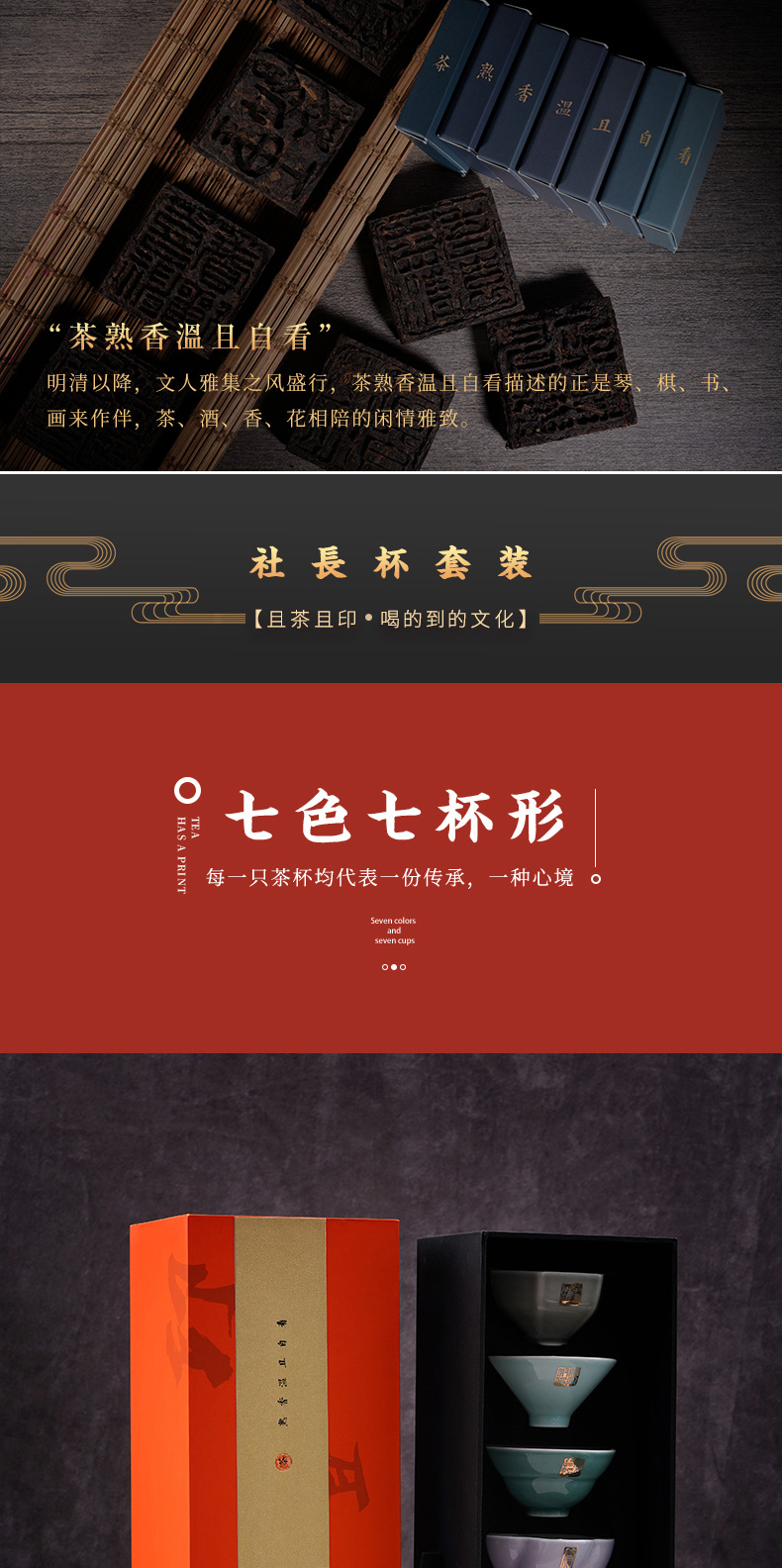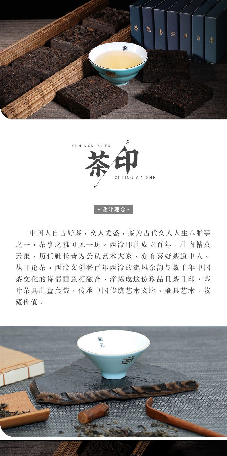 【西泠印社】 且茶且印茶具茶饼七任社长元素印章杯礼盒套装