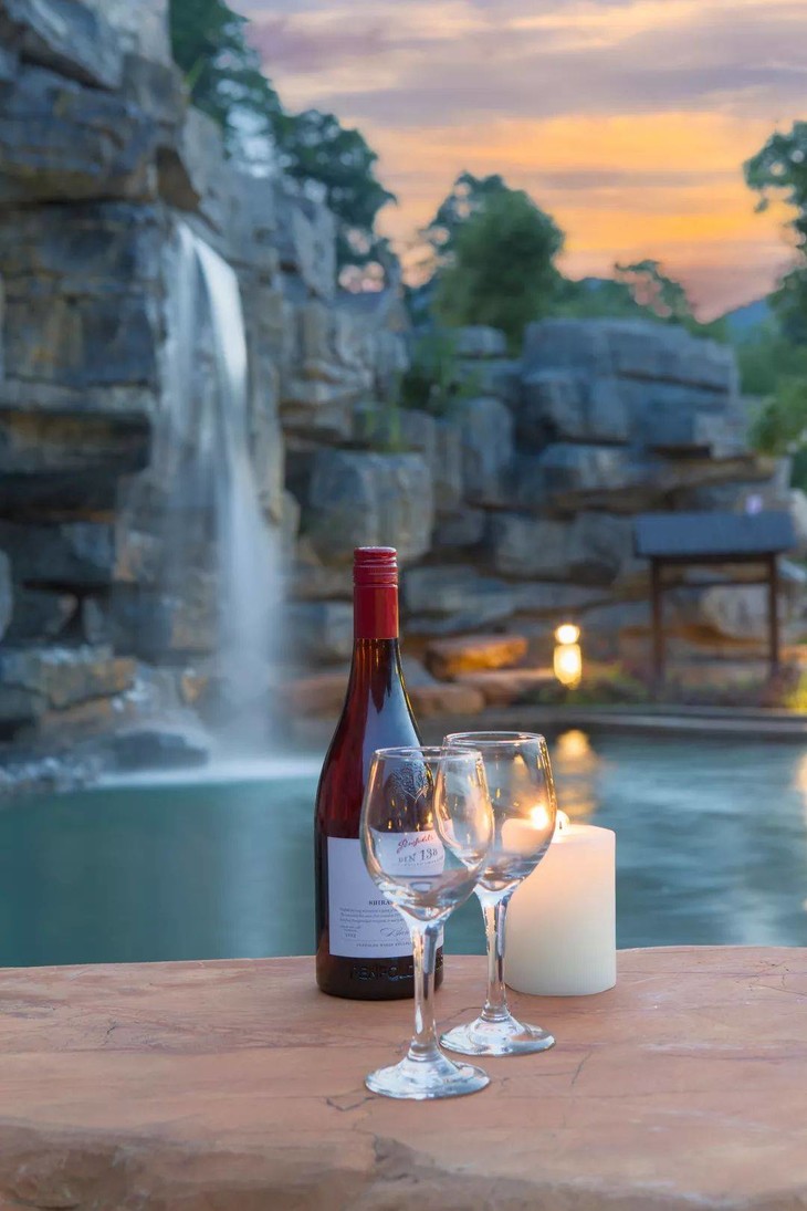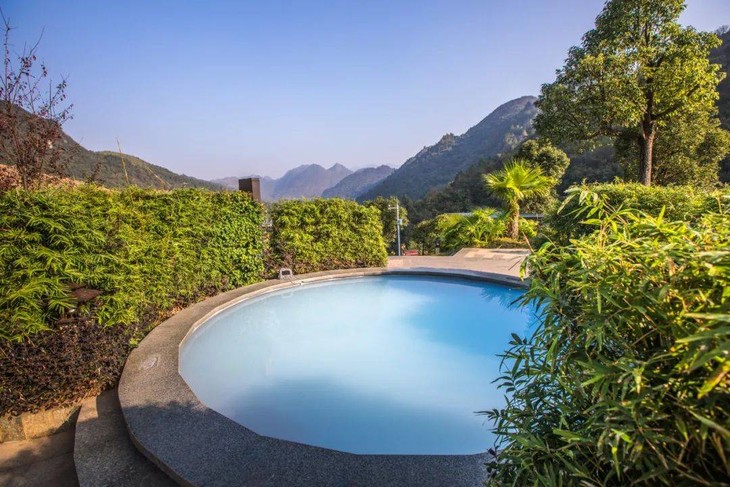 45个温泉泡汤池,顺山势错落有致