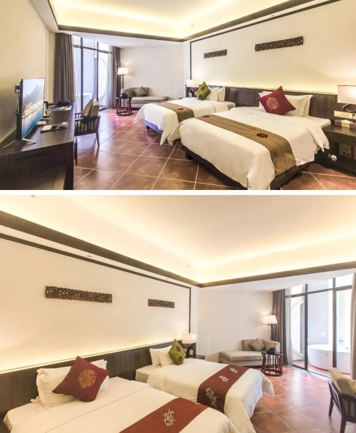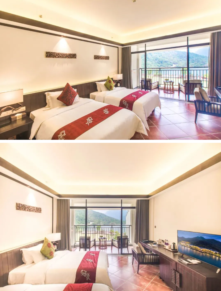 1、雅致湖景房/豪华山景房 1 间 2 晚或 2 间1 晚(不可拆分使用);