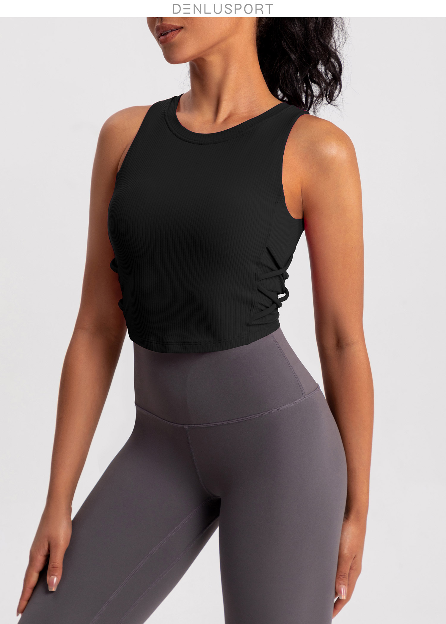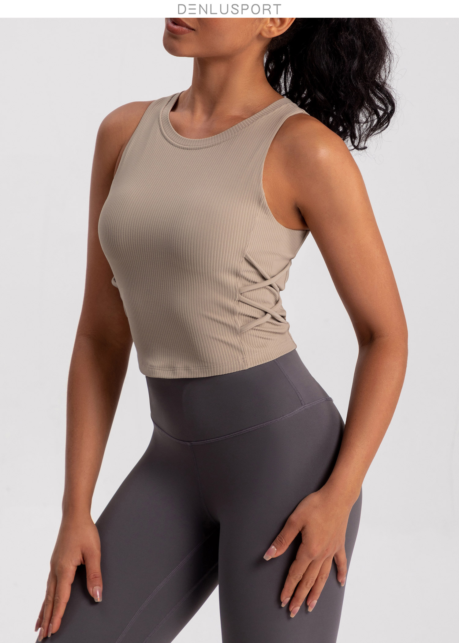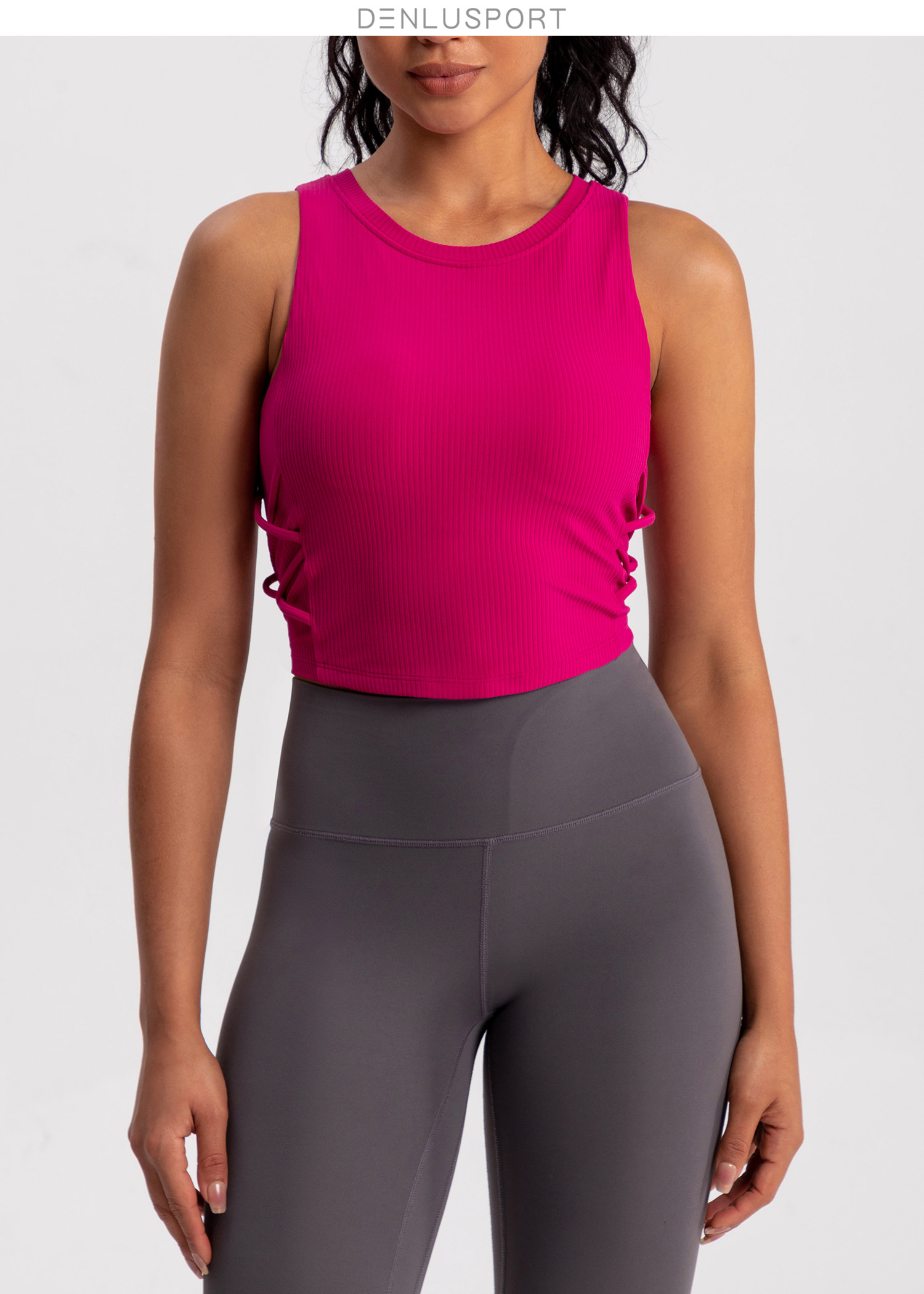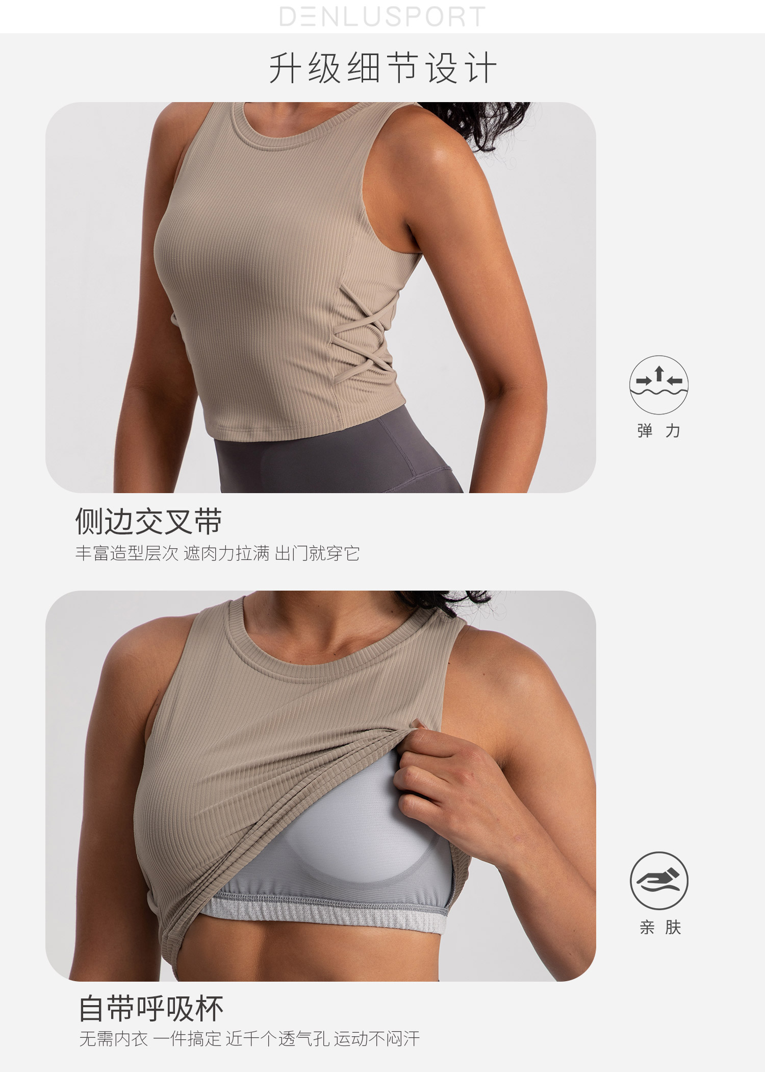螺纹一体杯运动健身无袖背心 高弹柔软触感 下摆交叉带设计 外穿更有型 DY66189