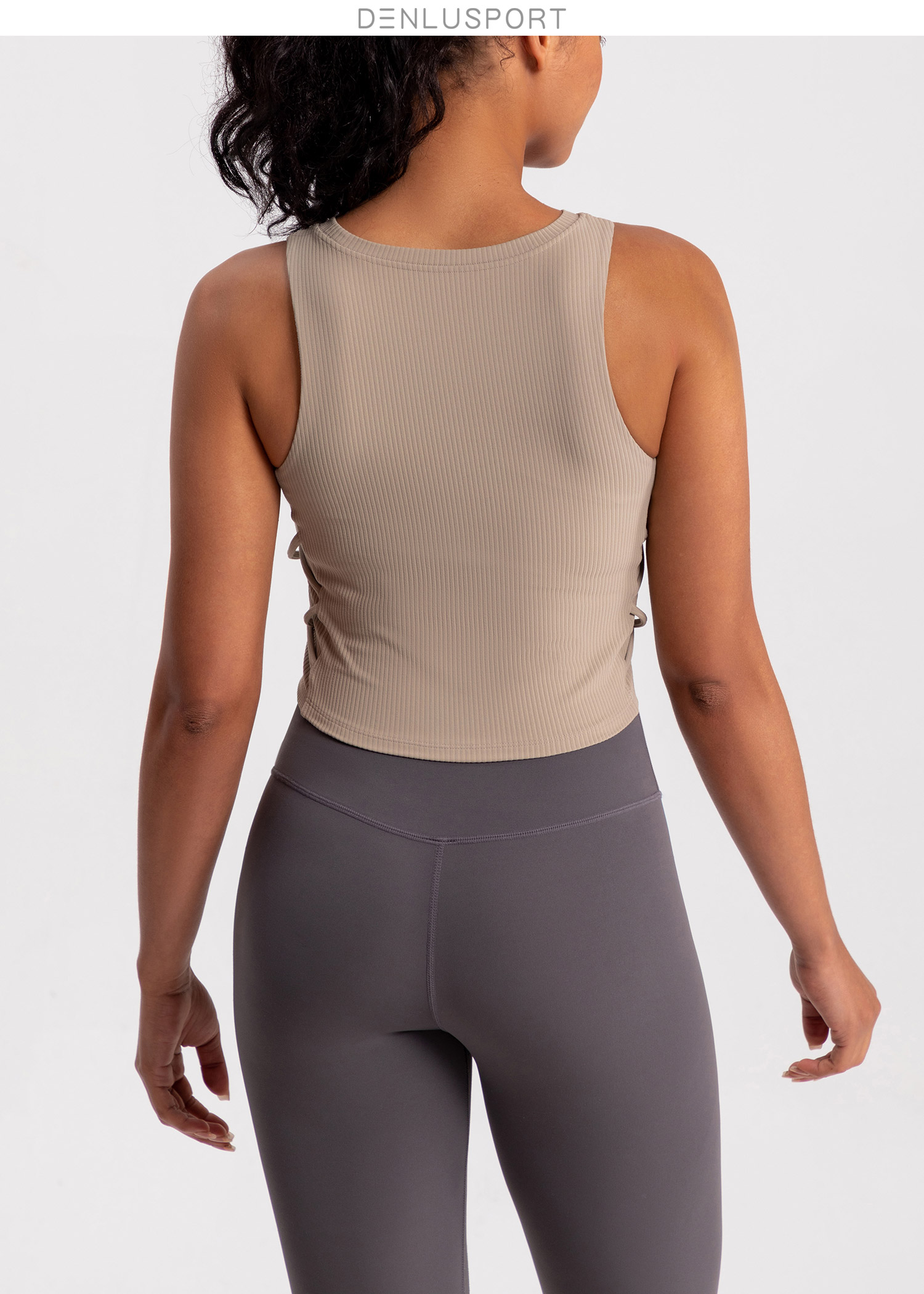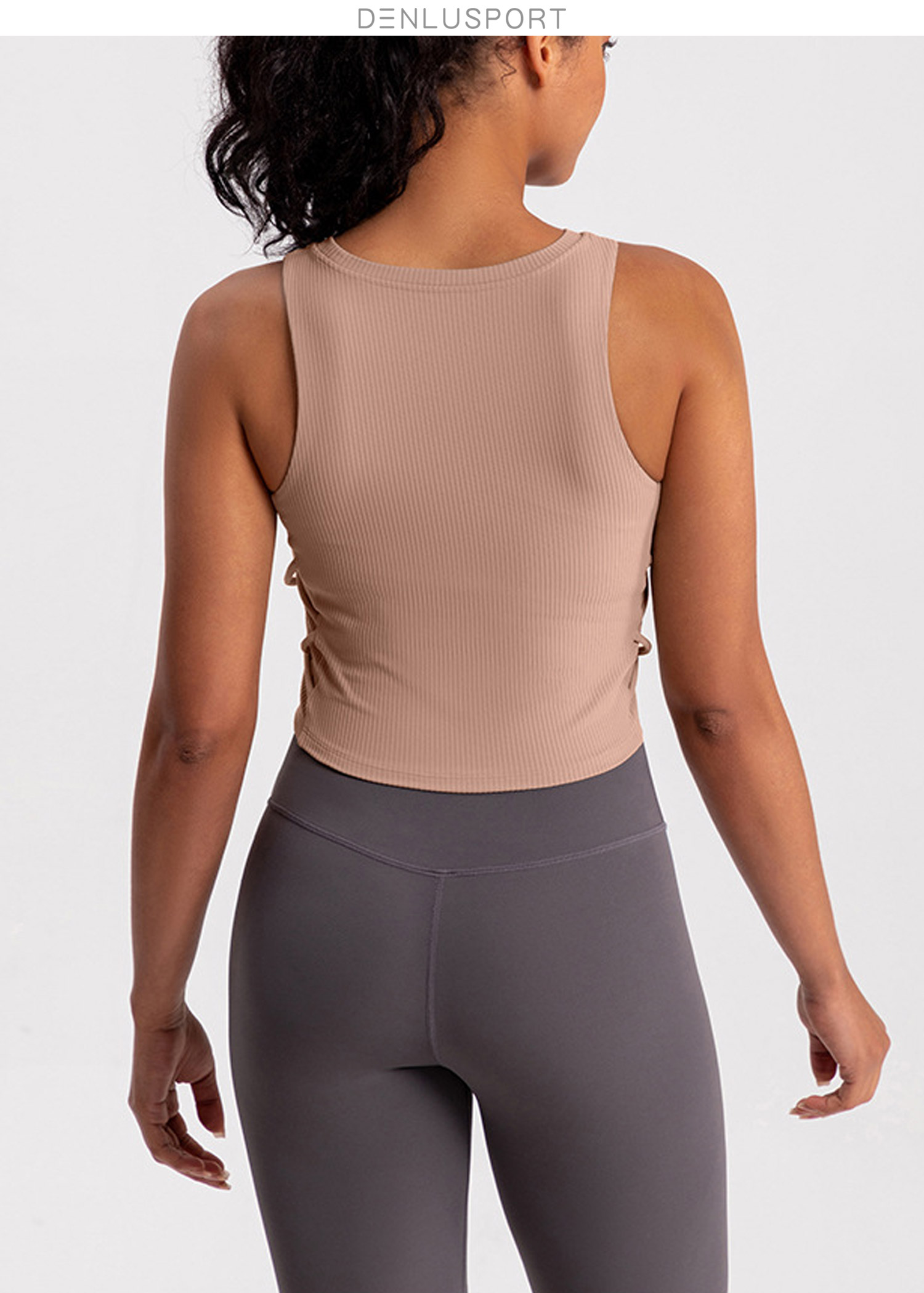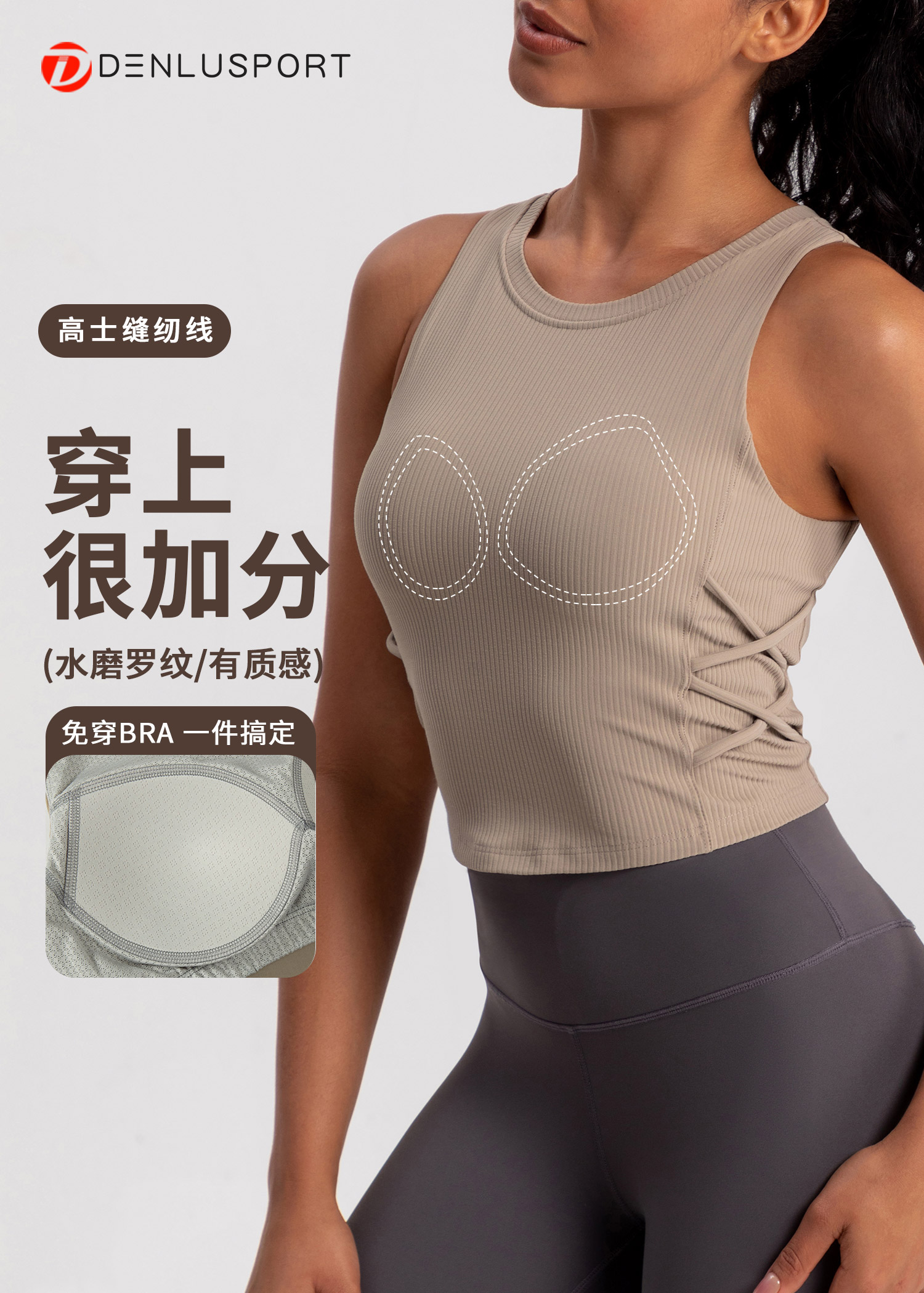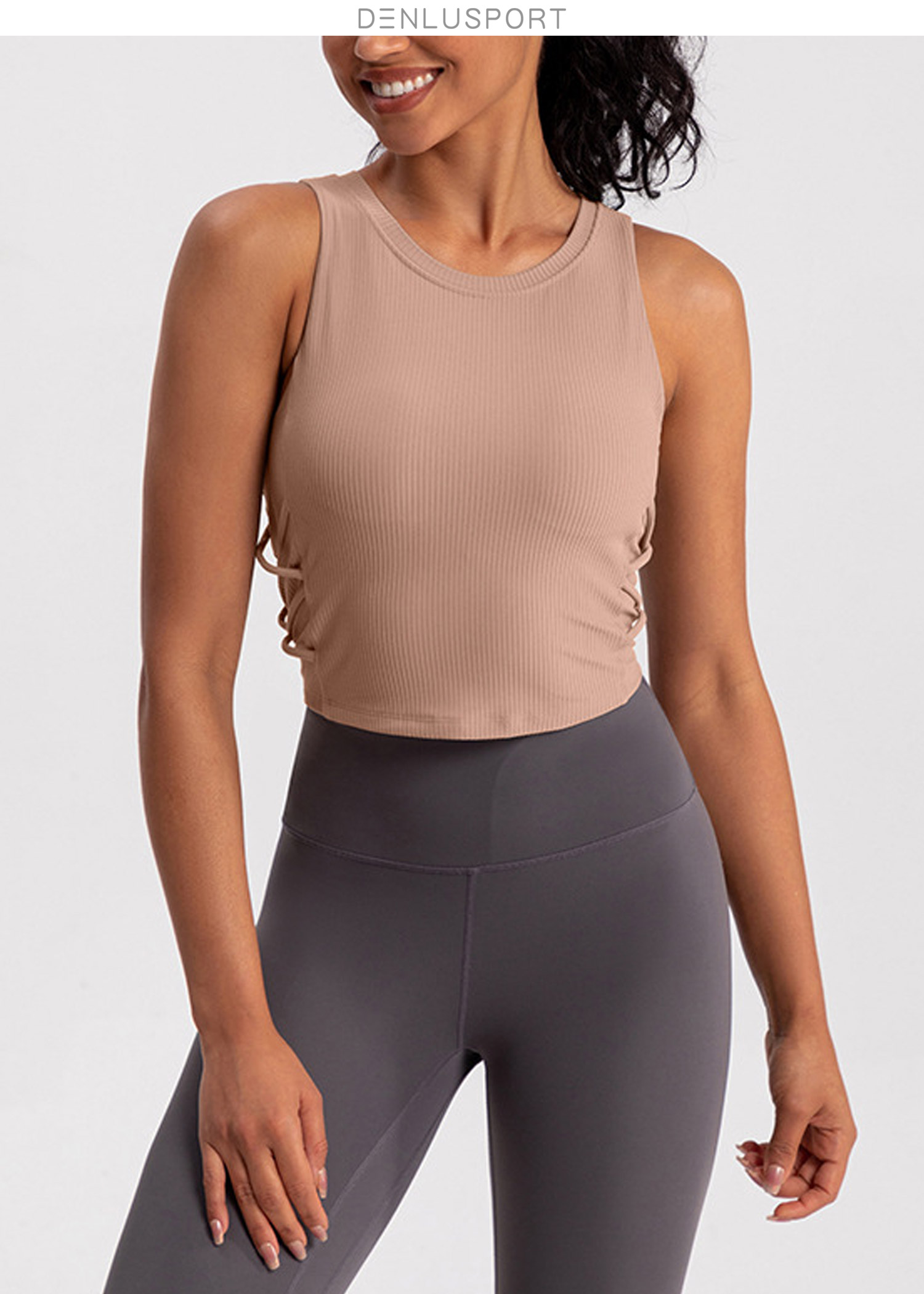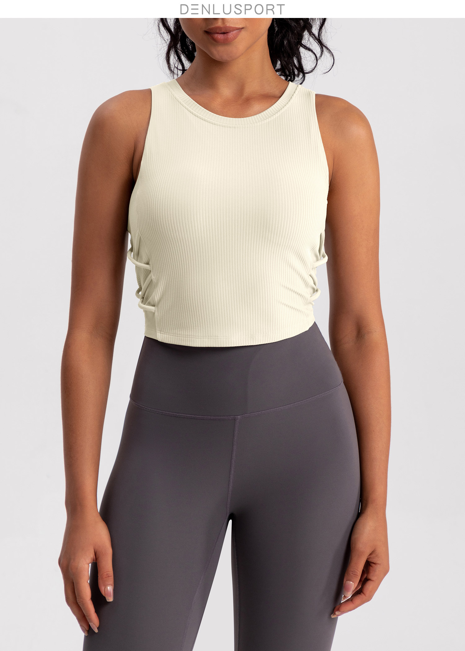 螺纹一体杯运动健身无袖背心 高弹柔软触感 下摆交叉带设计 外穿更有型 DY66189