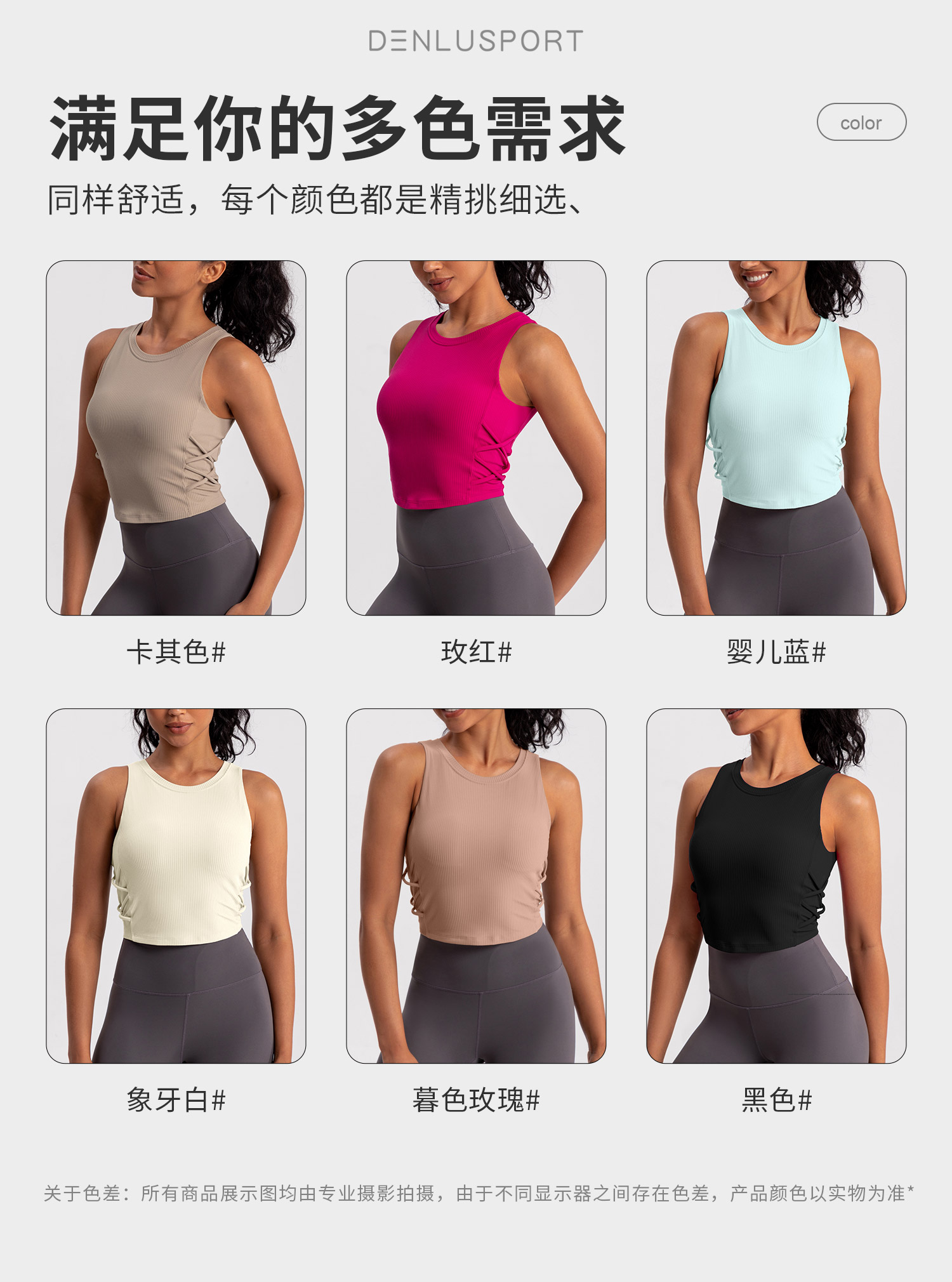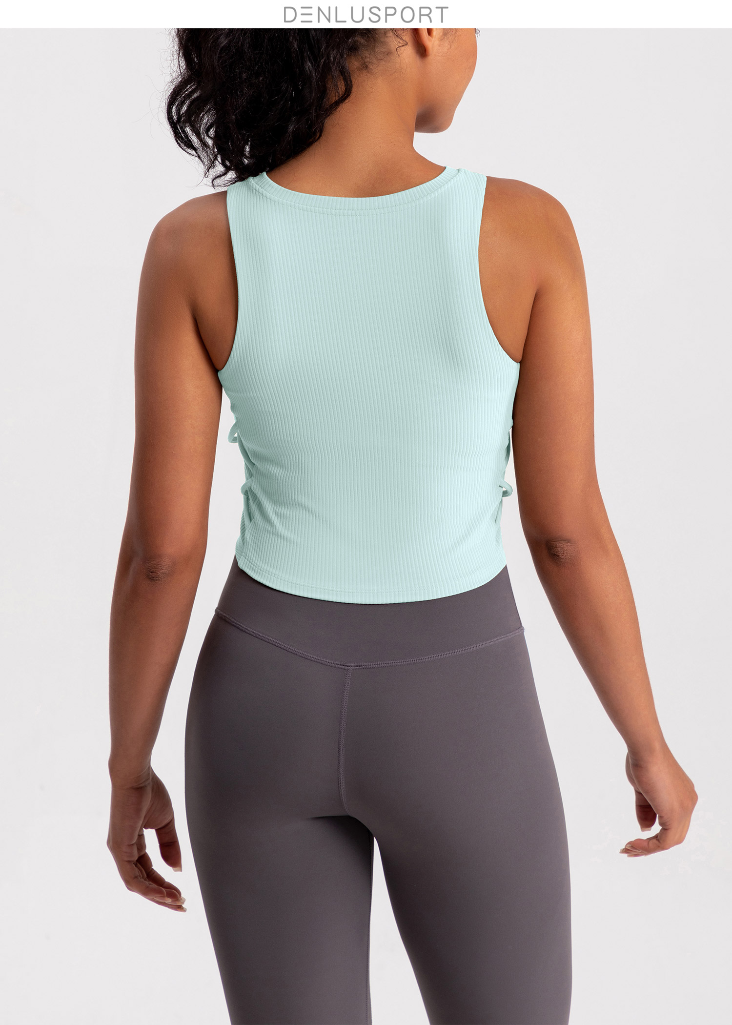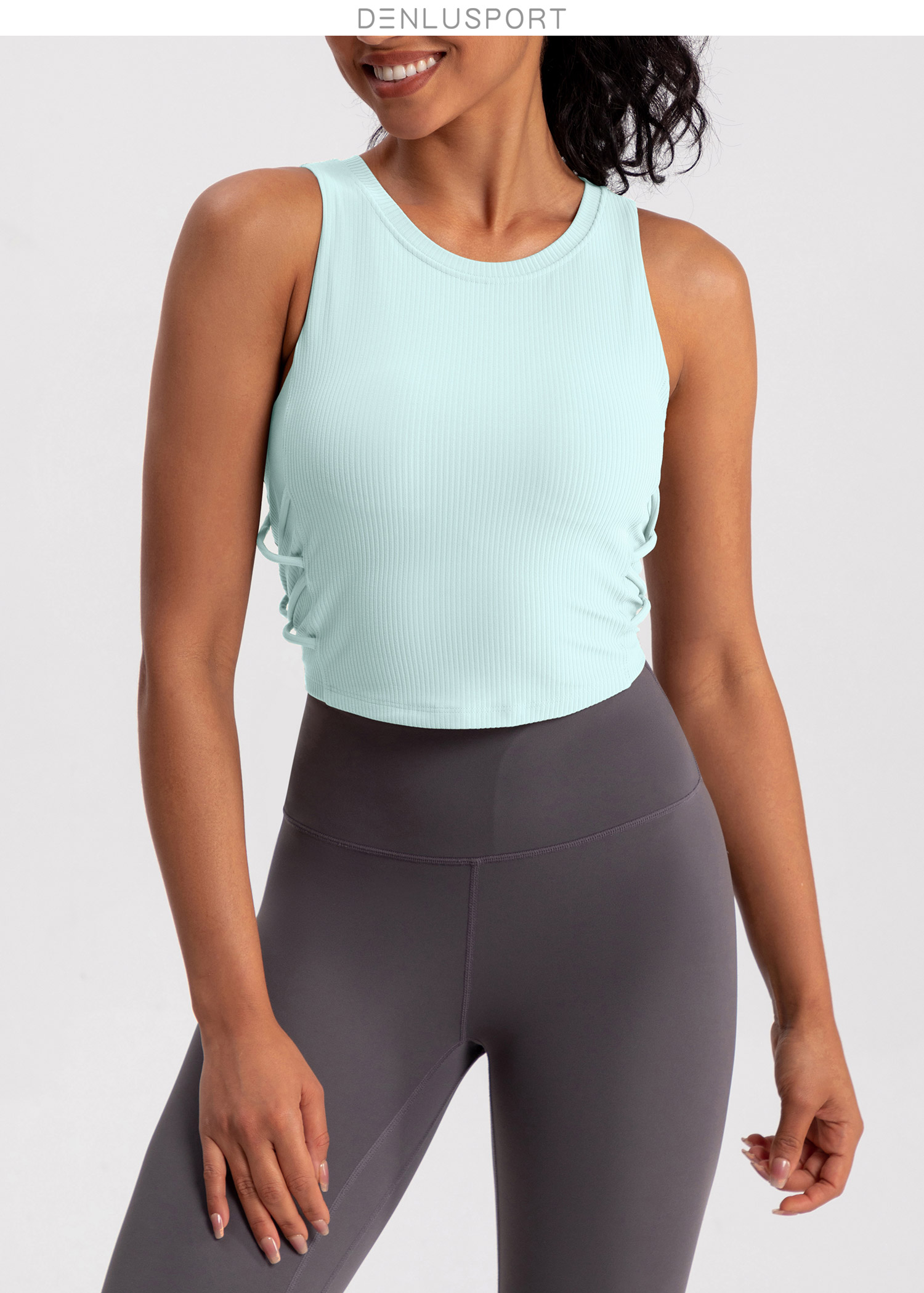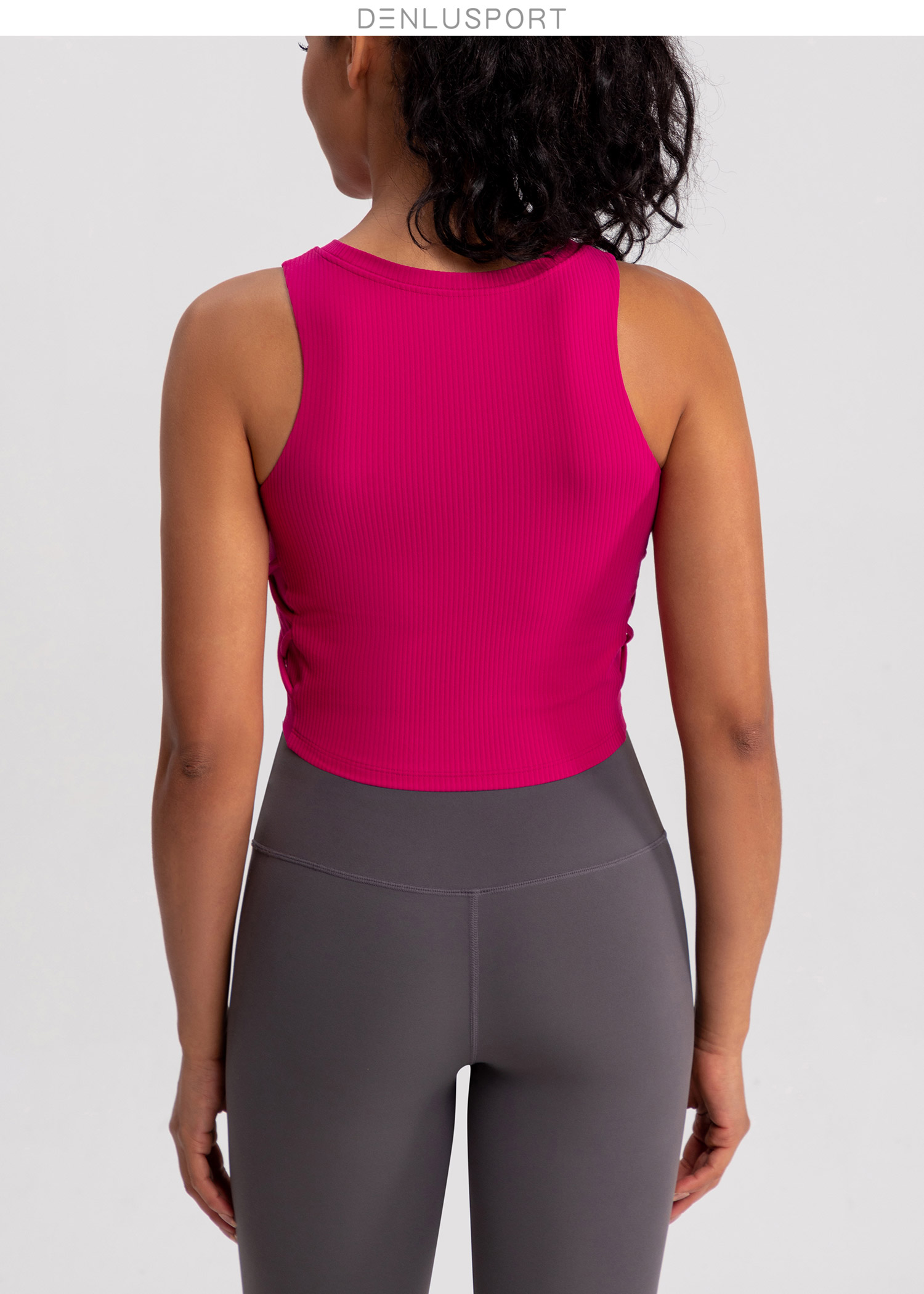 螺纹一体杯运动健身无袖背心 高弹柔软触感 下摆交叉带设计 外穿更有型 DY66189