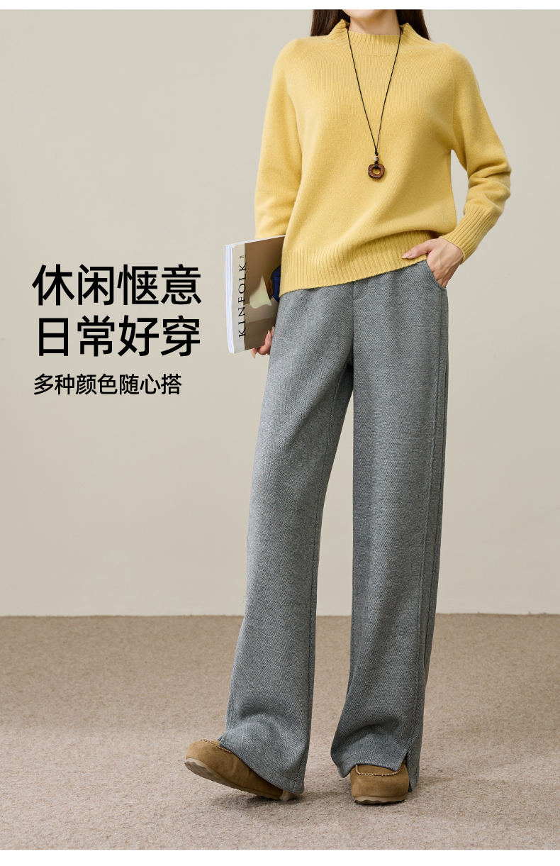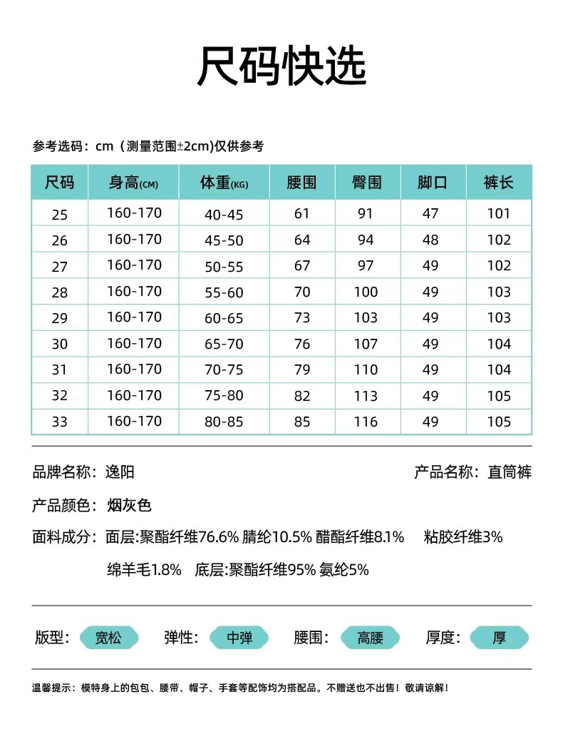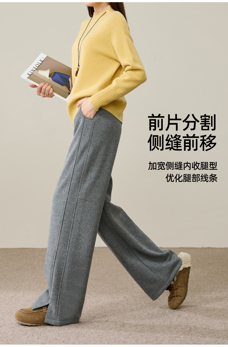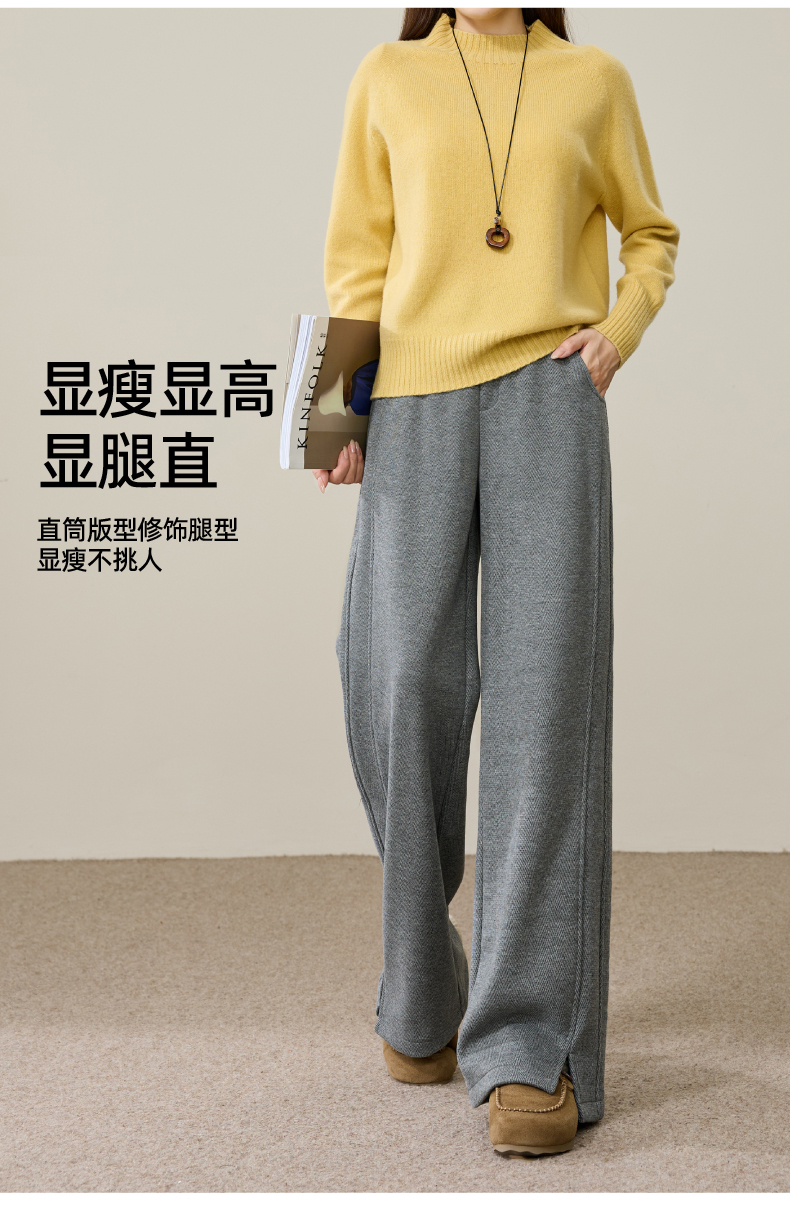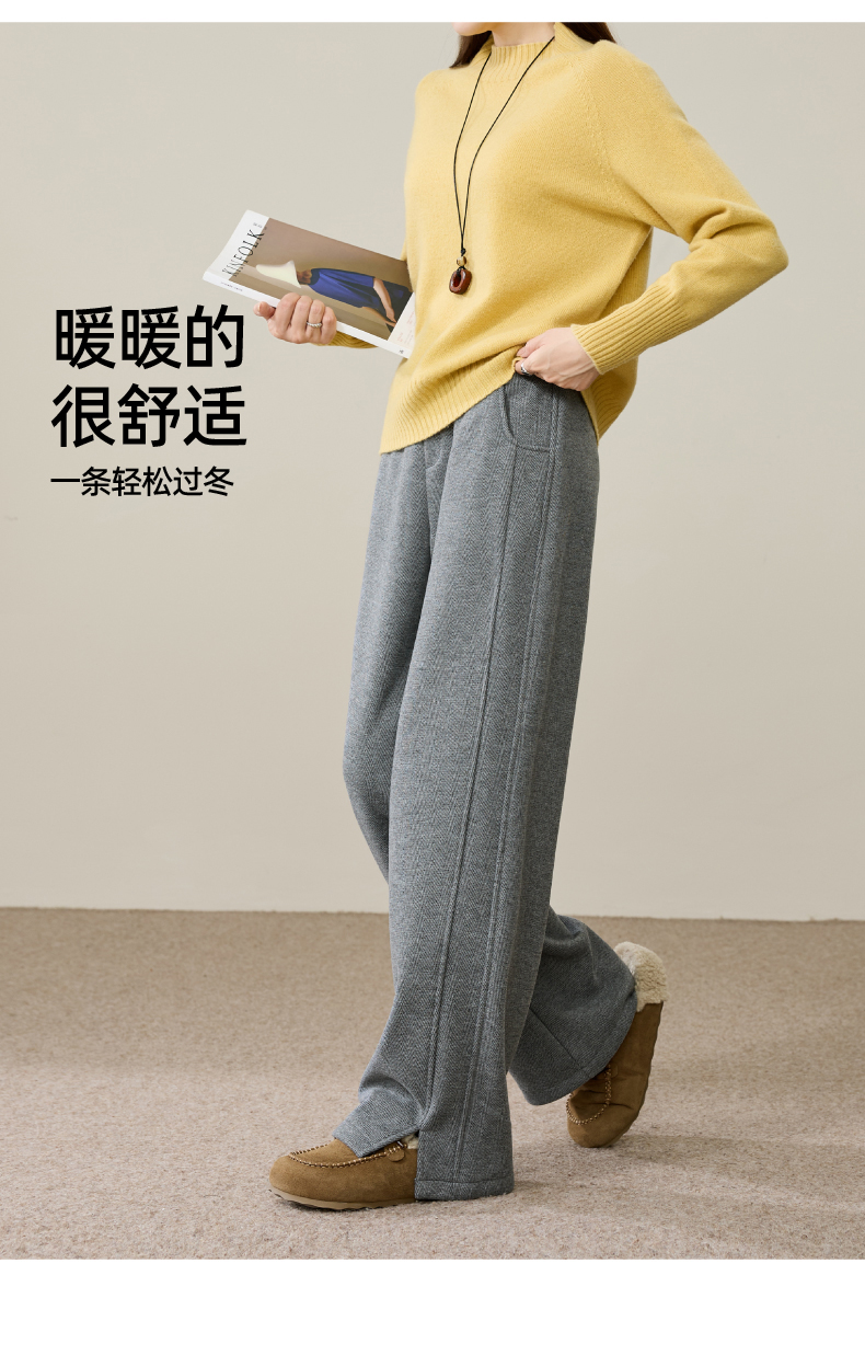 【捡漏亏本售!厚绒直筒裤】逸阳冬加绒加厚人字纹醋酸羊毛毛呢阔腿裤1827