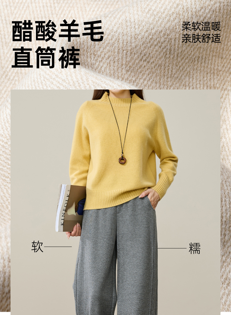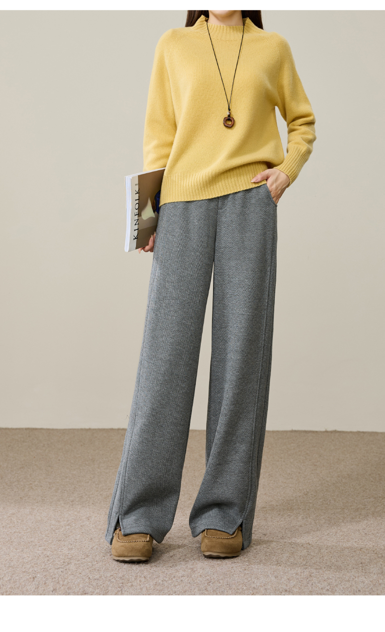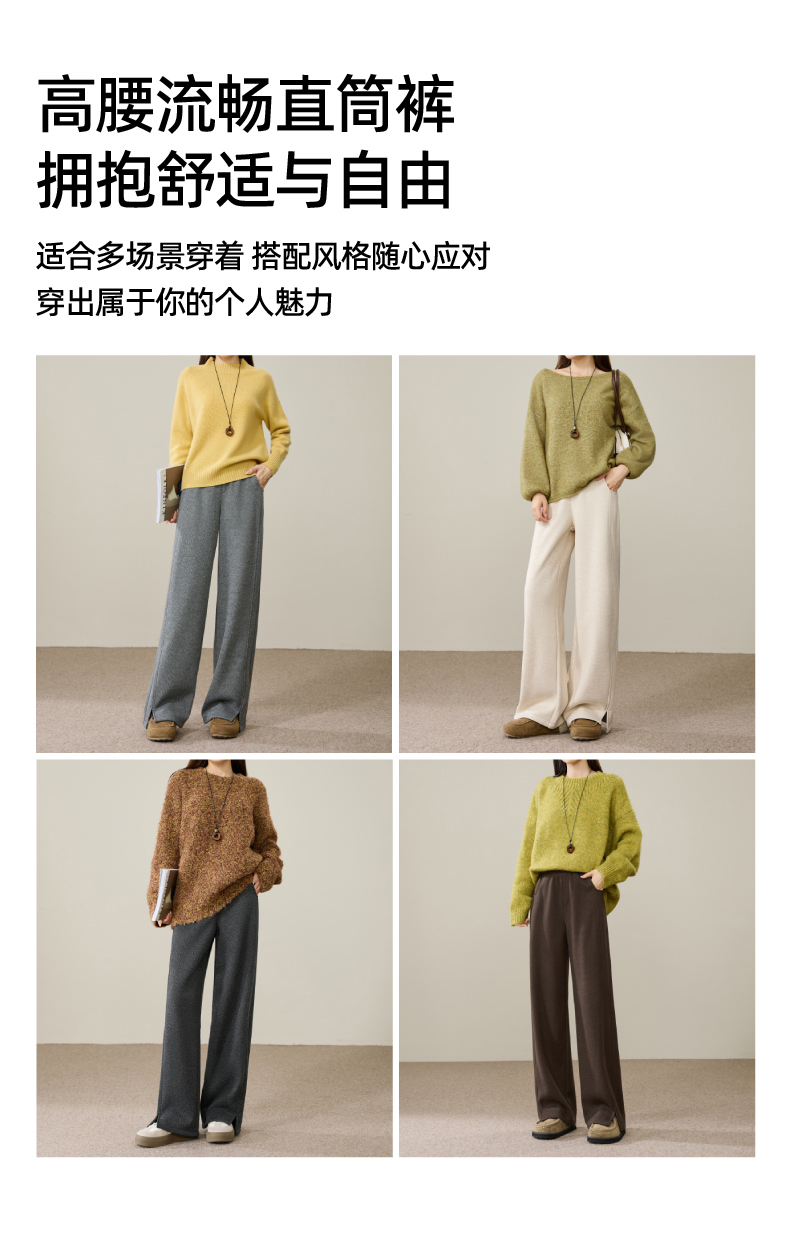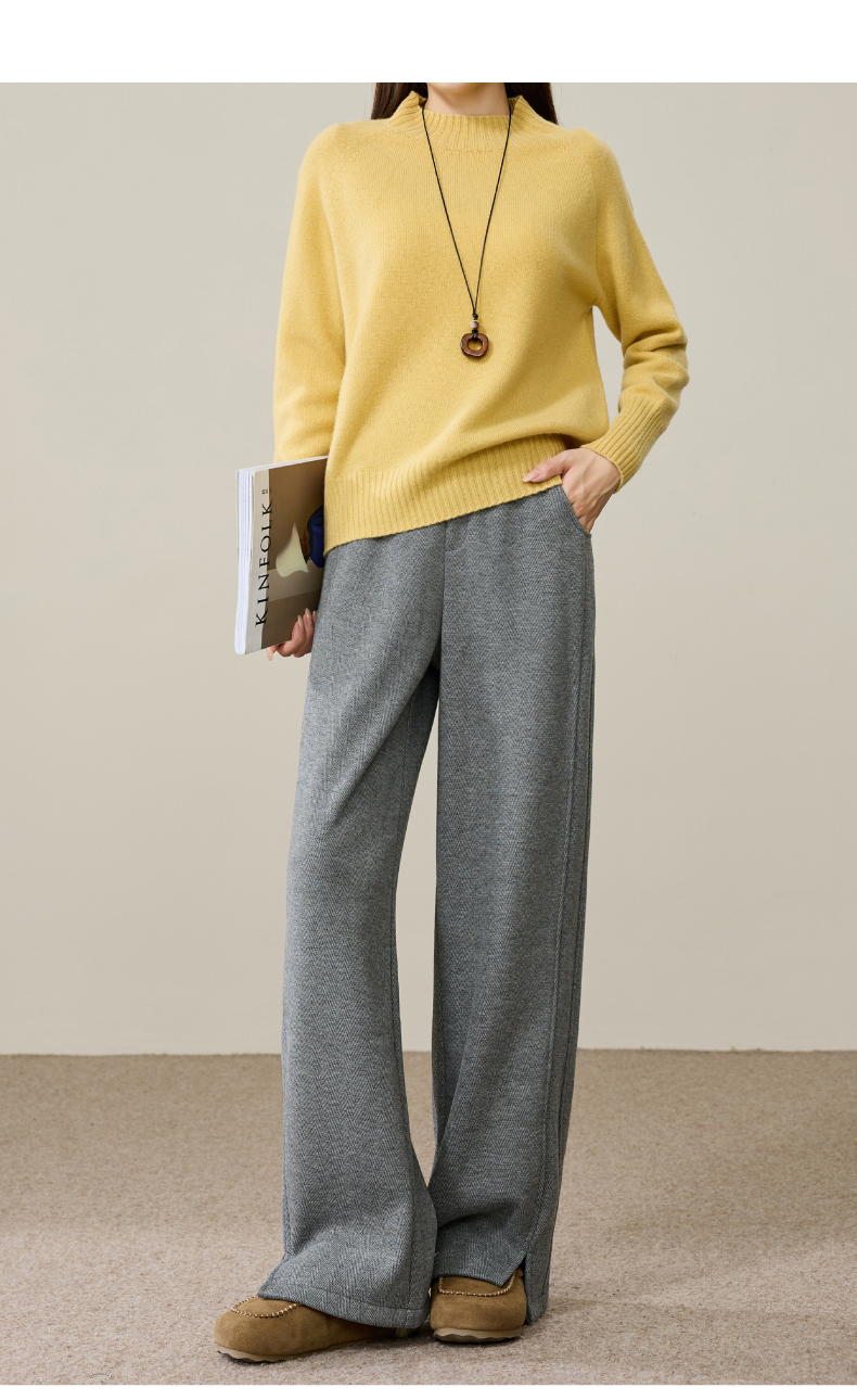 【捡漏亏本售!厚绒直筒裤】逸阳冬加绒加厚人字纹醋酸羊毛毛呢阔腿裤1827