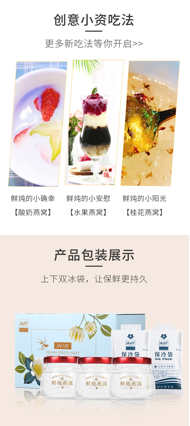 海晏堂 鲜炖燕窝 50g*3瓶 一组装 周套餐 JAO颜鲜炖燕窝 现炖即食燕窝 当日鲜炖 免费配送