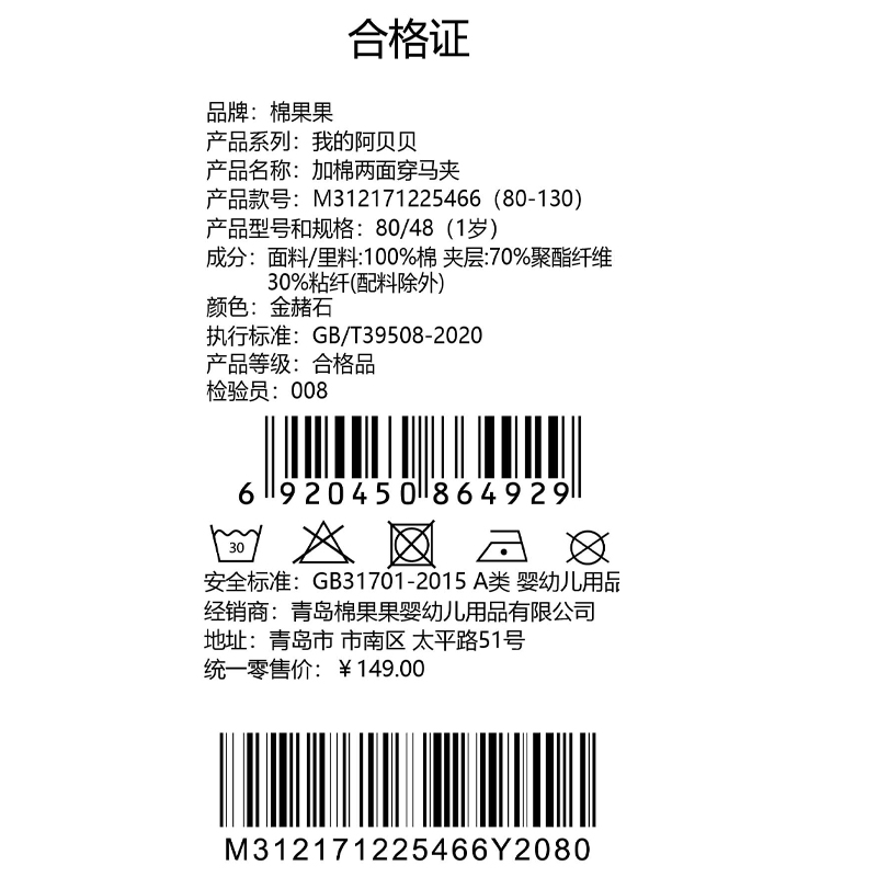 | 衣长 | 34.5 | 37 | 39.5 | 42 | 45 | 48 |