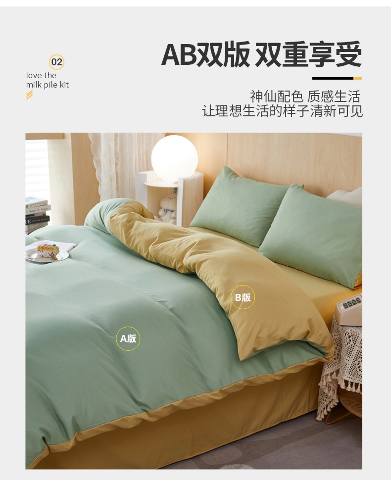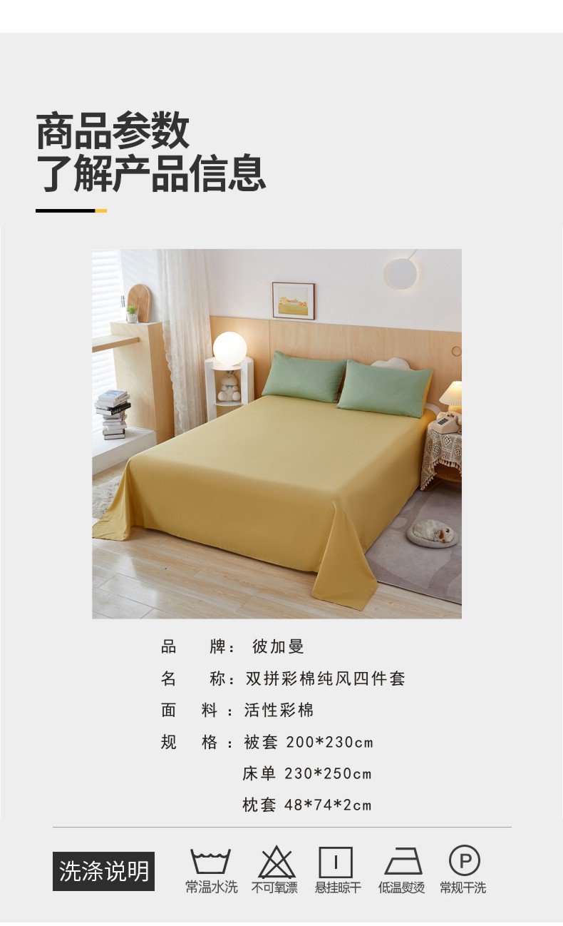 【自营】彼加曼 BGM-T2262 双拼彩棉纯风四件套(抹茶绿/黄卡) 200*230cm