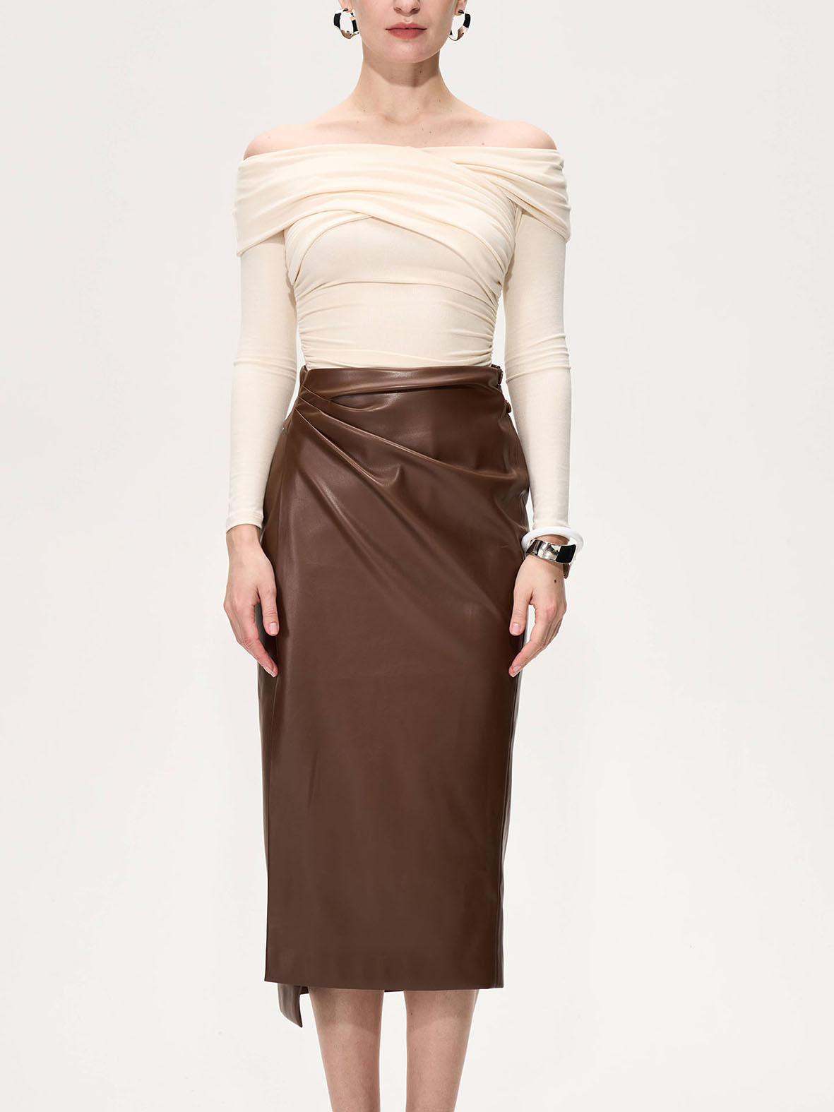 SIJIA | Venus skirt 弹力PU裹身半身裙 [ 酒红AW2478 / 黑AW2348 / 白AW2349 / 棕AW2350 ]