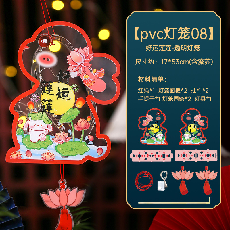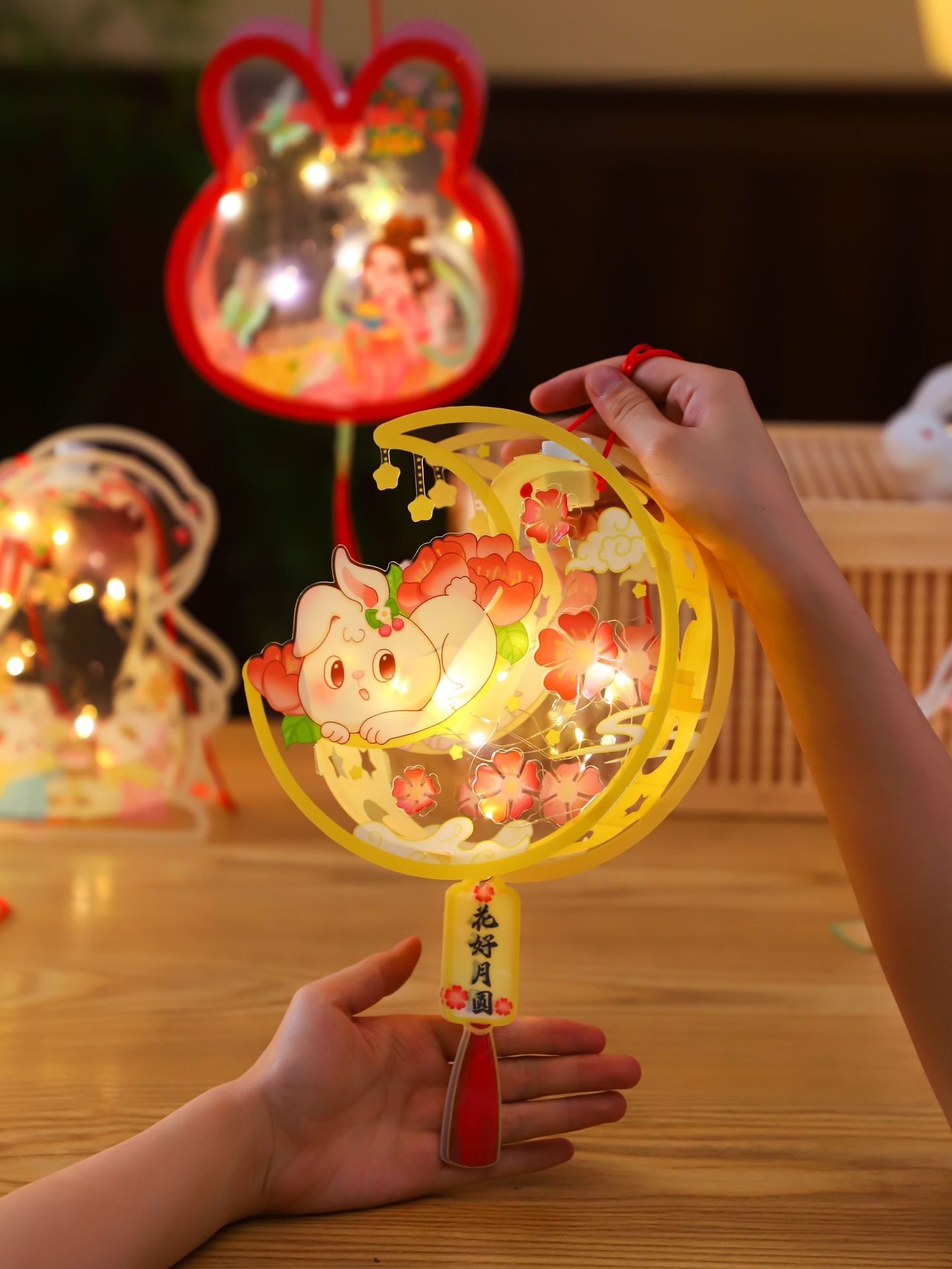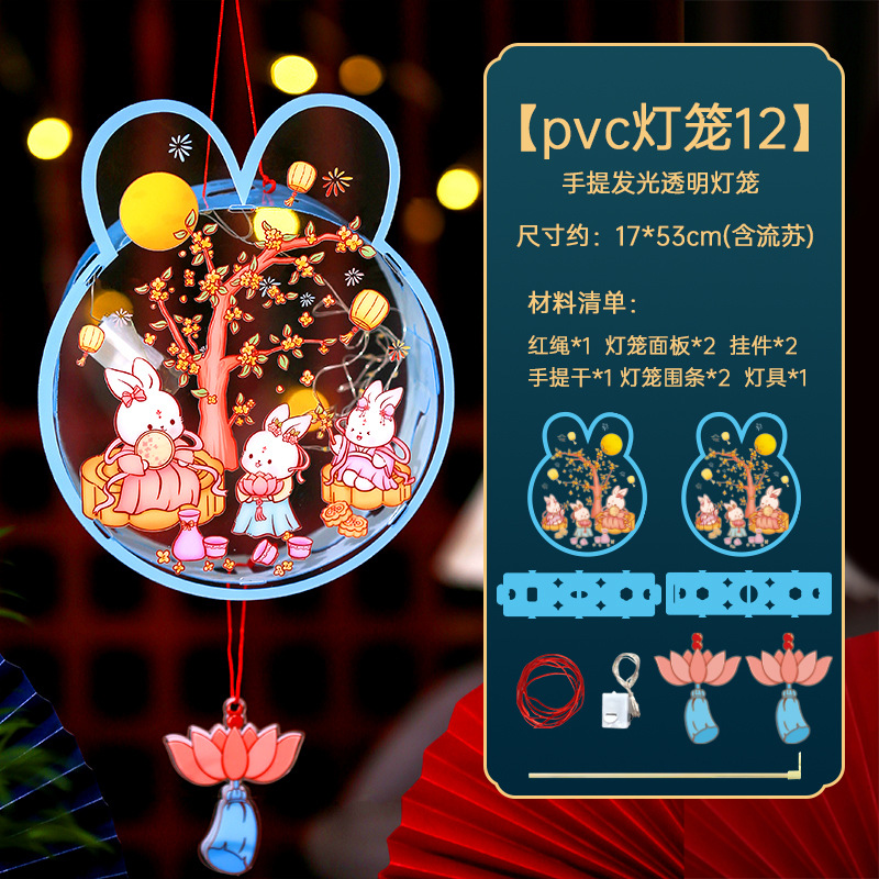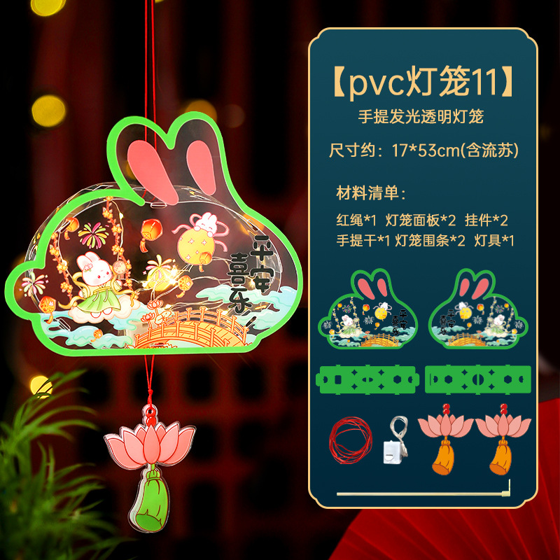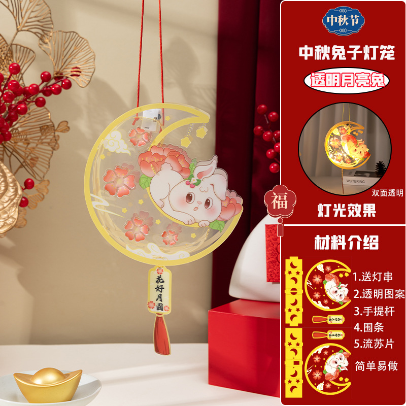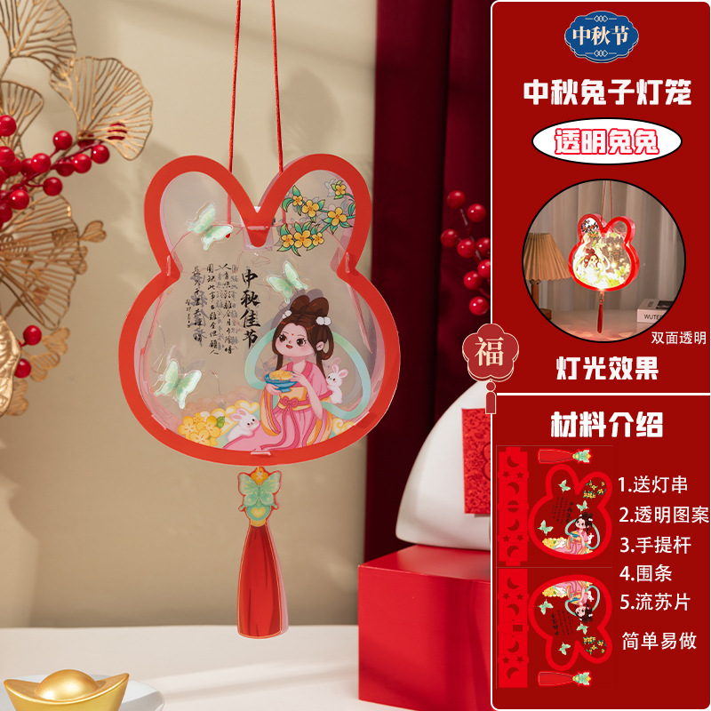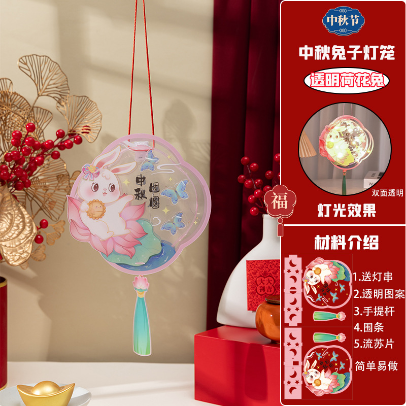 【花好月圆,新款透明灯笼】节新款透明灯笼幼儿园儿童,专用灯笼 LED灯黑暗环境更加分,diy手工制作材料包手提古风兔子花灯QQ