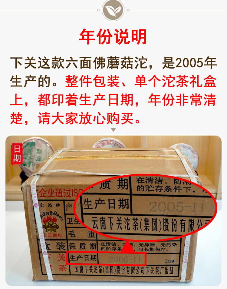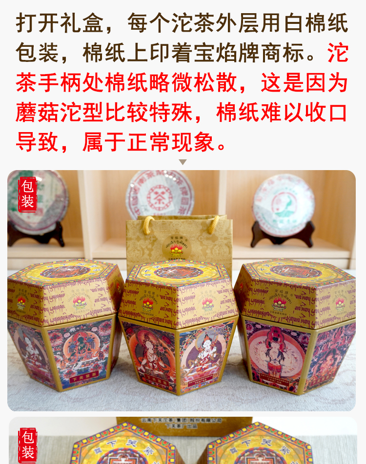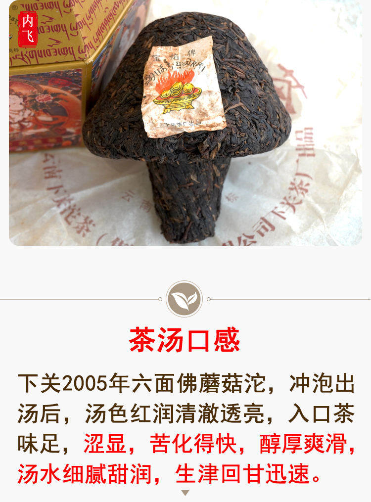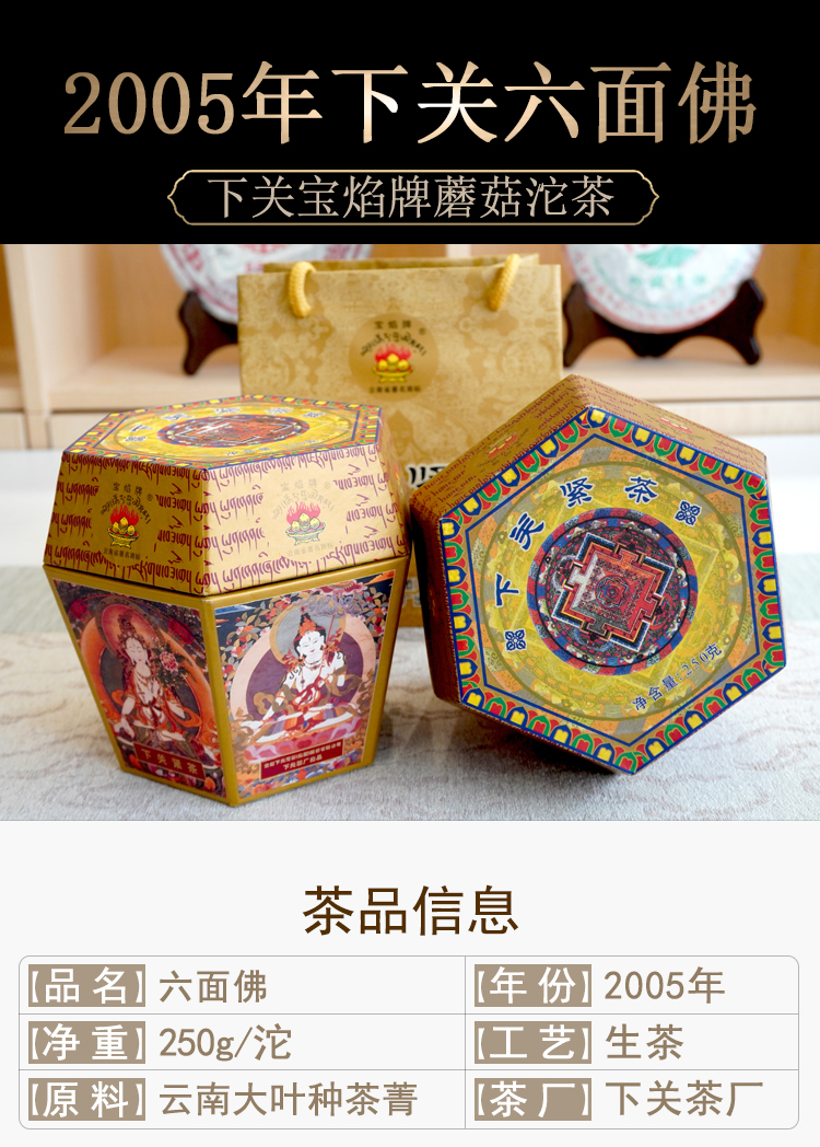 2005年下关六面佛蘑菇沱普洱老生茶 一盒配一个礼品袋 一沱250克大沱 经典老下关 干仓真品高性价比