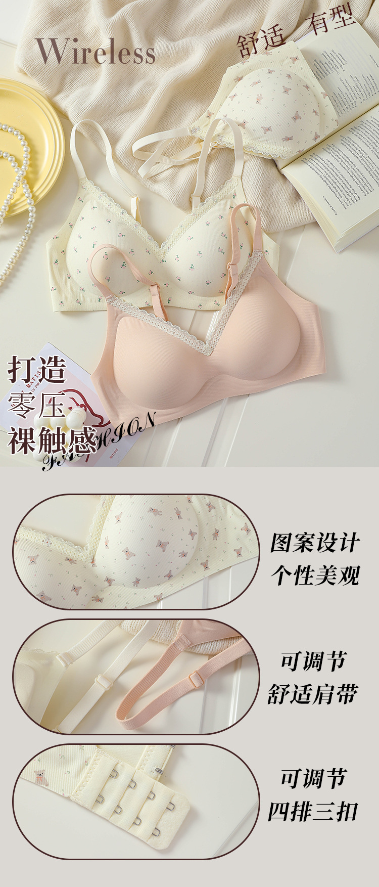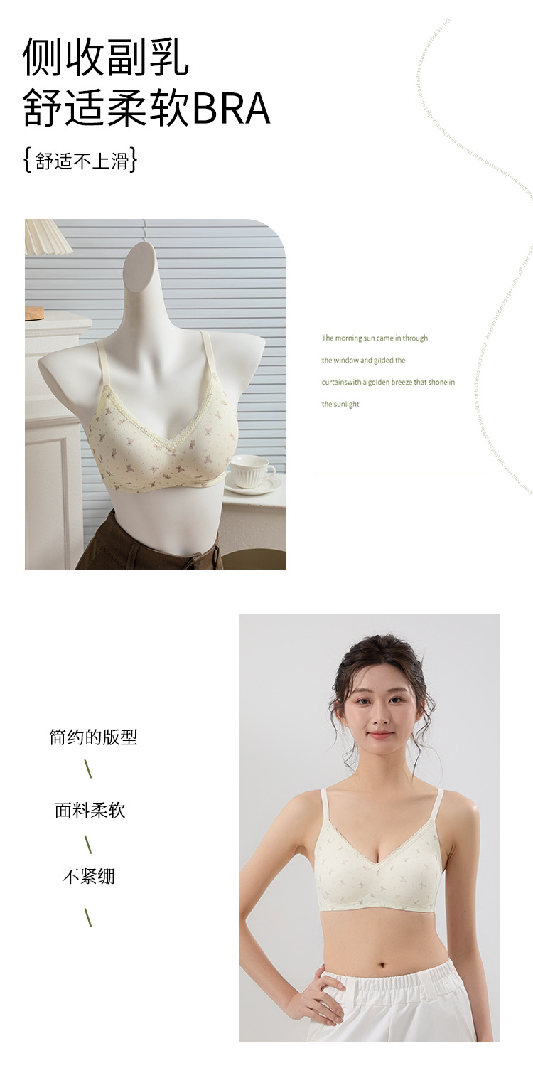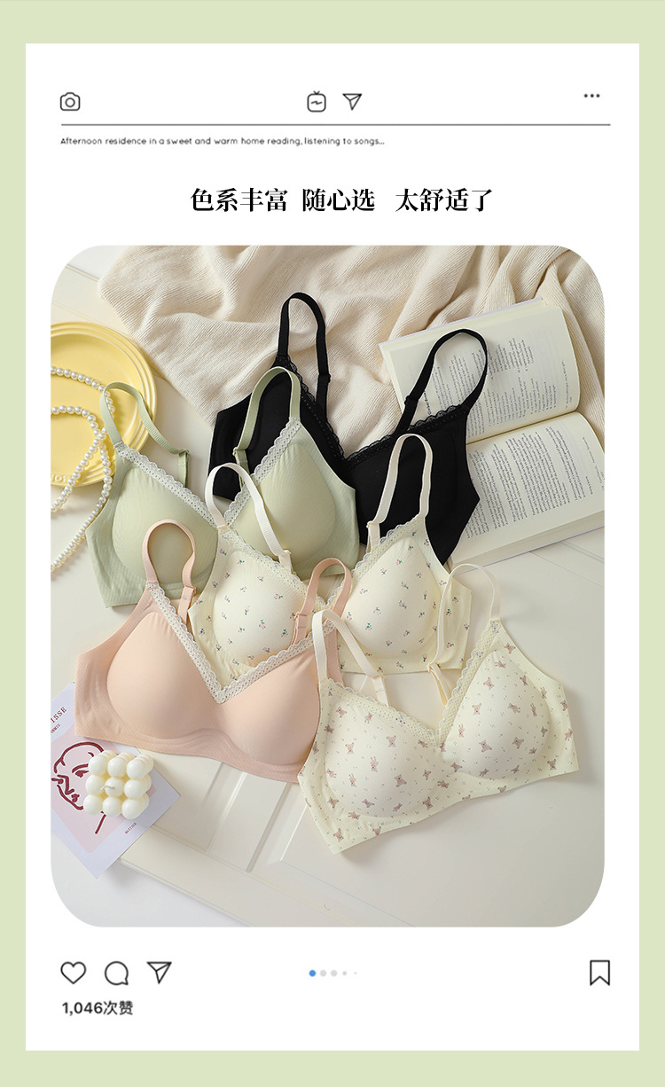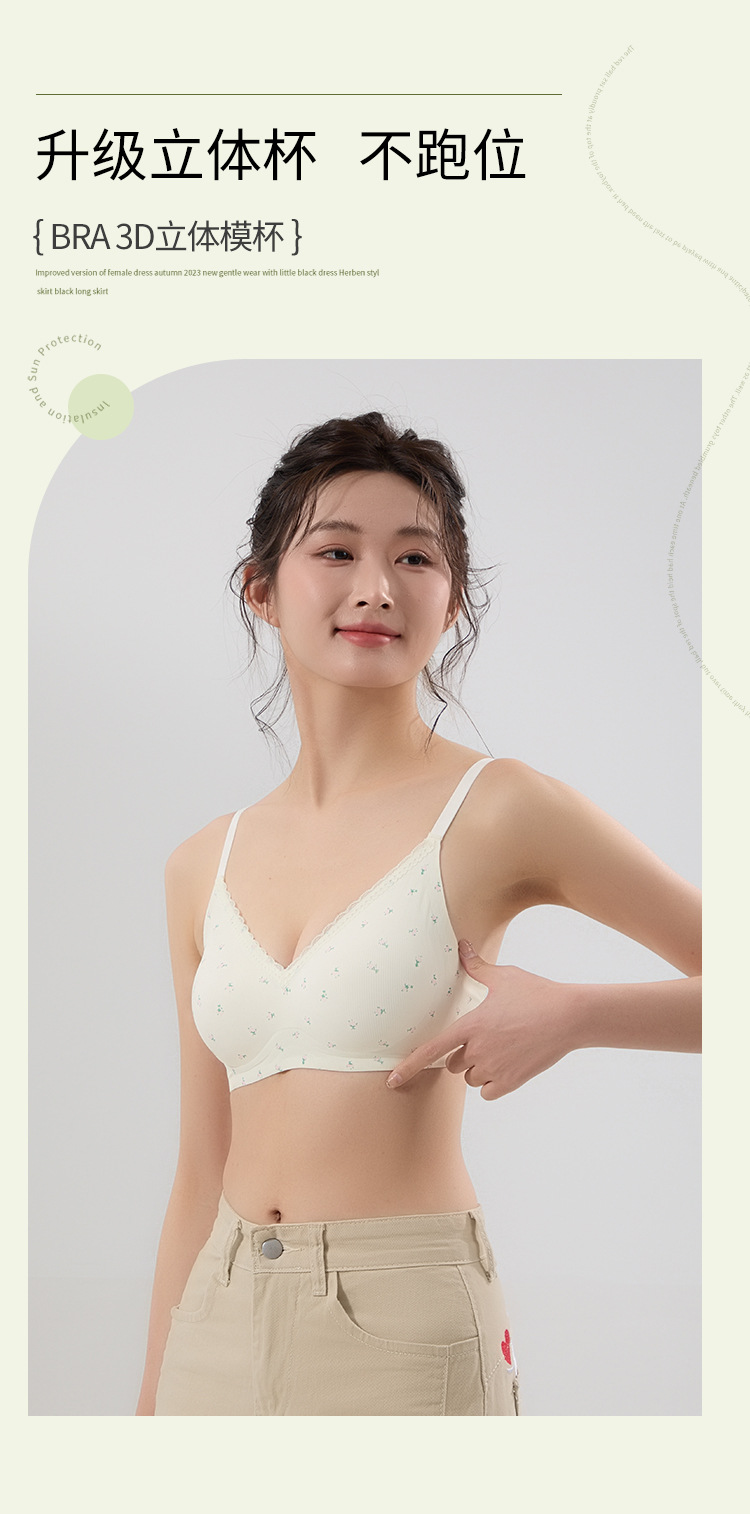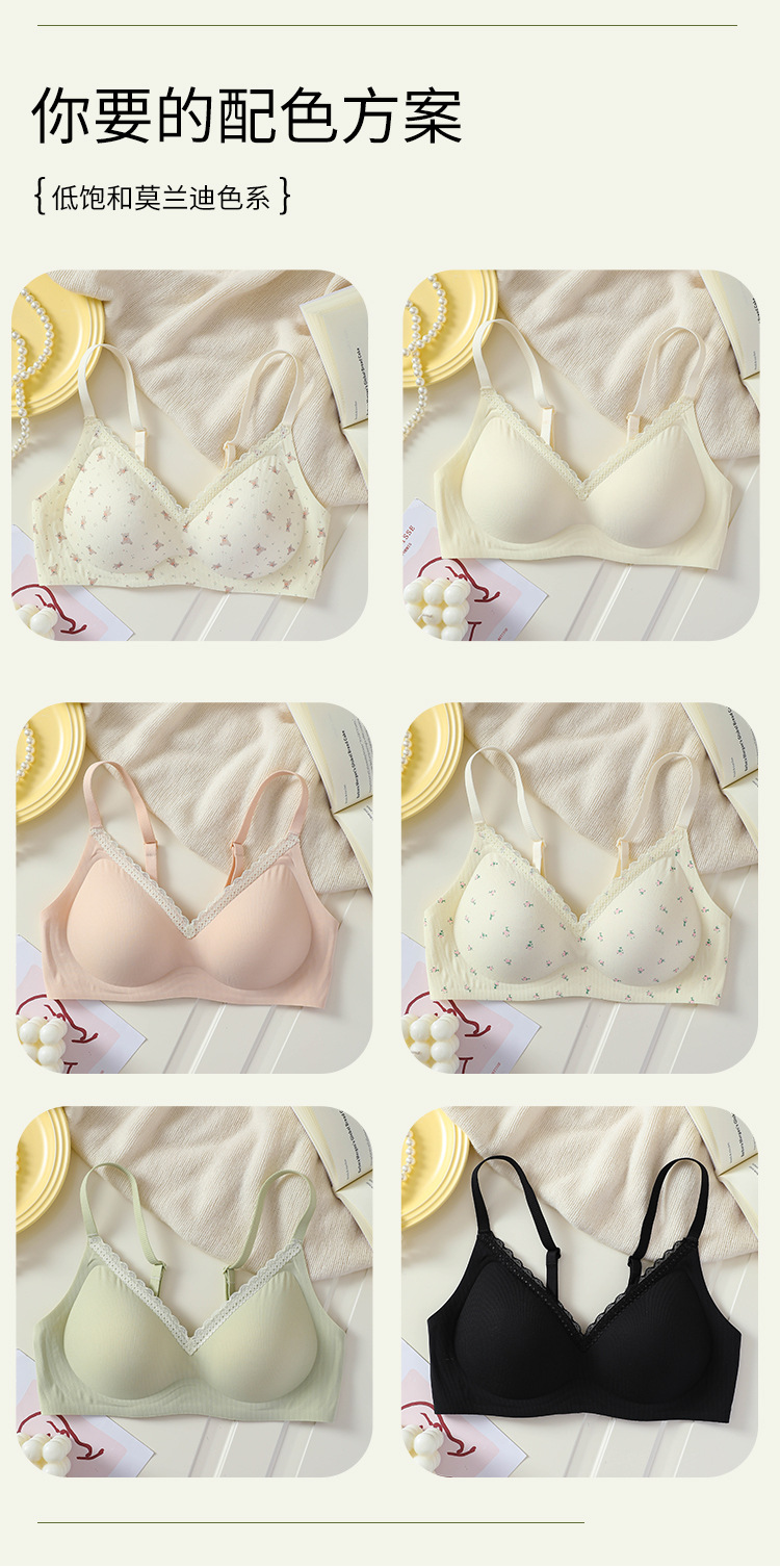 【舒适透气面料❗️聚拢无压力】果冻条印花蕾丝花边性感美背文胸无钢圈软支撑收副乳可爱少女内衣。jc