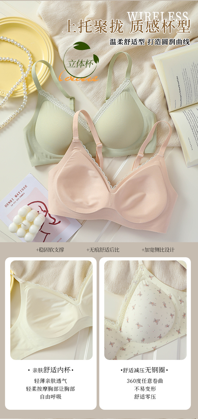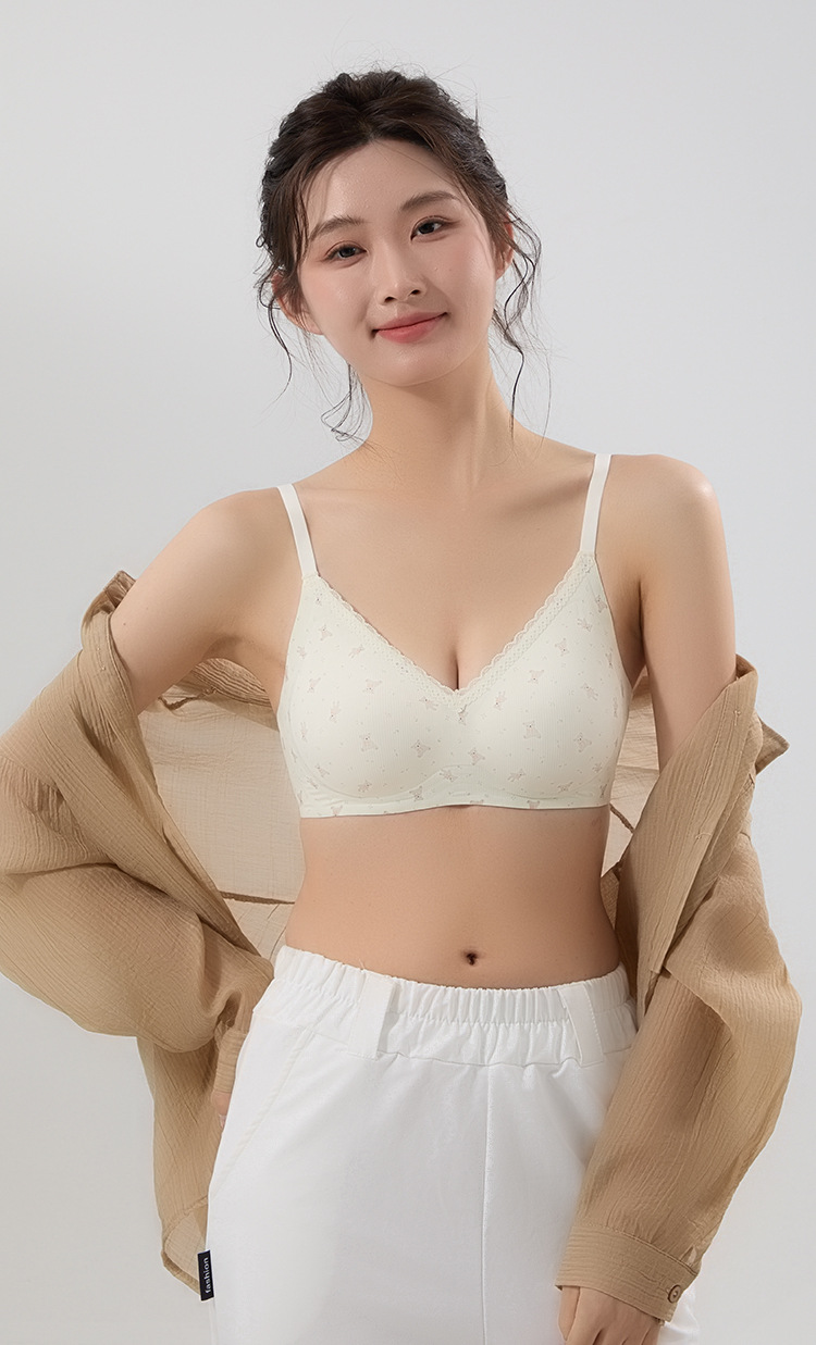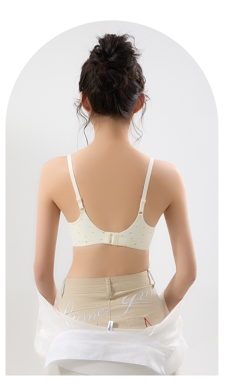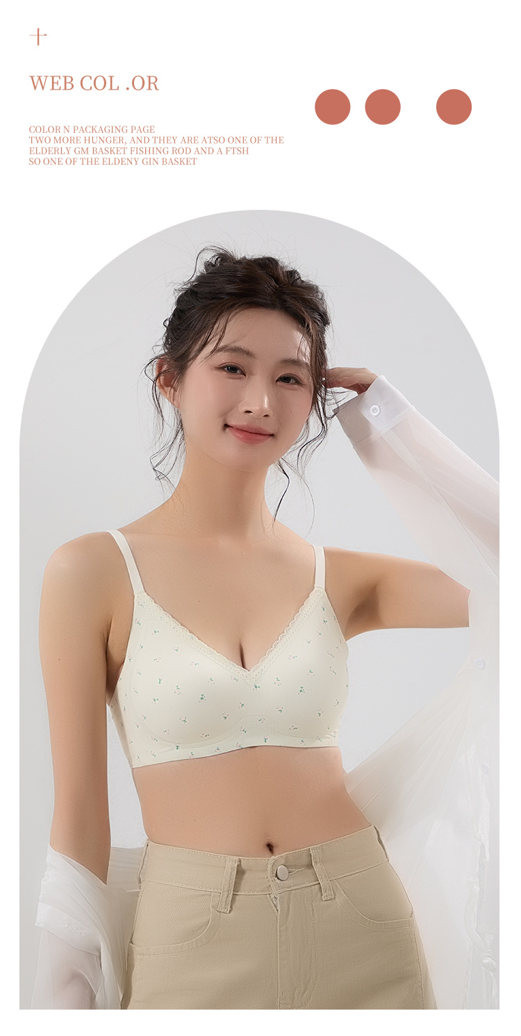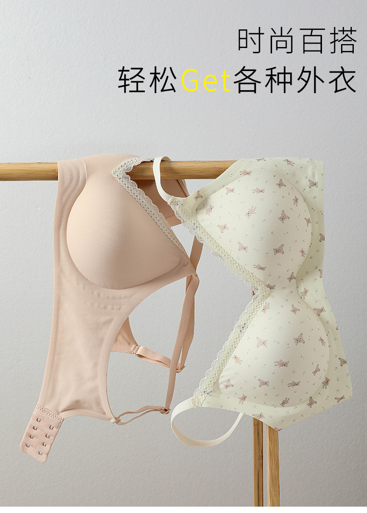 【舒适透气面料❗️聚拢无压力】果冻条印花蕾丝花边性感美背文胸无钢圈软支撑收副乳可爱少女内衣。jc