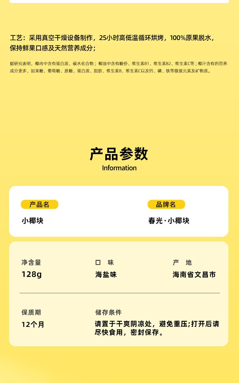 椰肉脆块128g(瓶装 海盐味) 新鲜椰子烤干 小椰块【129元任选8件】