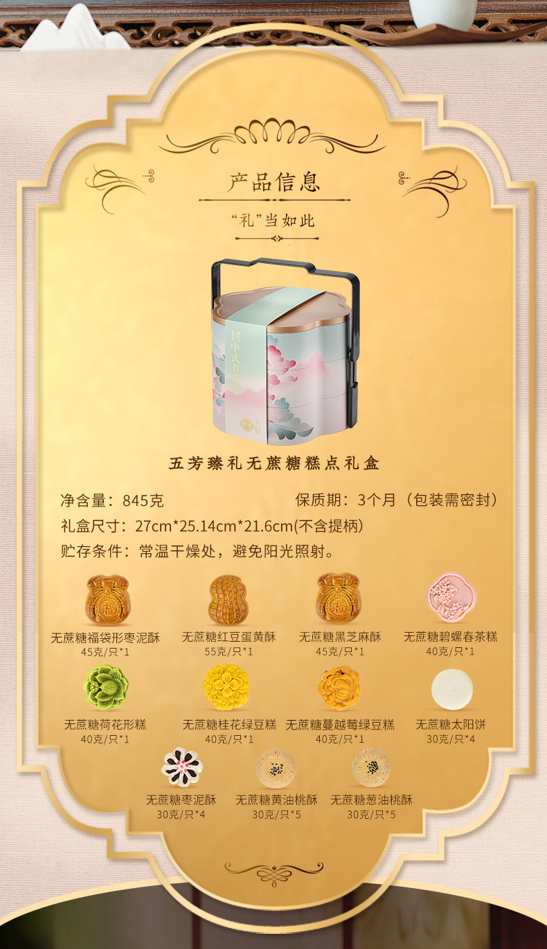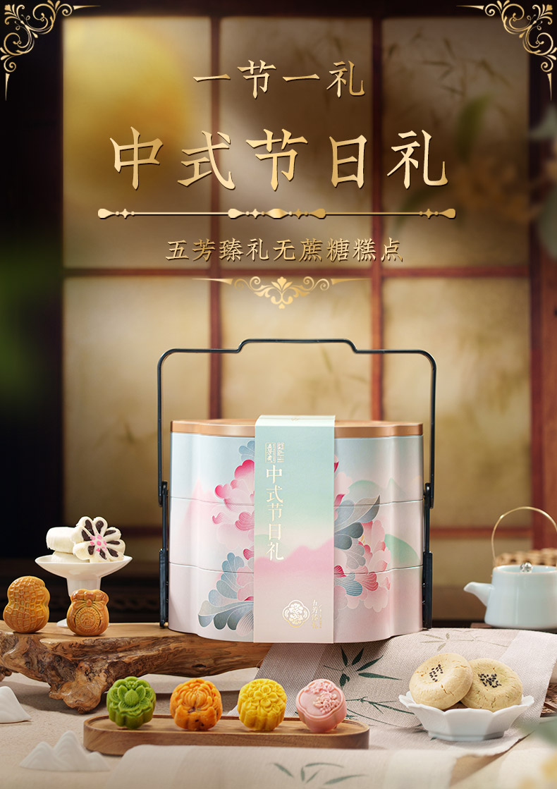 【礼盒团购】五芳斋 五芳臻礼无蔗糖糕点礼盒 中式糕点新年送礼送长辈老年人 过春节年货礼盒礼品 480克