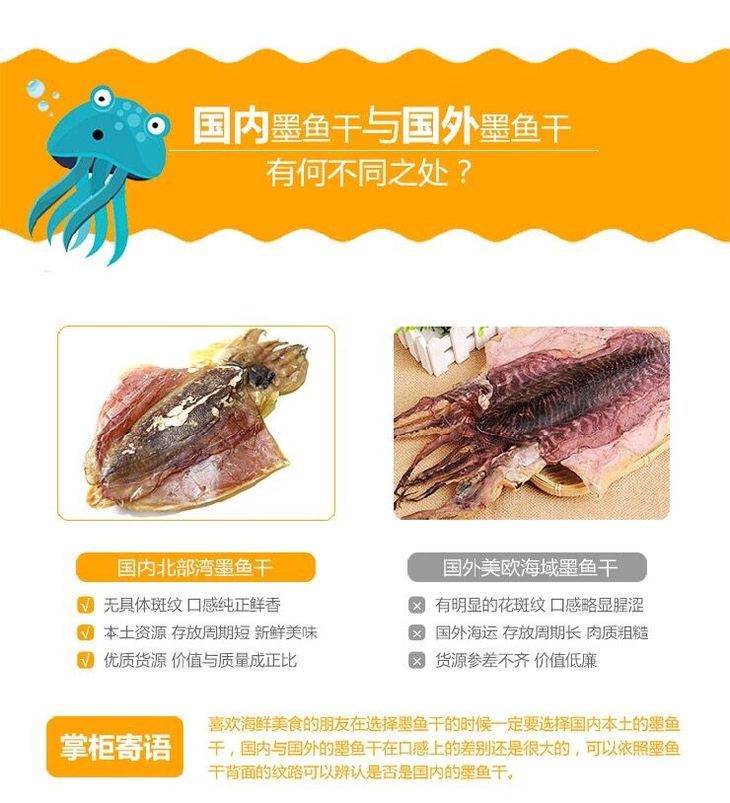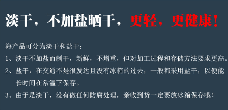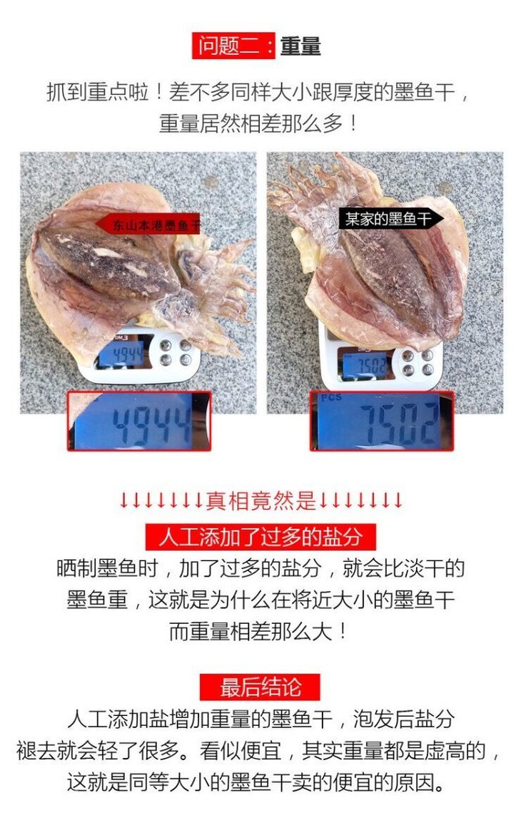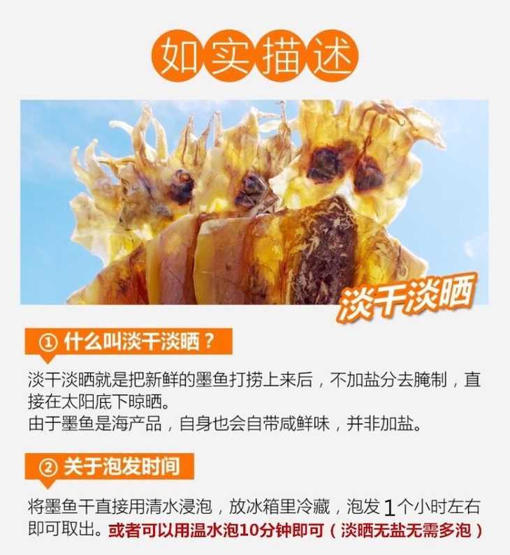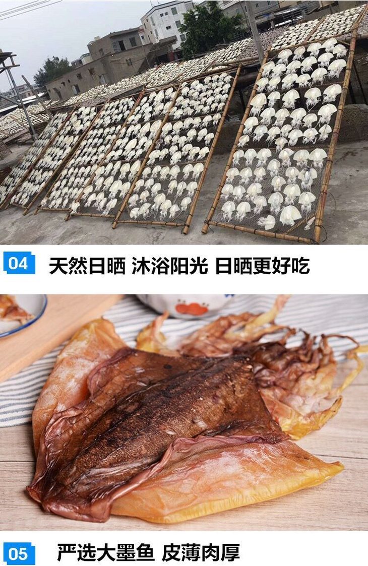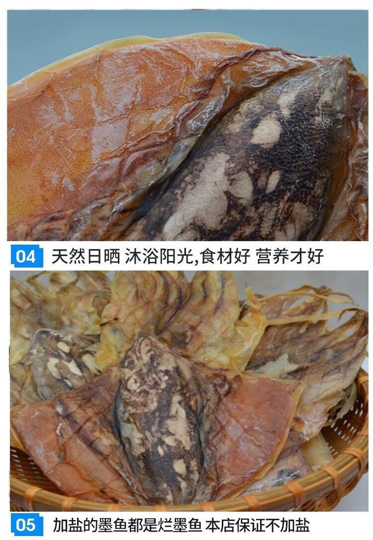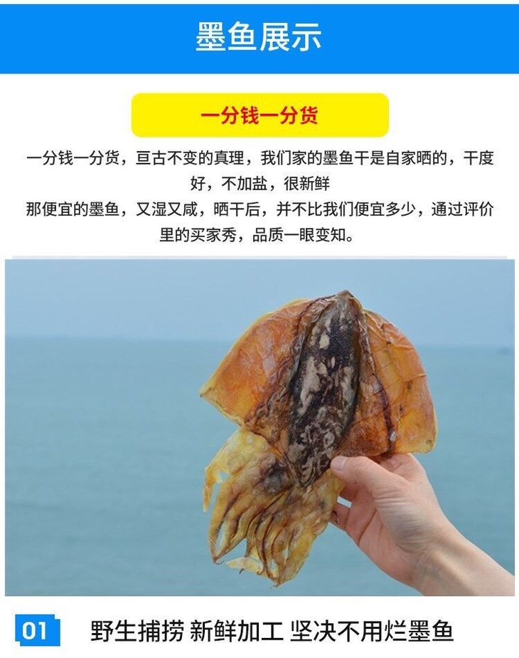 品名:东海野生日晒墨鱼干 规格1:500g/1袋装(小墨鱼)178元 已售罄 规格2:500g/1袋装(约6至8条大墨鱼)198元 预售中 数量仅供参考,以实际重量为准;拍几份发几个包裹,不一定能同时到达,请耐心等待 发货地/产地:东海 储存方式:冷冻储存更佳 保质期:360天 包装方式:食品袋+纸箱 物流信息:默认顺丰冷链快递,不支持指定快递 发货区域:新疆、内蒙、青海、宁夏、甘肃、西藏+18元;黑龙江、吉林、辽宁+12元,其它区域包邮; 物流详情:周六、周日及节假日除外,正常48小时内发货,到货时间约为2~5天,请耐心等待 售后说明:收到货后有质量问题,在24小时内都可以拍照(坏果+快递单面箱子一起拍)上传,申请按坏果比例理赔或联系客服,生鲜性质特殊,因地址错误,手机号联系不上,拒收等造成的损失无法售后,请理解;海鲜类都是渔家晒干后发货,可能会造成推迟发货或断货,介意者慎拍; |
