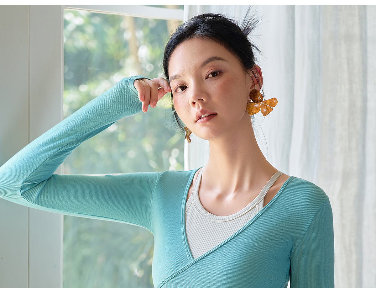 2024爱睱步秋冬新品瑜伽运动时尚V领普拉提上衣A24340MALK