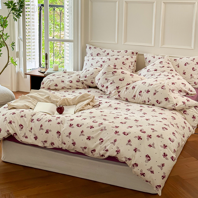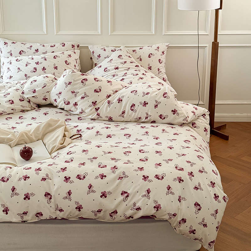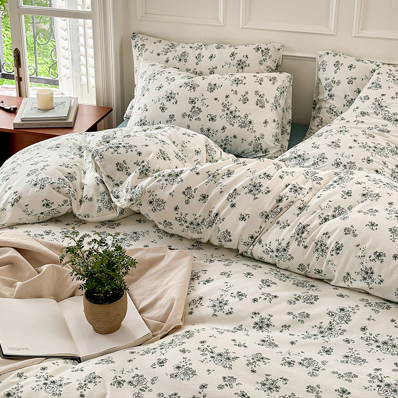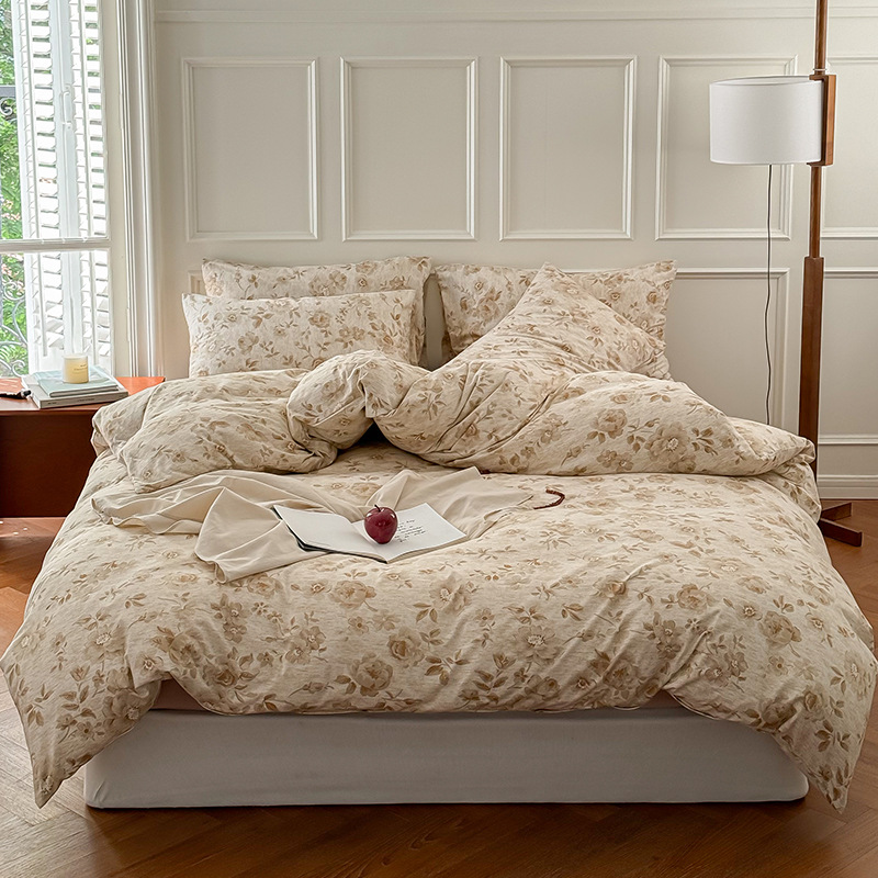 【天竺棉田园碎花四件套】印花针织四件套天竺棉四件套田园碎花卡通床品套件