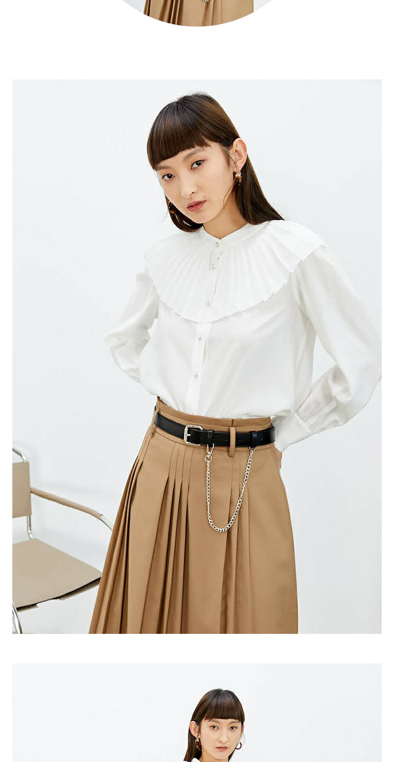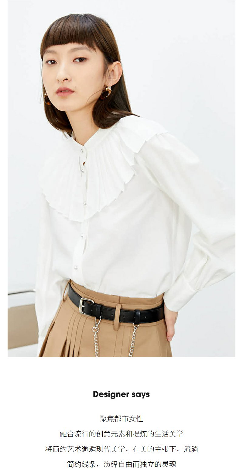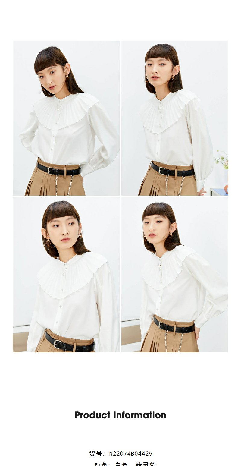 NEELLY纳俪商场同款立领衬衫女单排扣气质简约娃娃翻领白色上衣N22074B04425