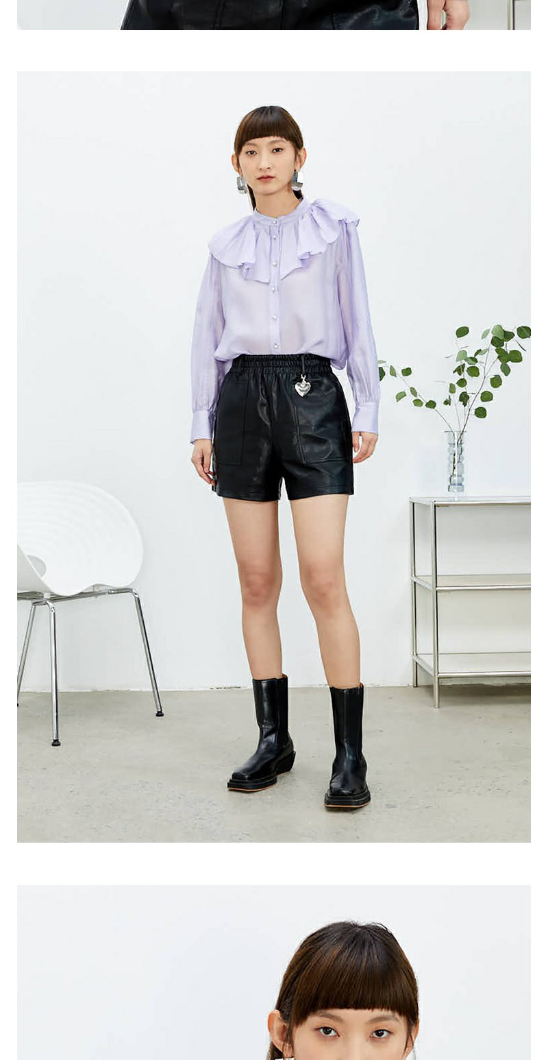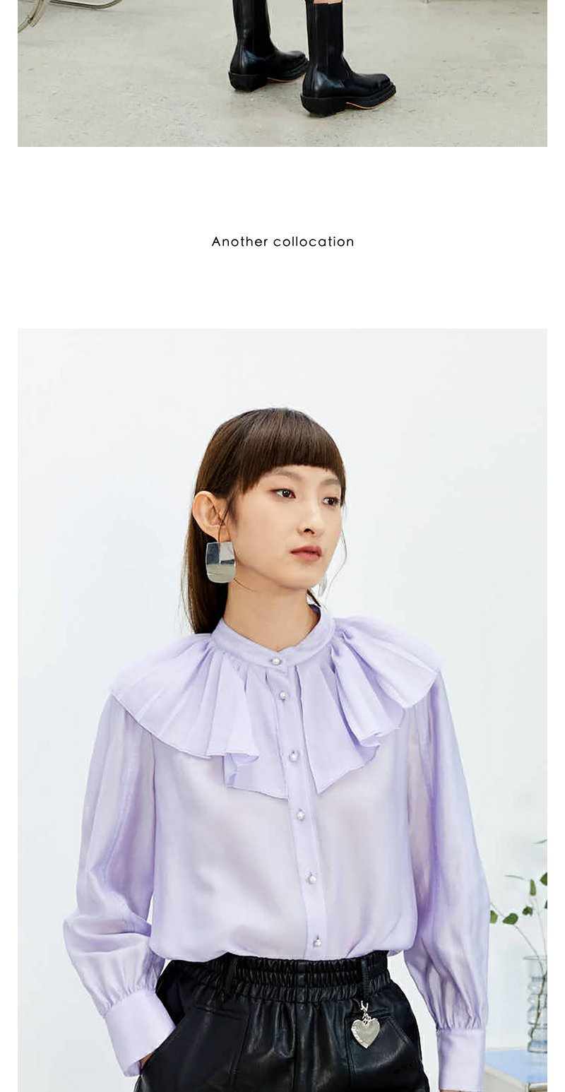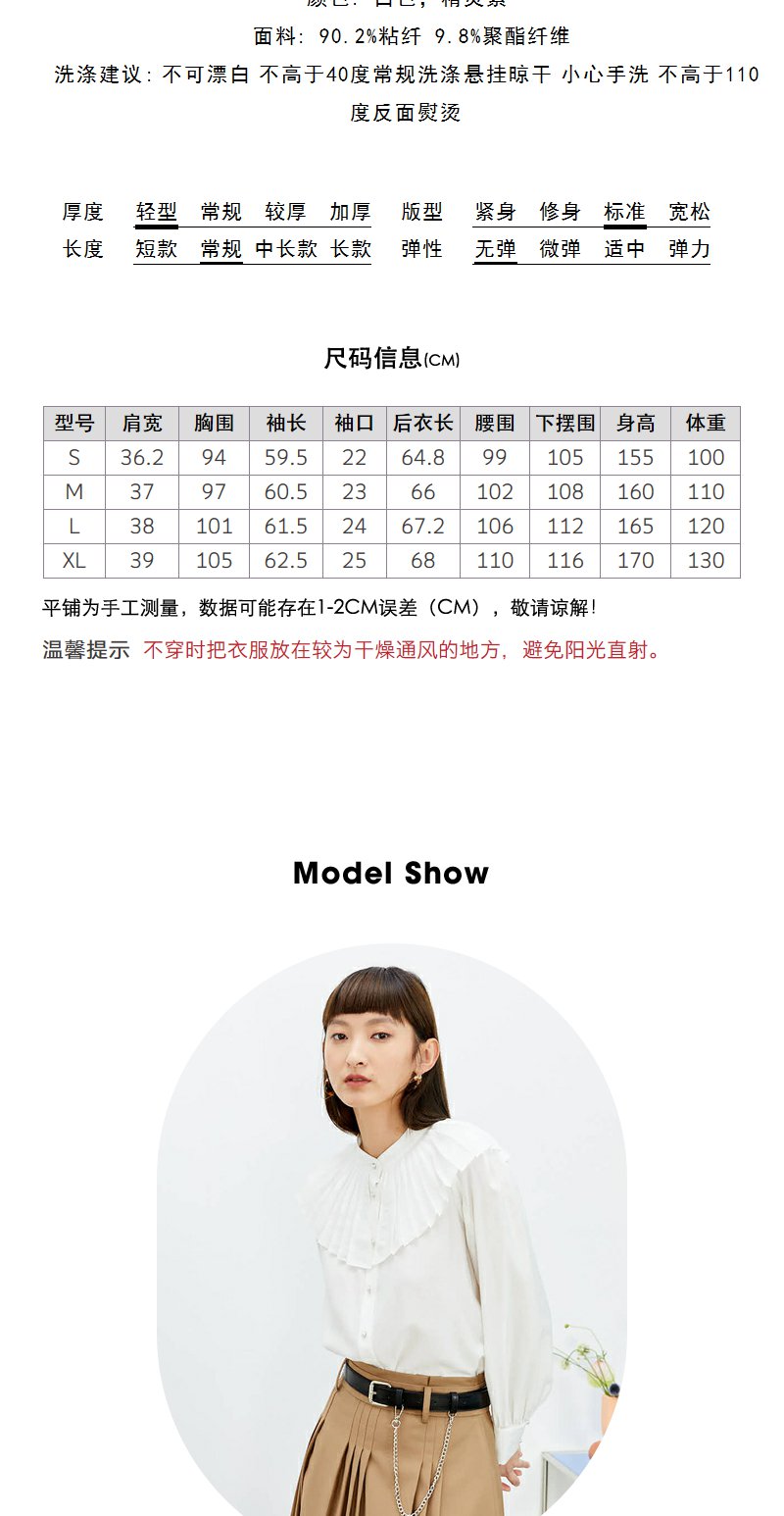 NEELLY纳俪商场同款立领衬衫女单排扣气质简约娃娃翻领白色上衣N22074B04425