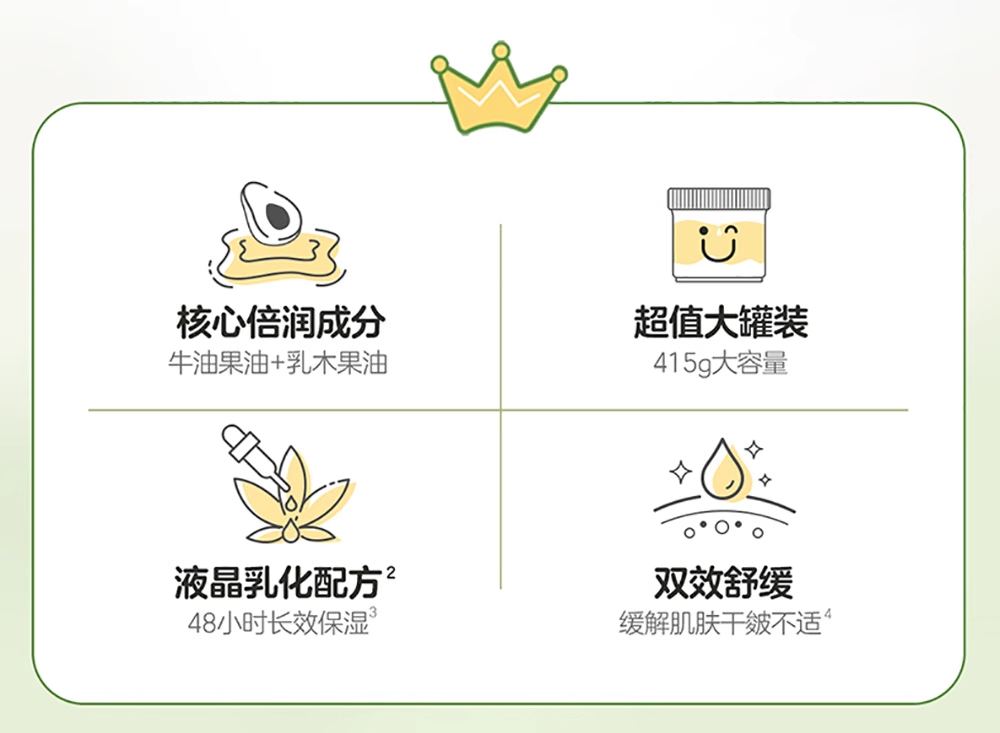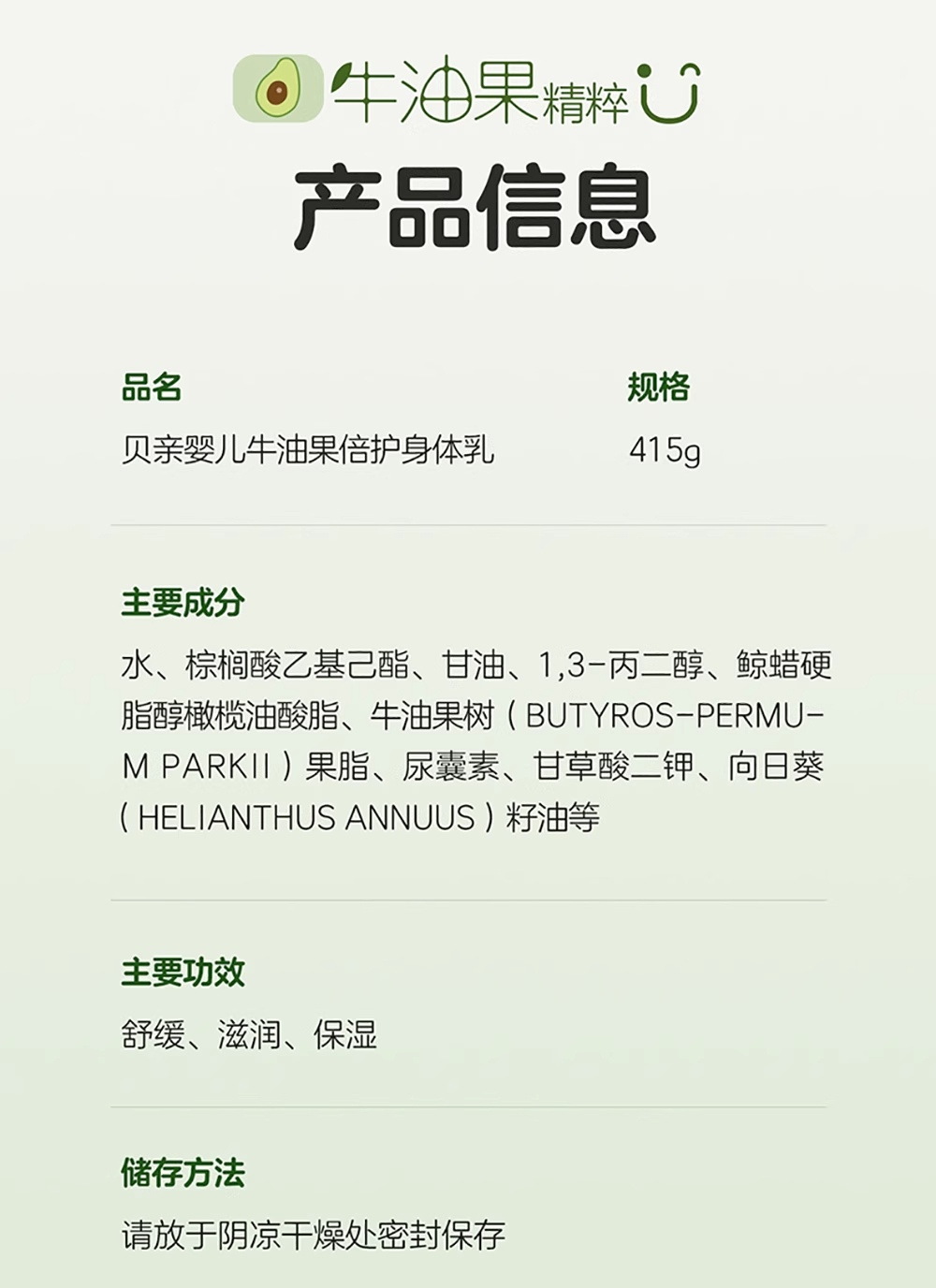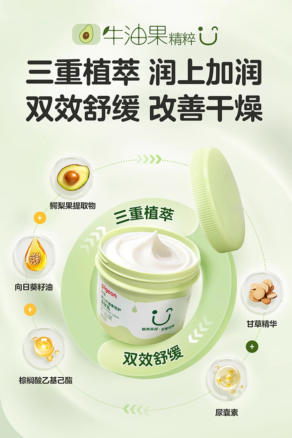贝亲牛油果大绿罐儿童润肤霜补水保湿霜宝宝面霜儿童身体乳415gPIG-IA328