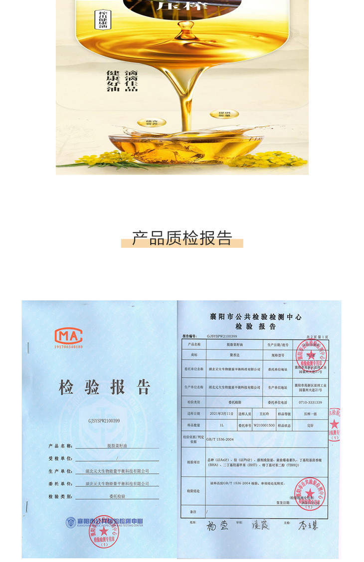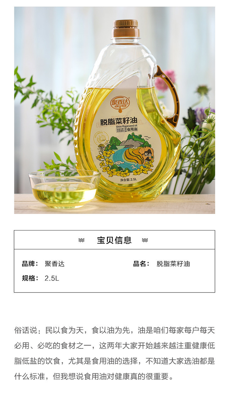 脱脂菜籽油2.5L✔拥有 脱脂专利▏低温压榨滴滴香浓 ▏只保留不饱和脂肪酸 减少身体对脂肪的吸收 更健康的好油
