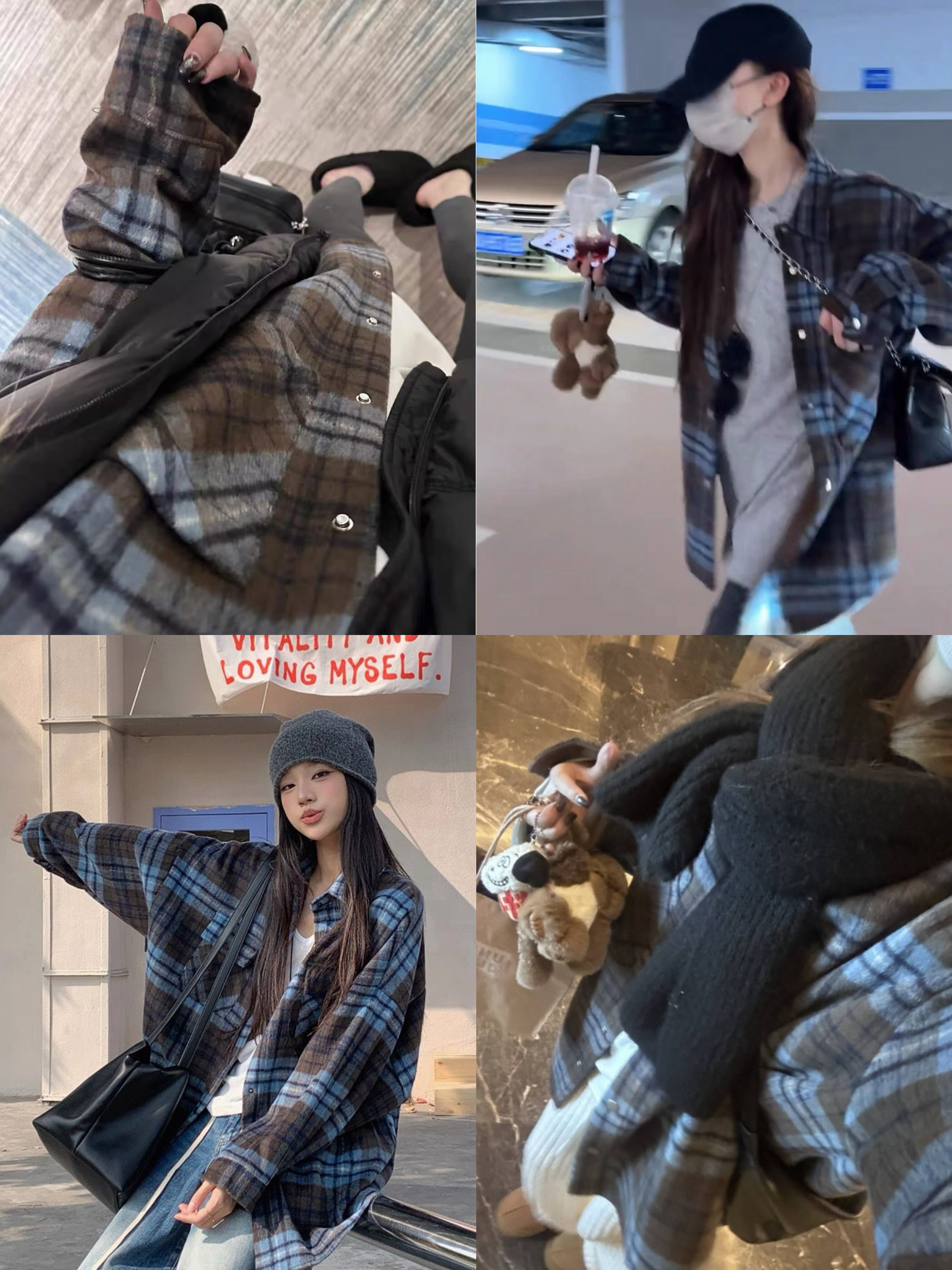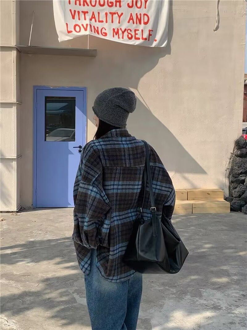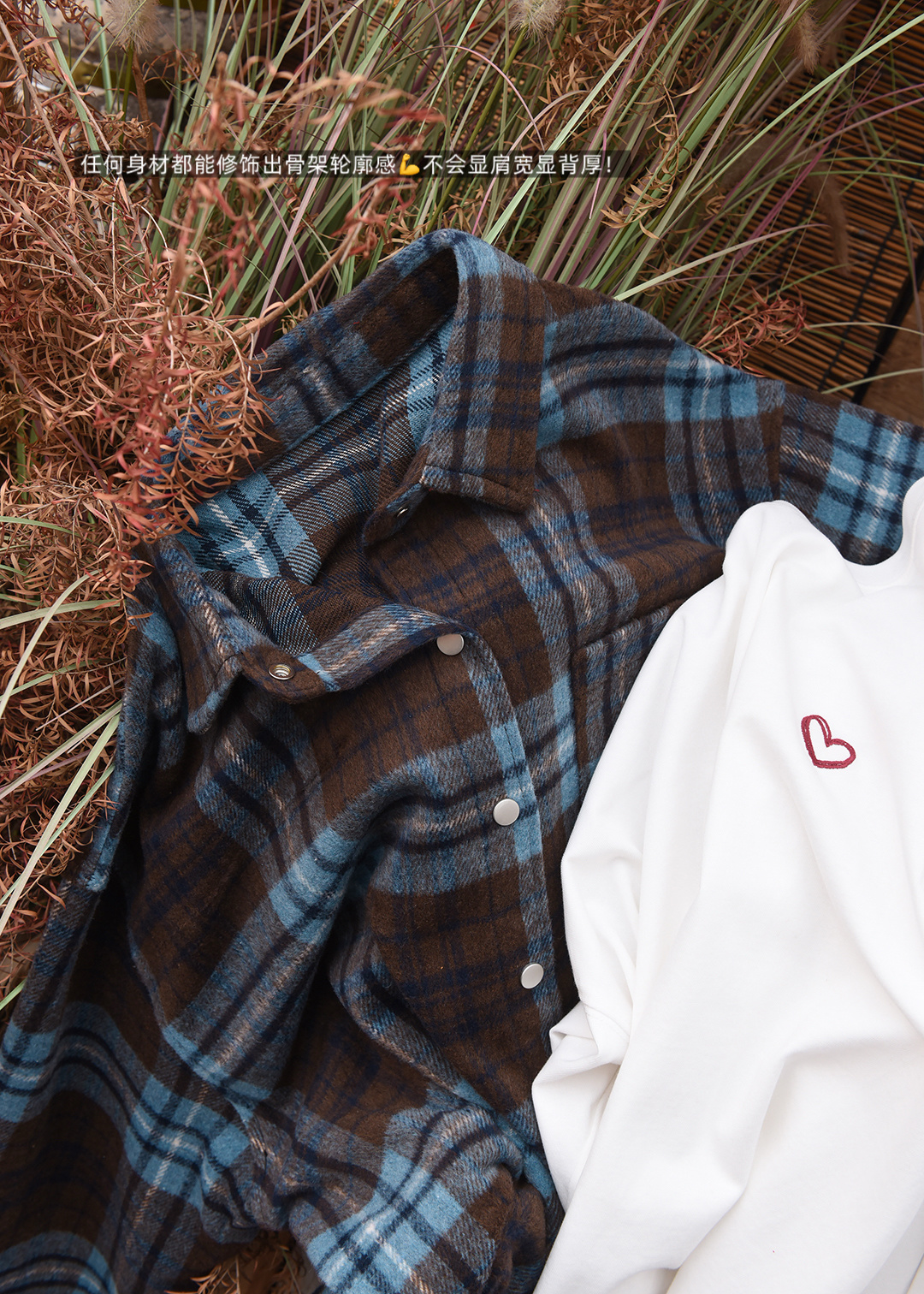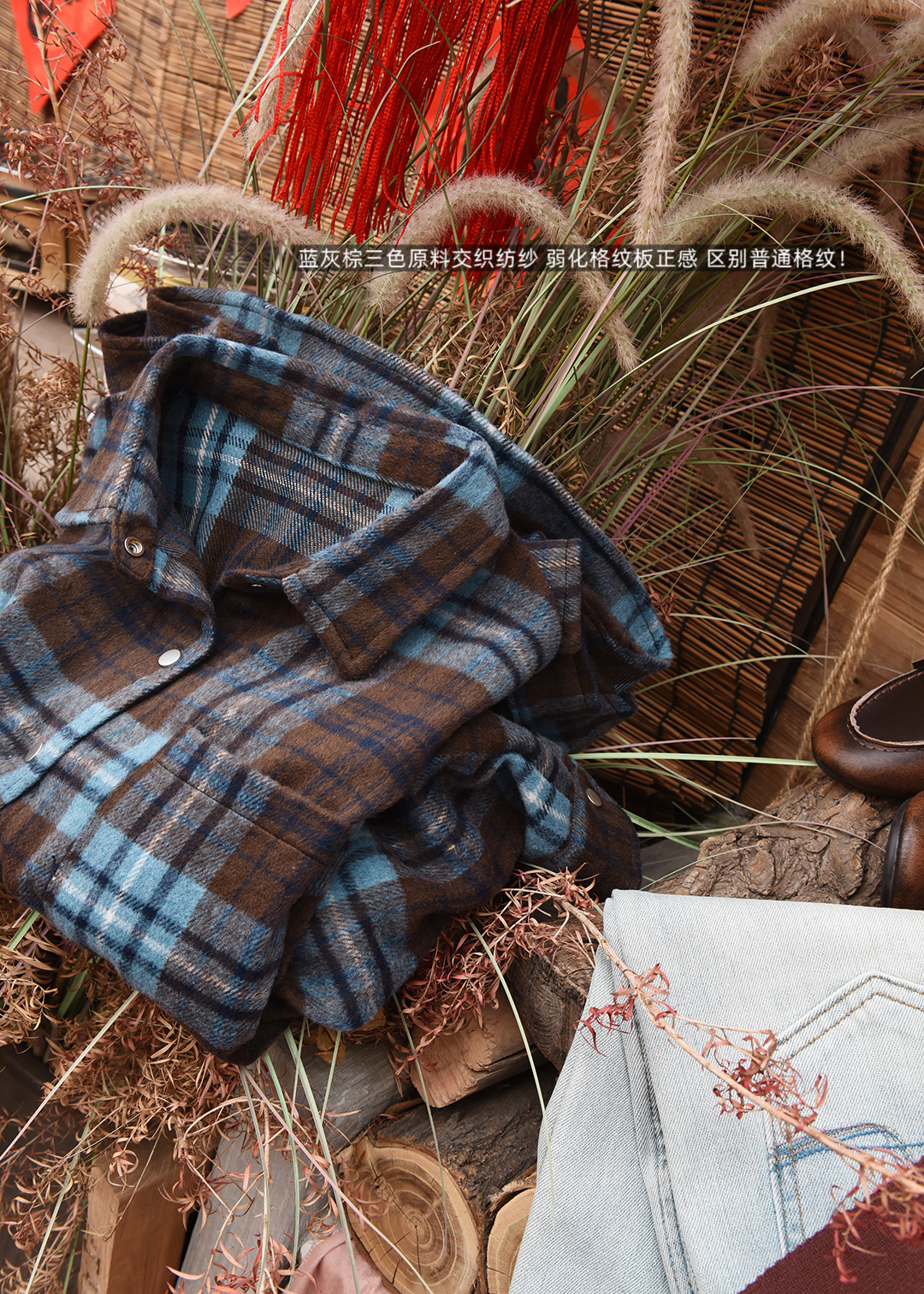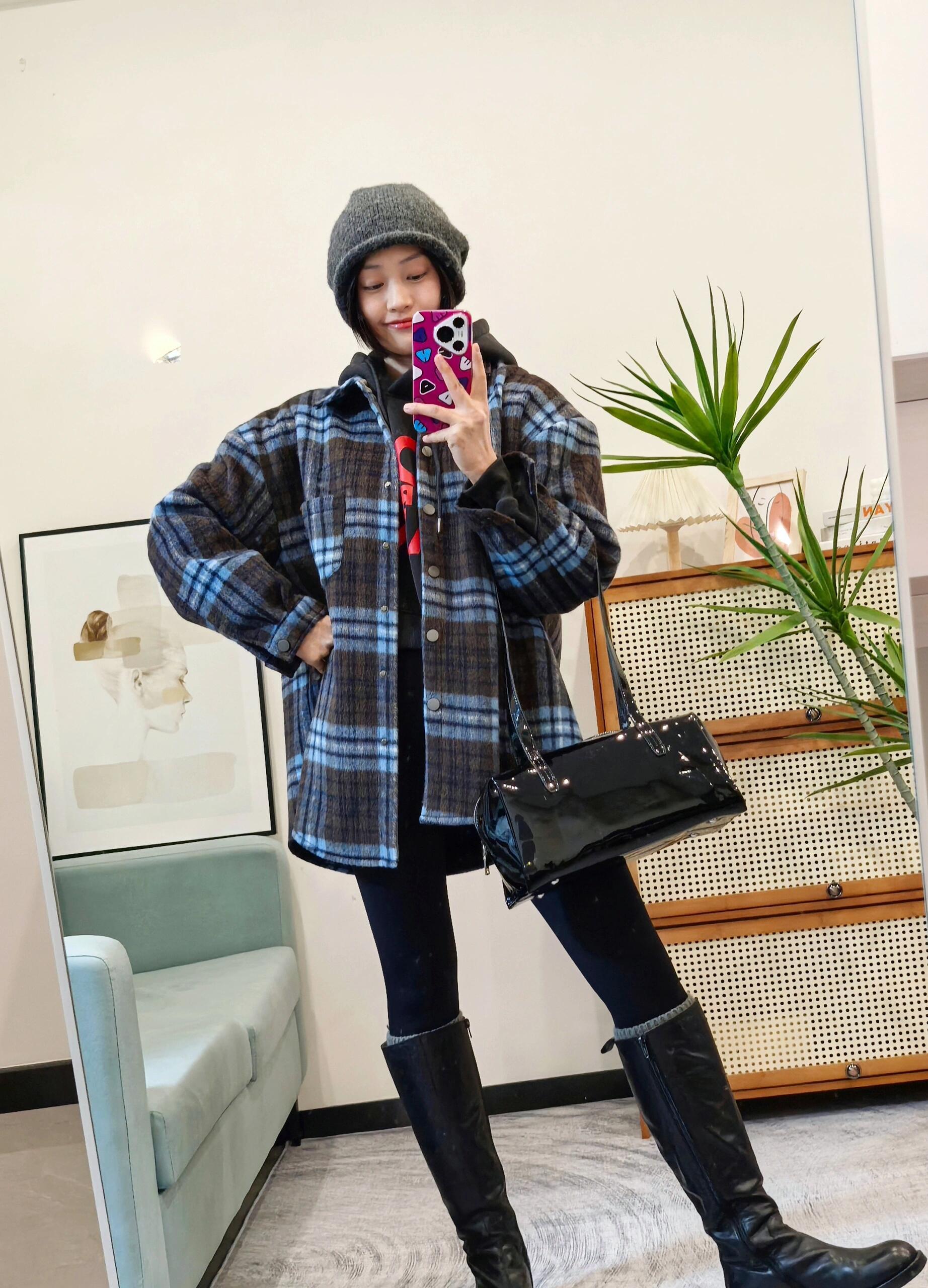 上身直接瘦10斤!进口韩国磨毛面料,蓝灰棕三色原料交织纺纱格纹 自带柔雾感!区别普通格纹。