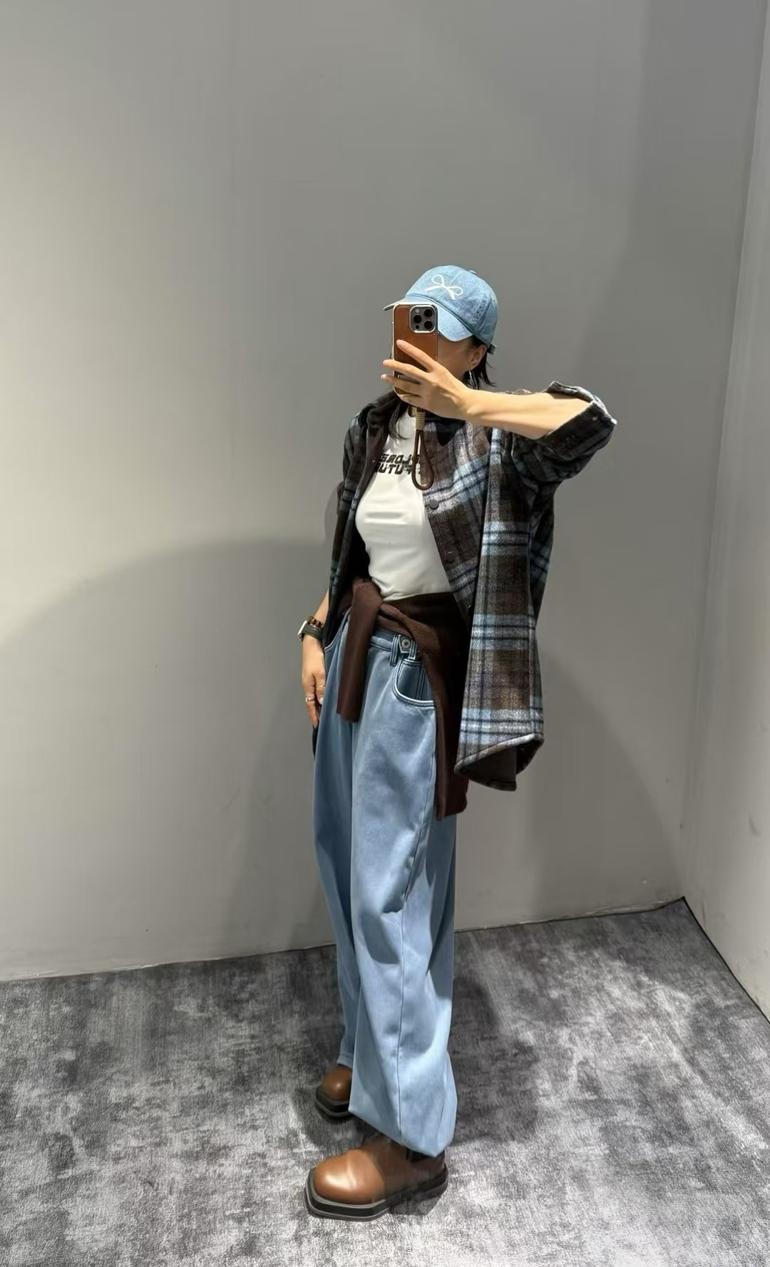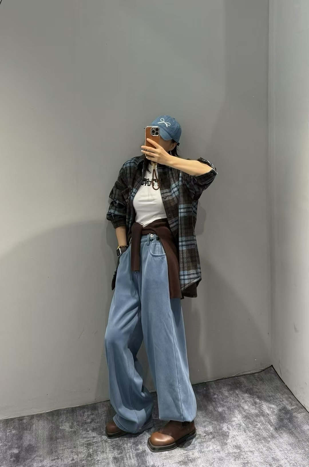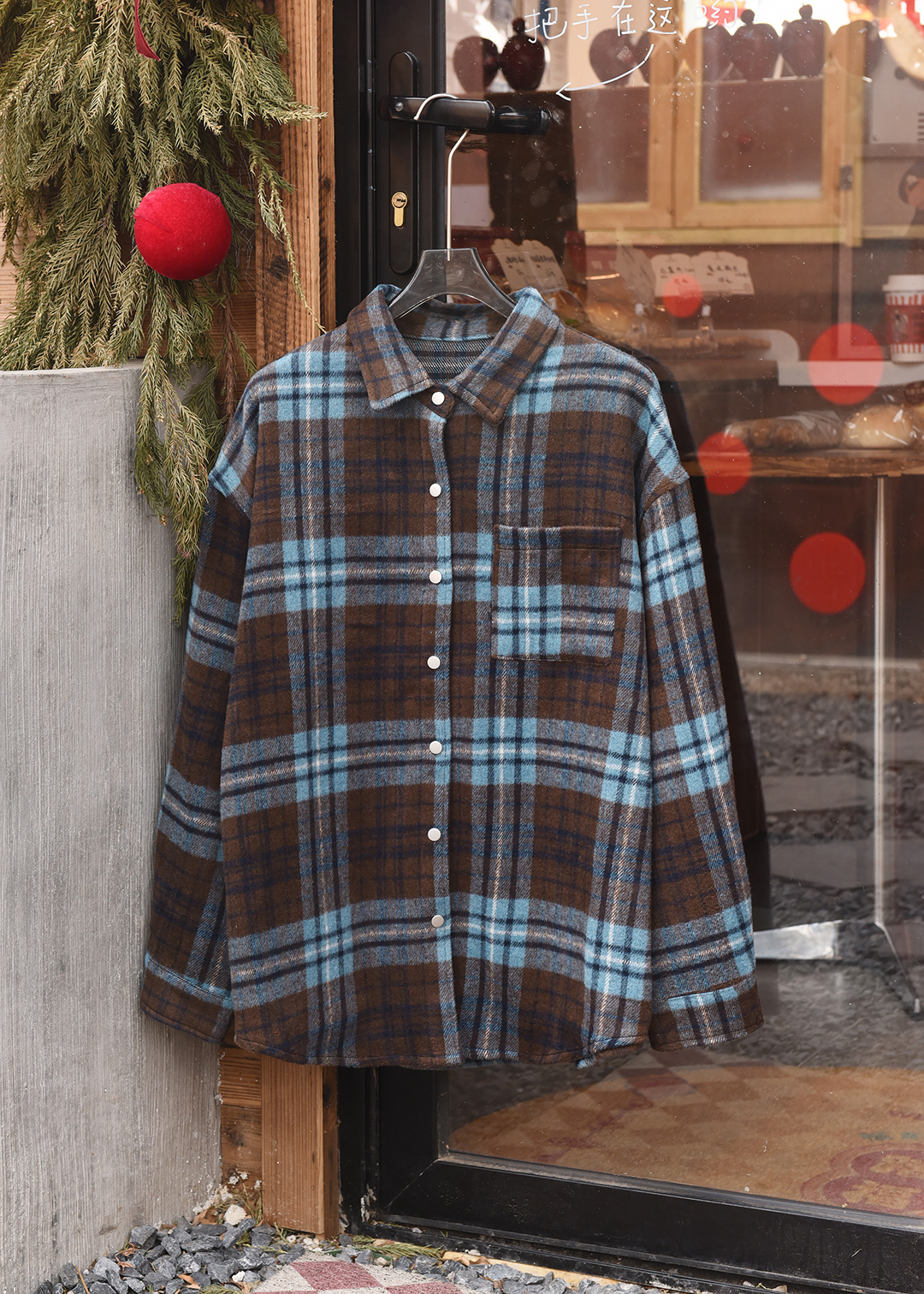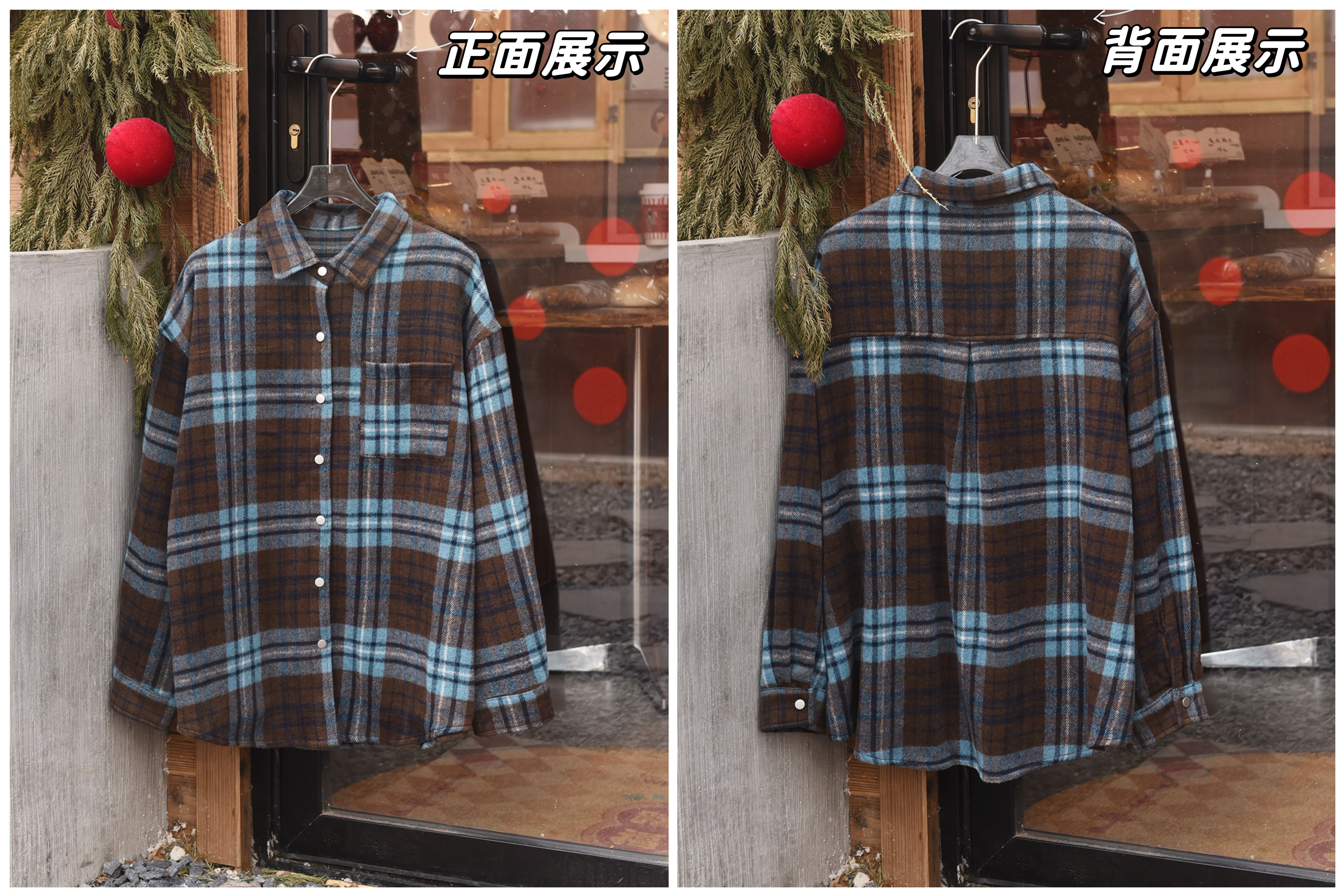 上身直接瘦10斤!进口韩国磨毛面料,蓝灰棕三色原料交织纺纱格纹 自带柔雾感!区别普通格纹。