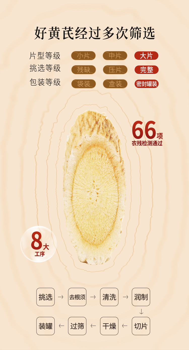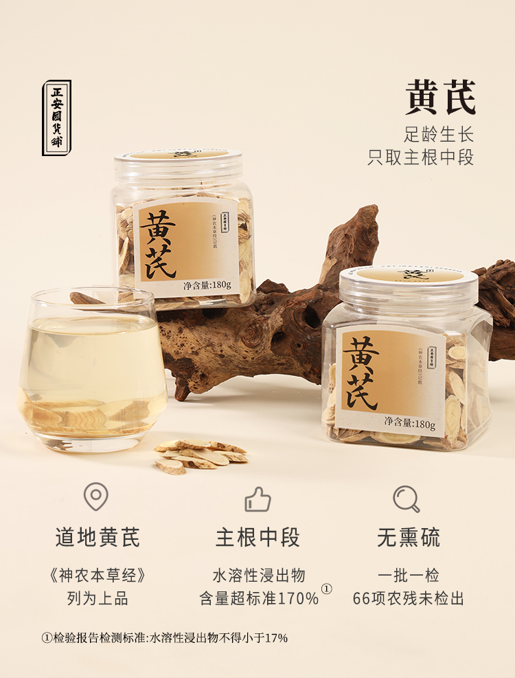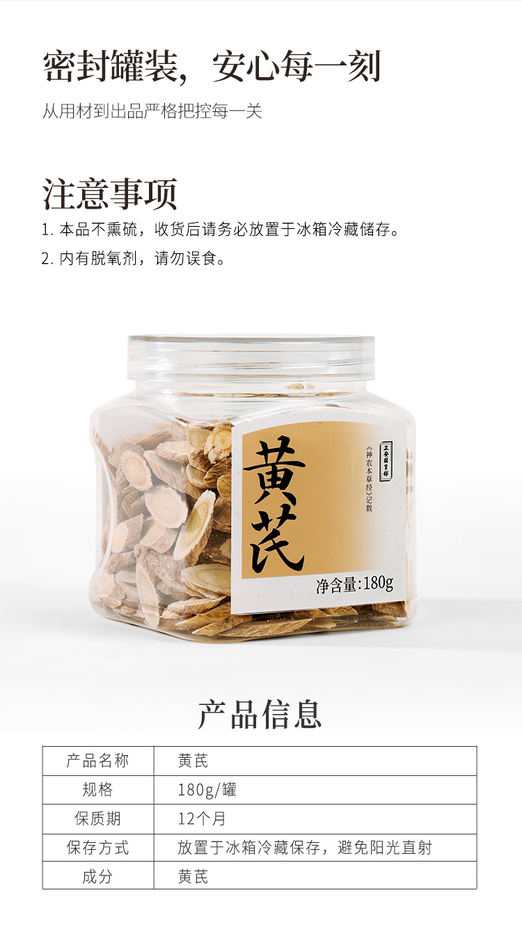 正安 甘肃黄芪 经过66项农残检测 主根切片优质原材 元气脾胃气短疲惫 老人家庭汤料茶饮办公室 2年生陇西黄芪180g/罐