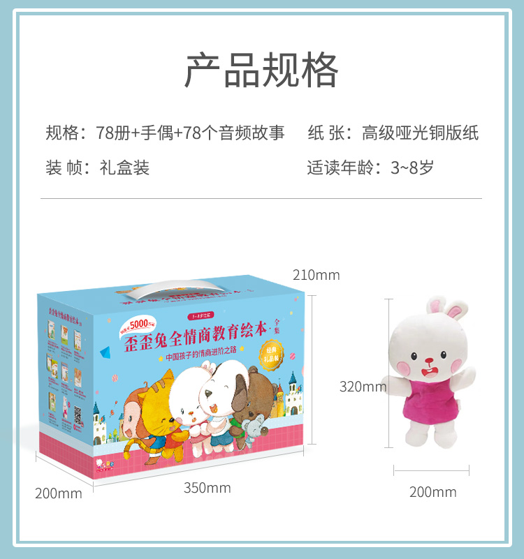- 歪歪兔,诞生于2007年,专注0-12岁儿童教育产品研发。原创童书销量逾1亿册,音视频播放总量10亿+。