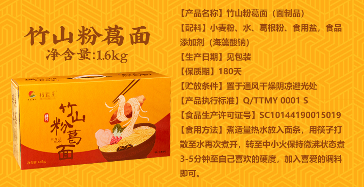 转运星竹山粉葛面经典款1.6kg 口感顺滑营养非油炸 快煮面条 可拌面火锅面炒面 全国非偏远区包邮