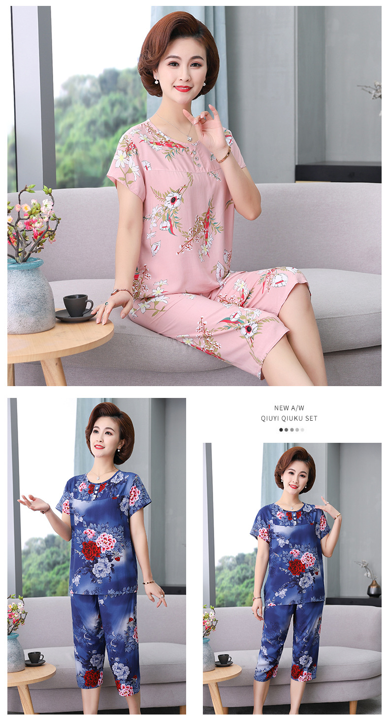 上海旗袍厂YQ-DZ103棉绸套装40支睡衣薄款短袖棉绸优雅家居