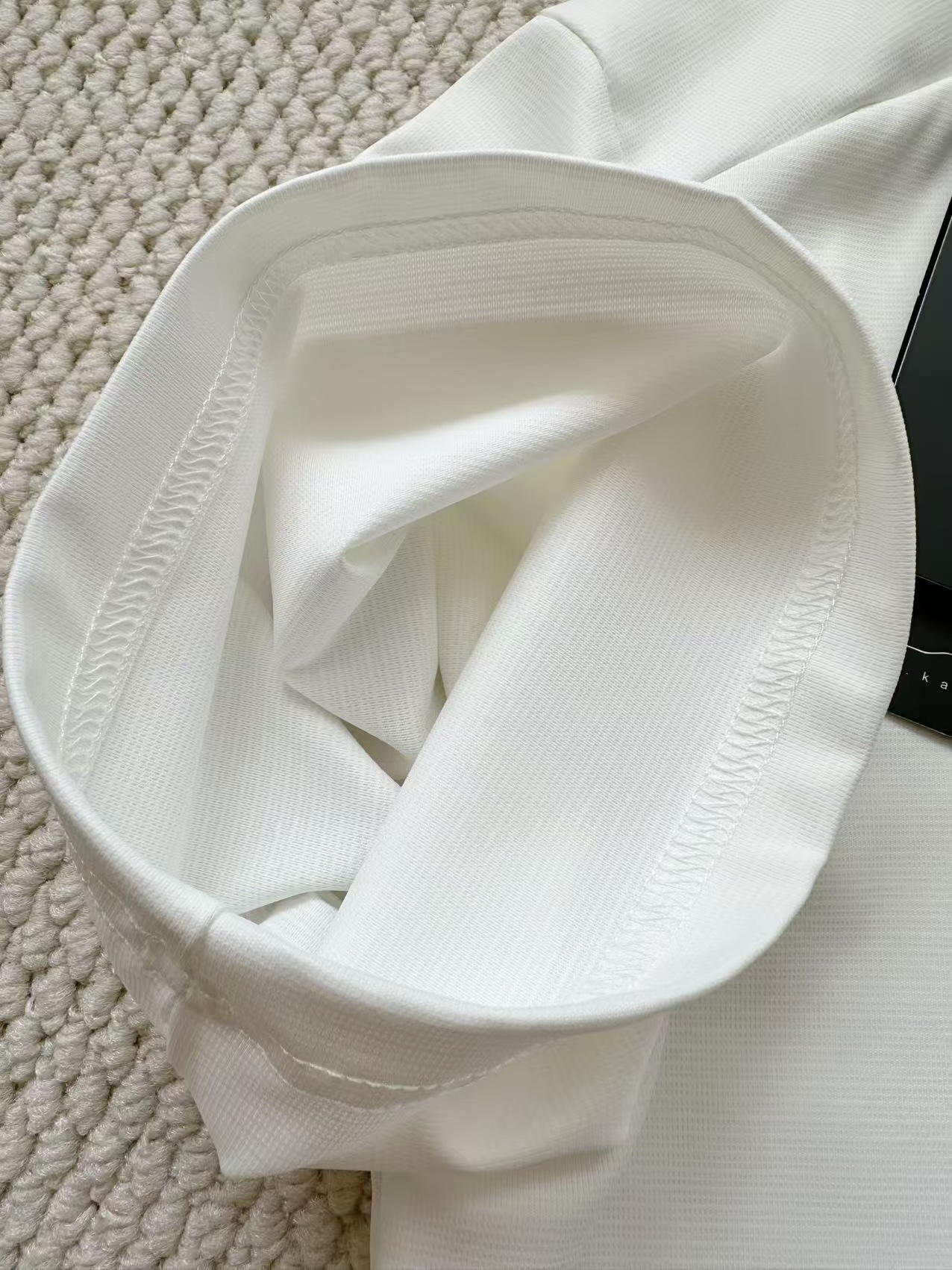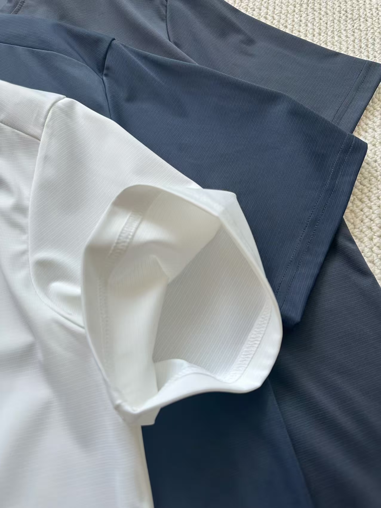 采用定制速干防晒透气面料,原纱氨纶抗菌面料,长效避免汗后异味滋生!凉感科技面料,后背运动出汗区域镭射冲孔设计,有效增强易汗区透气排湿功能!抗紫外线UPF50+,防晒黑晒伤