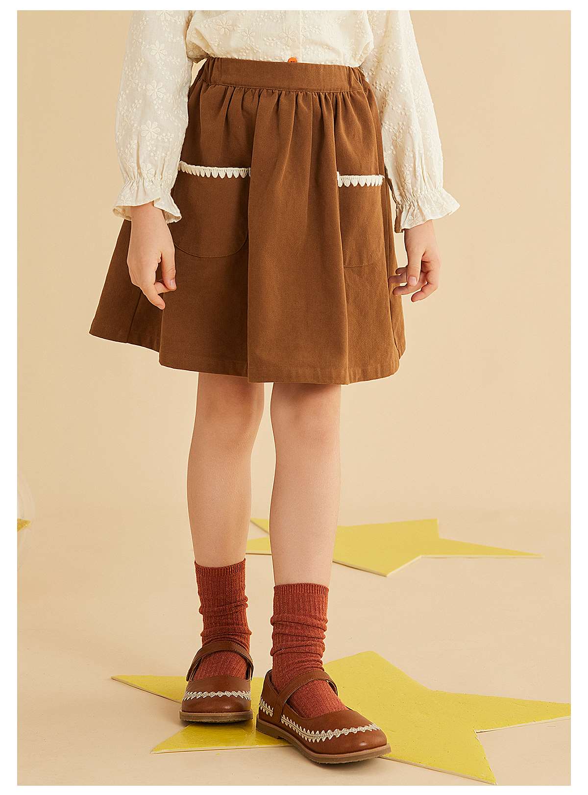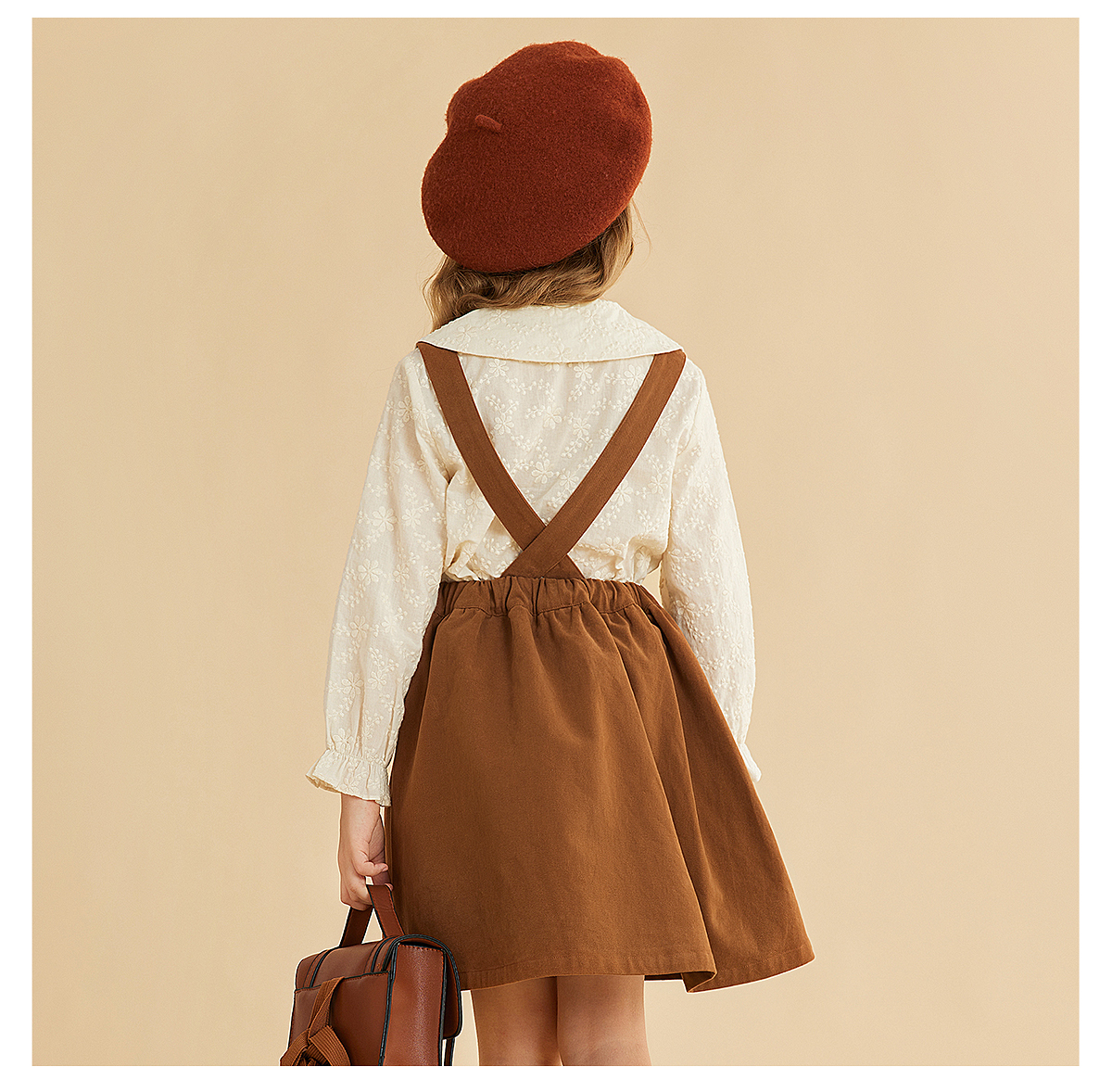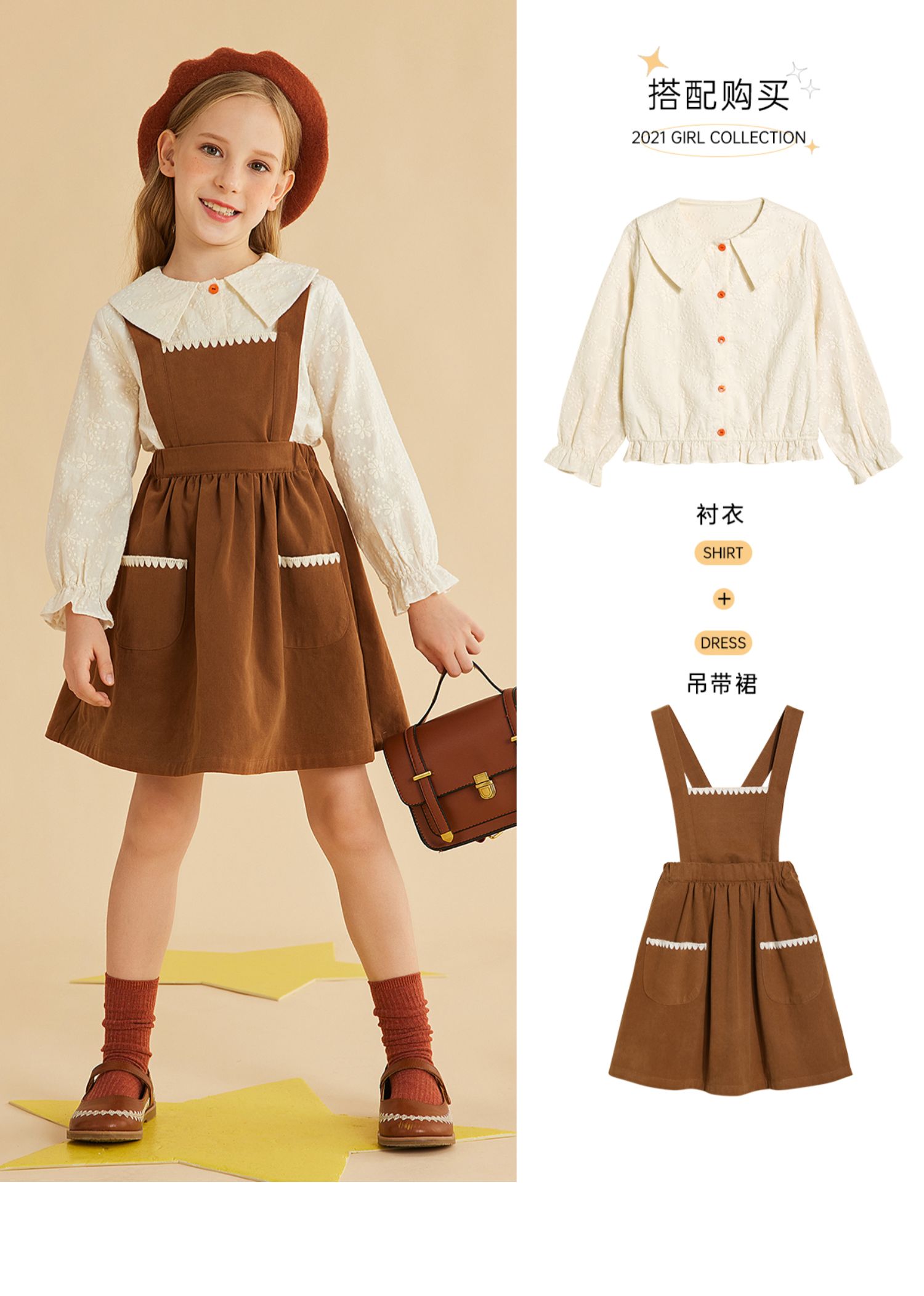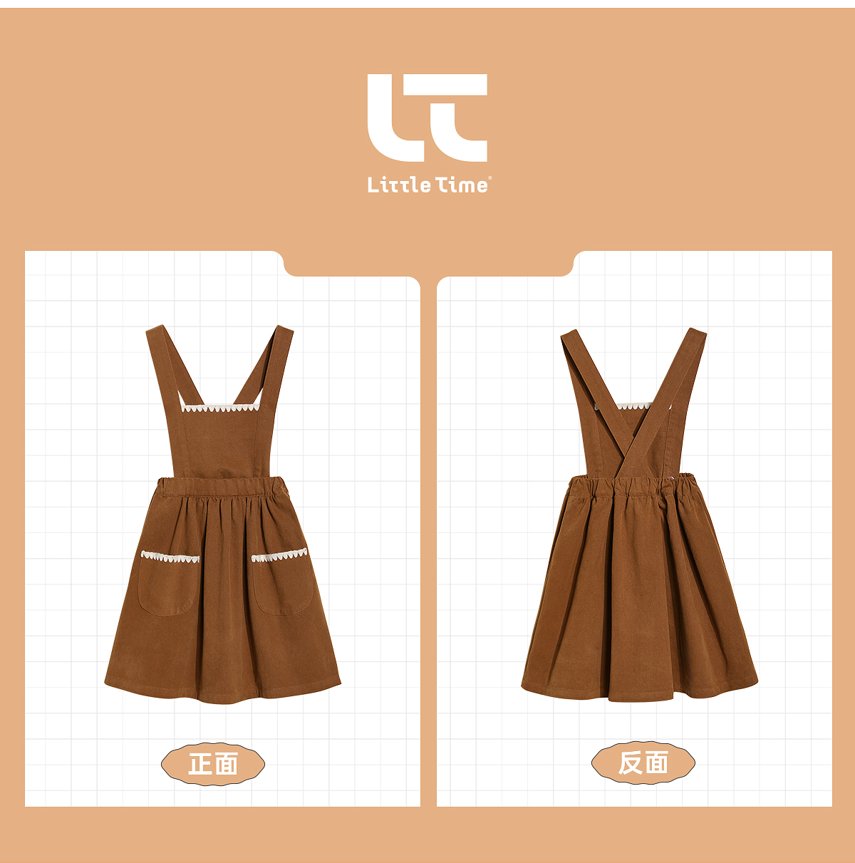 littletime女童背心裙贝壳边2021秋季新款复古可拆两穿儿童背带裙
