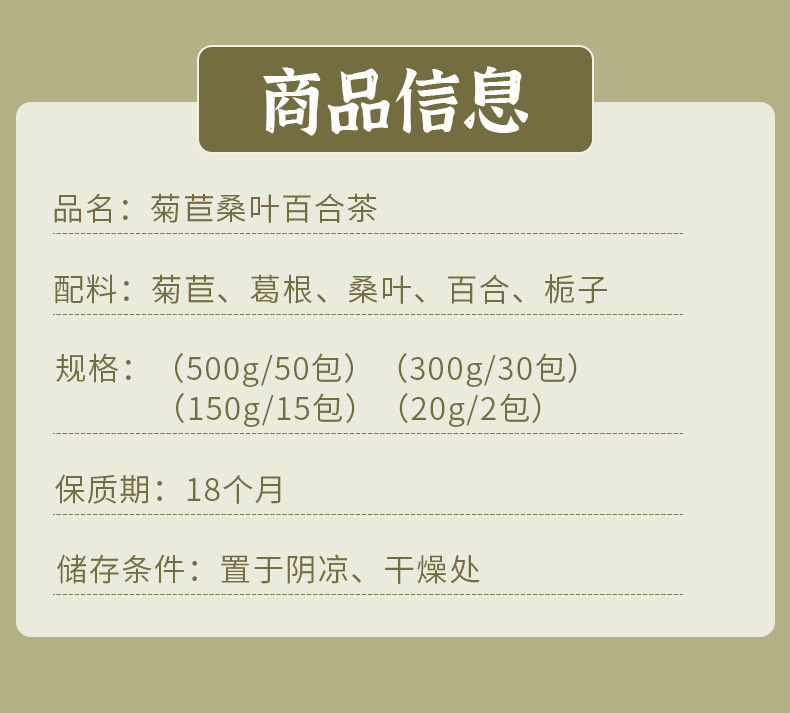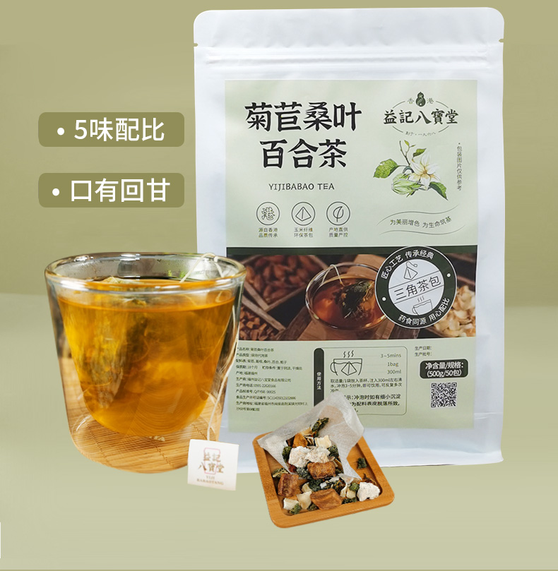 【新品】香港益记八宝堂菊苣桑叶百合茶牛皮纸袋装甄选好料旅行装