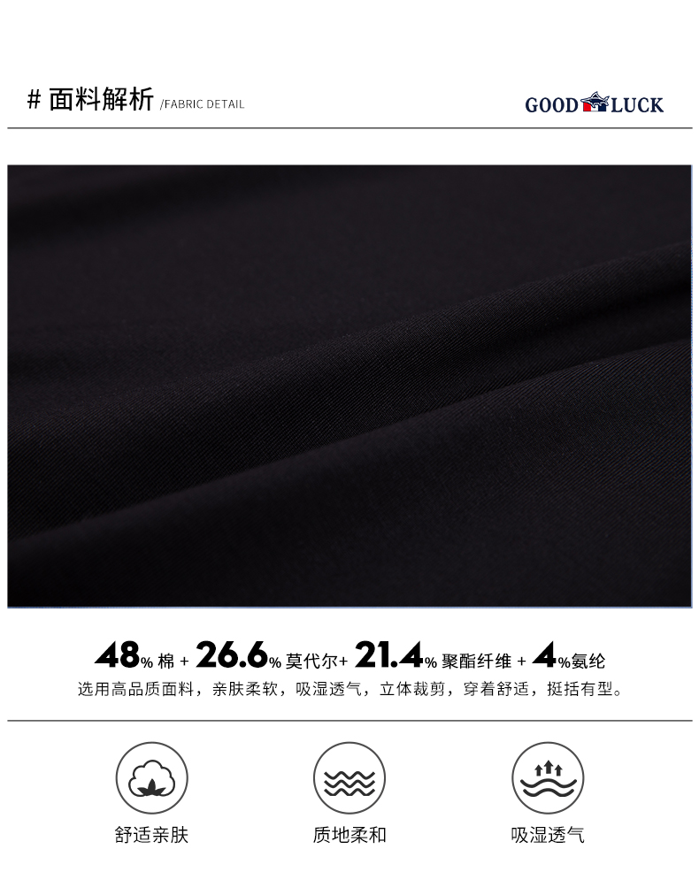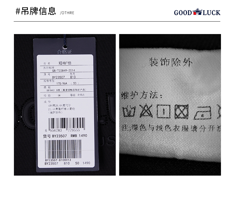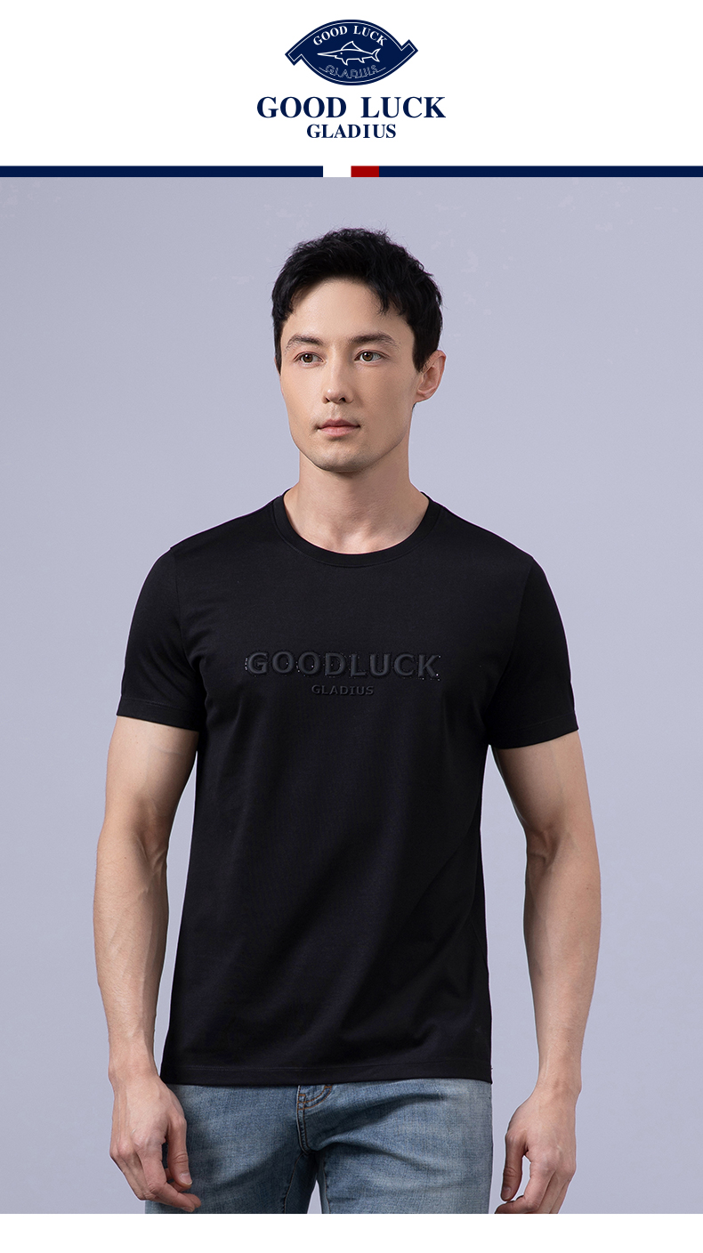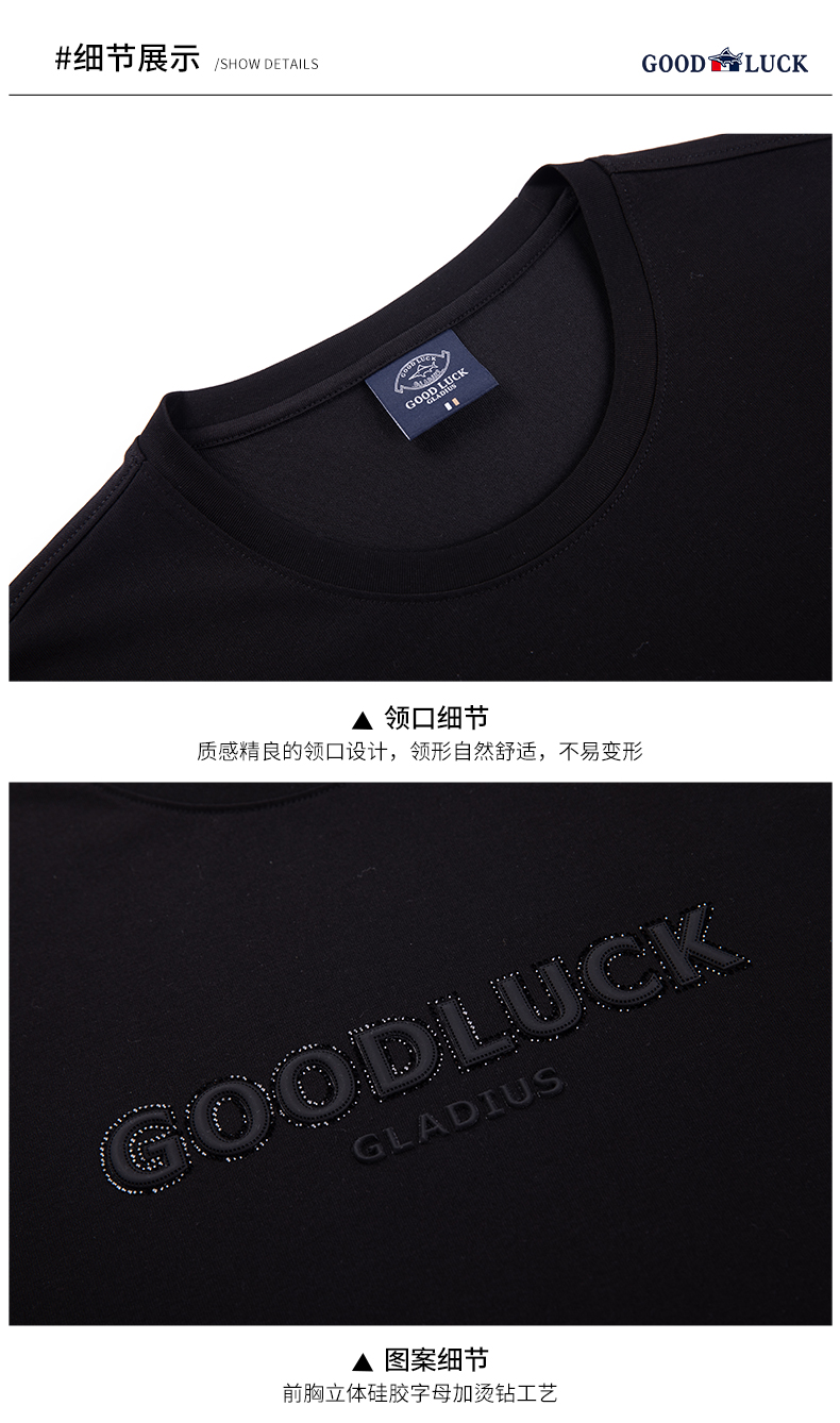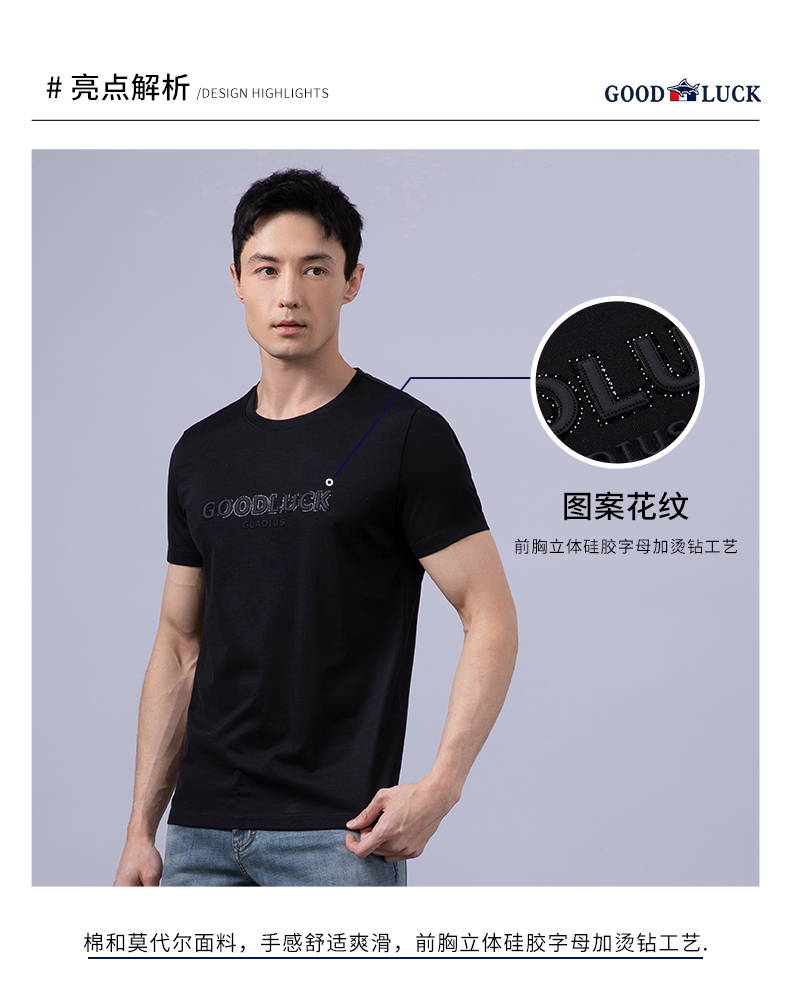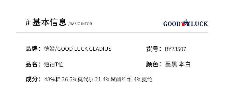 GOOD LUCK/德鲨棉莫代尔混纺质感前胸图案舒适百搭圆领短袖T恤BY23507