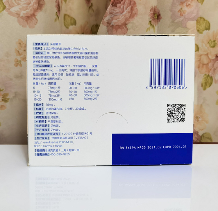 法国维克乐利鲜片75mg300mg600宠物猫藓狗鲜真菌皮肤病感染发炎
