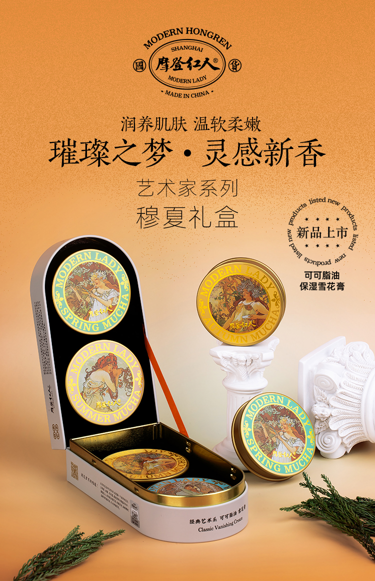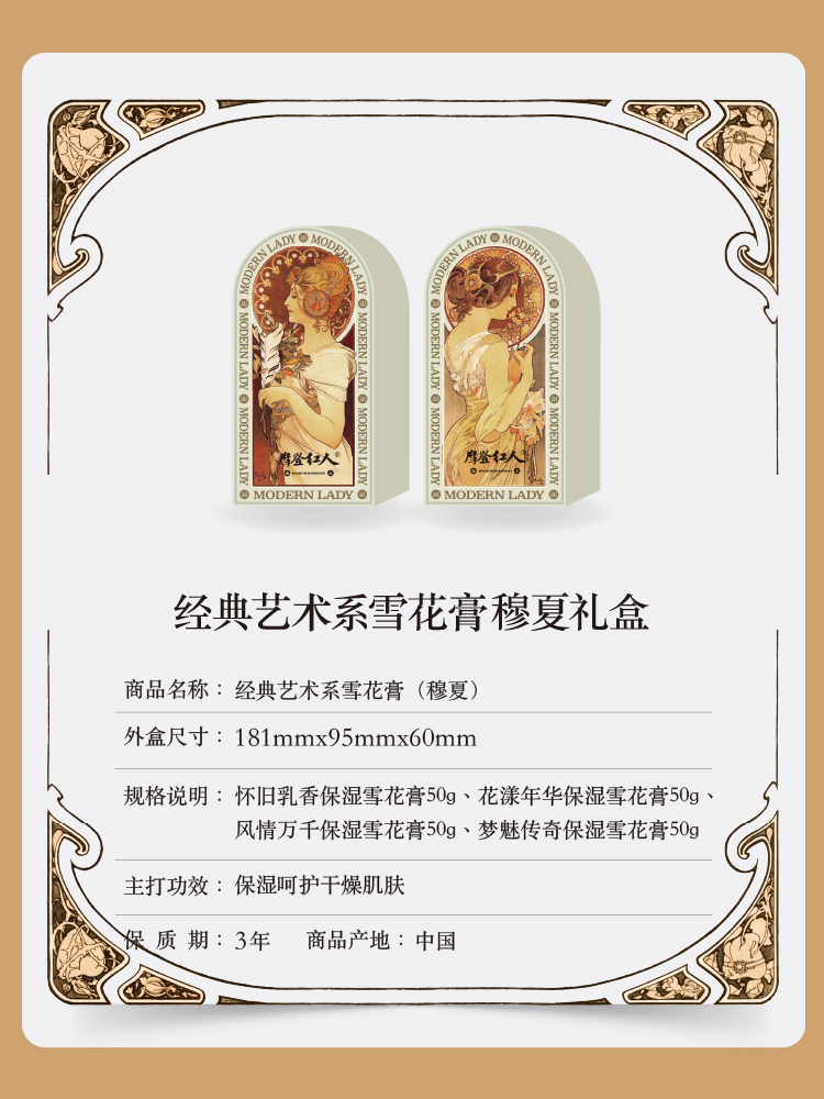 摩登红人官方正品老上海雪花膏保湿面霜穆夏系列套装礼盒多用身体乳护手霜送礼伴手礼物亲人朋友