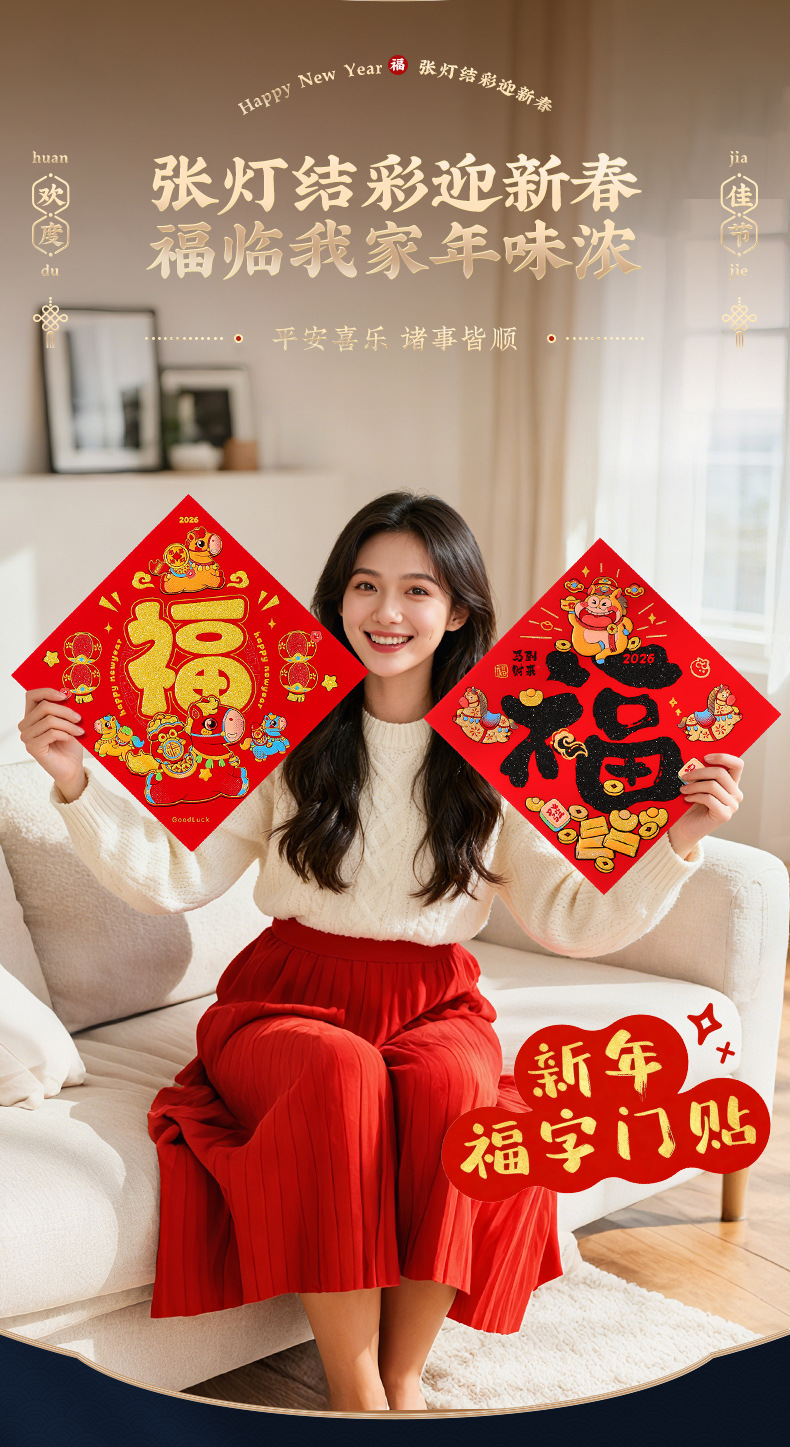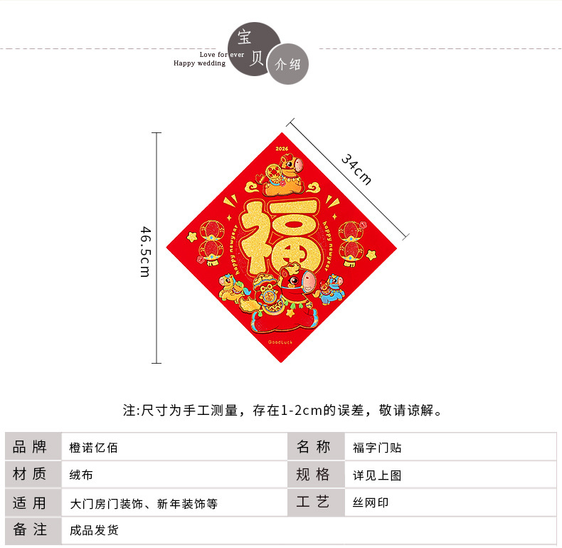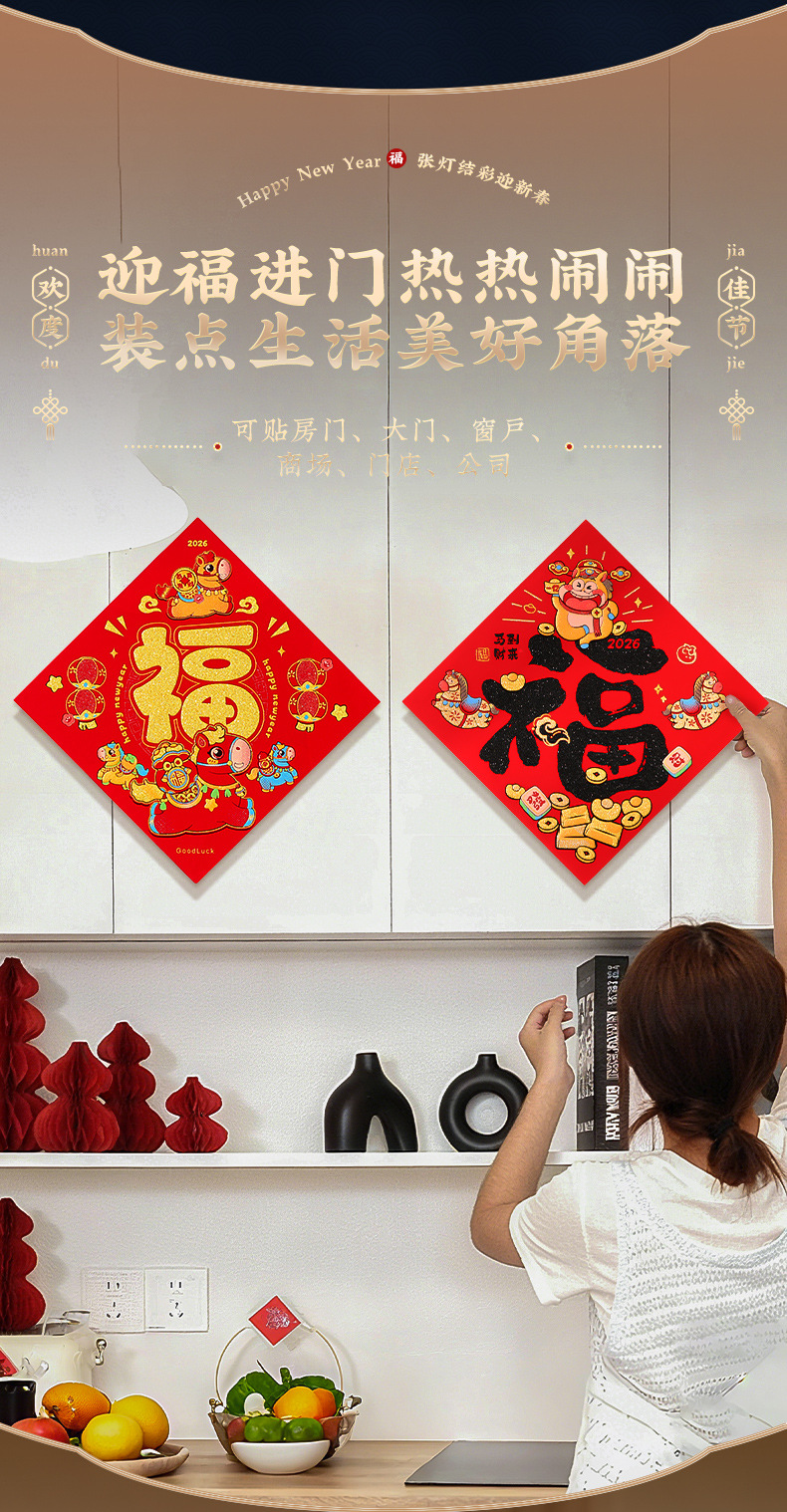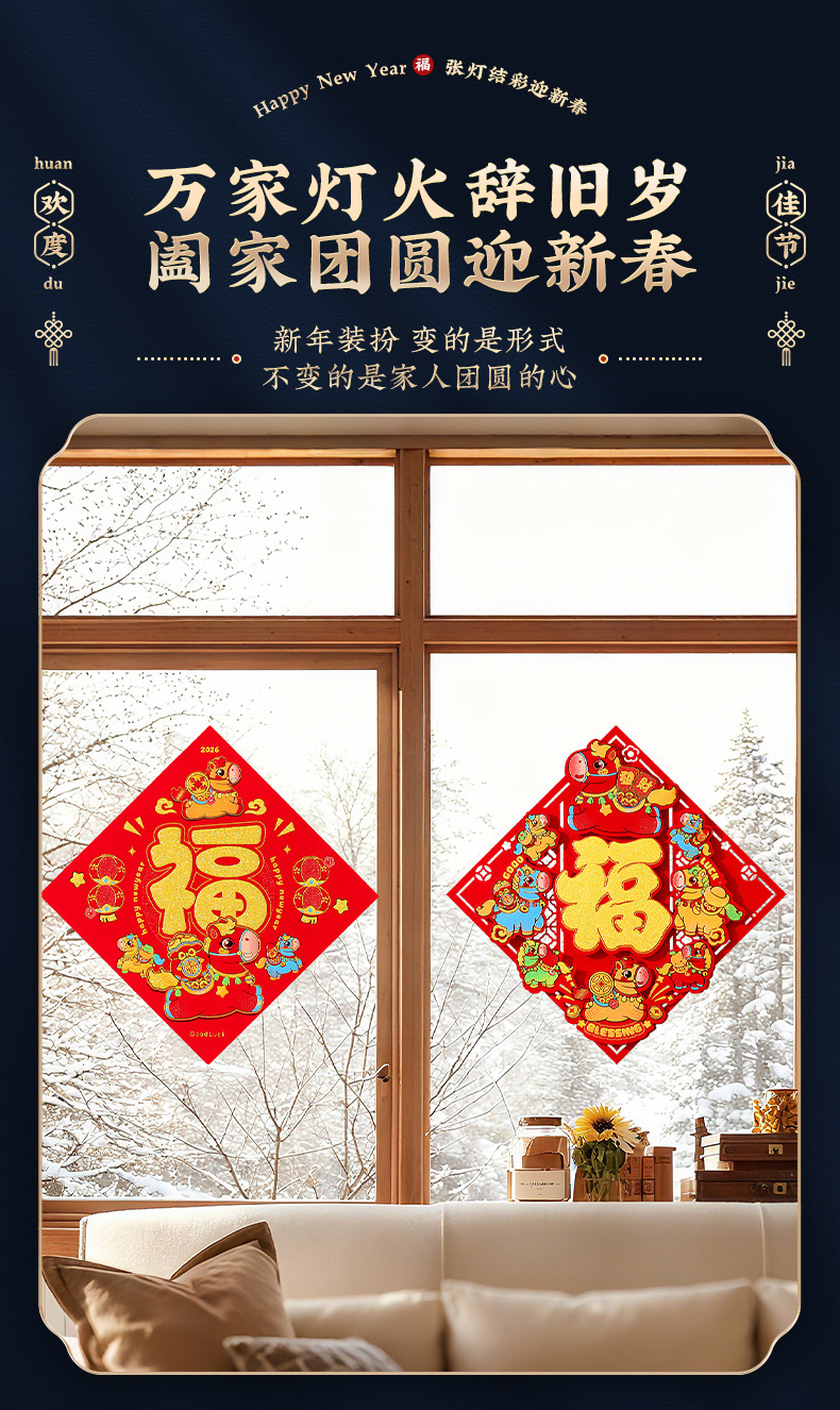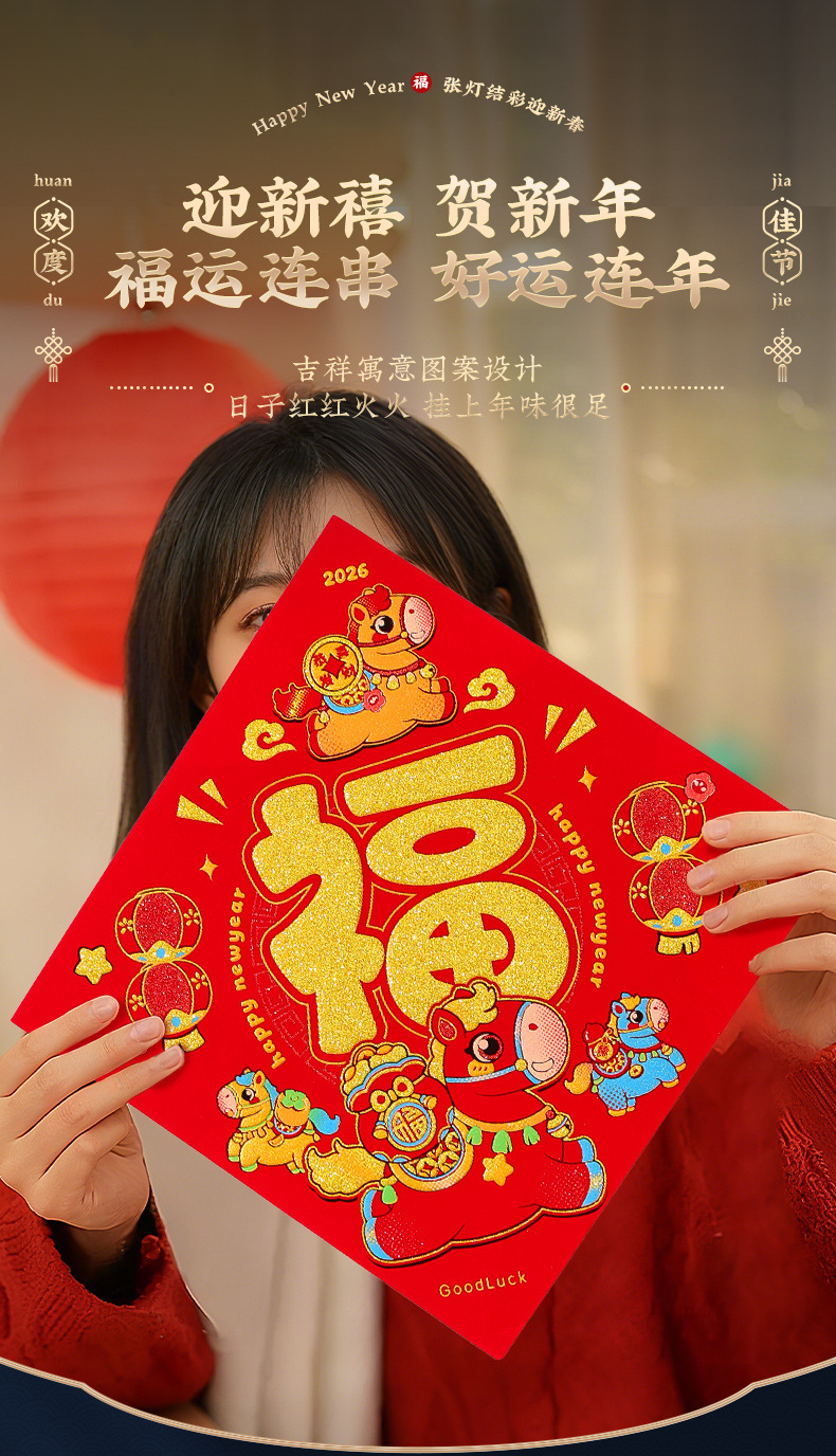 【纳福接运❗️马年福字门贴窗花】迎新禧 贺新年 福运连串 好运连年,2026过年春节植绒自粘贴纸新年装饰用品年画