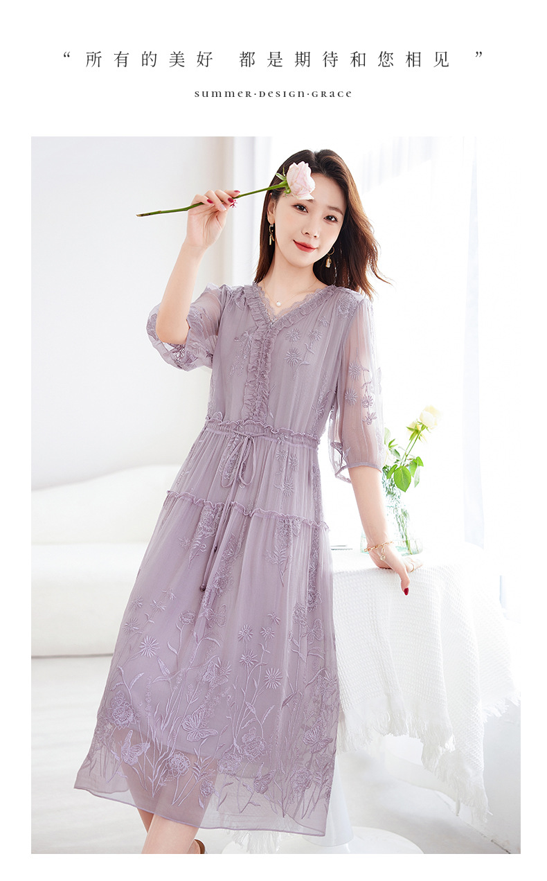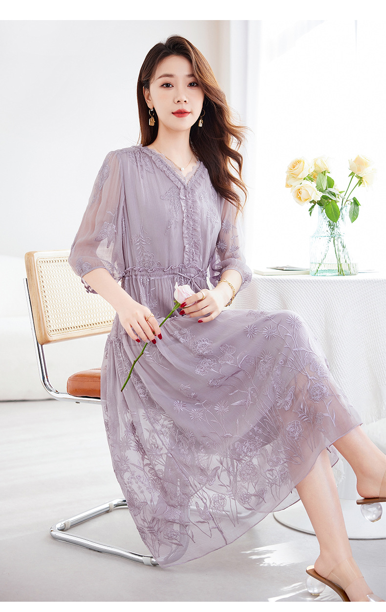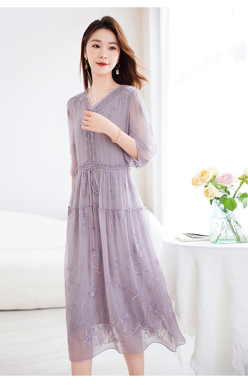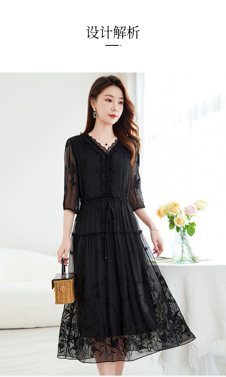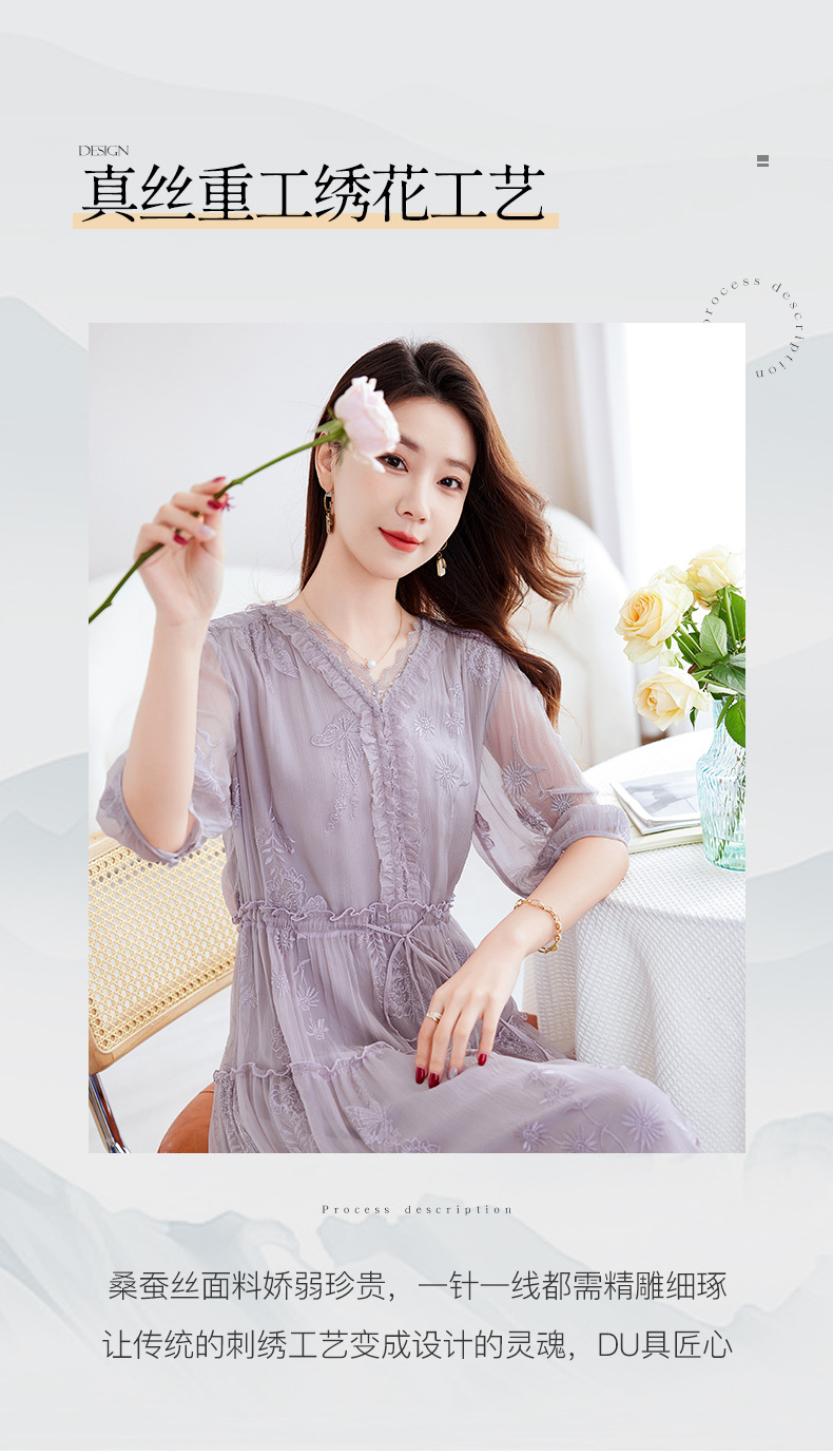 QS-82599500蚕光絮语新九天原创丝绸100%桑蚕丝重工绣花真丝连衣裙女9500