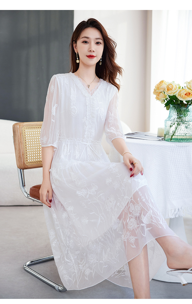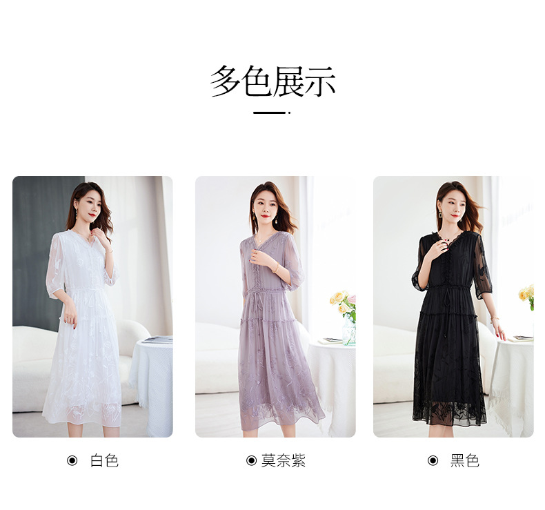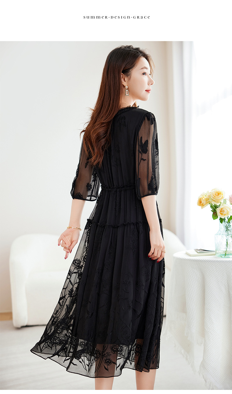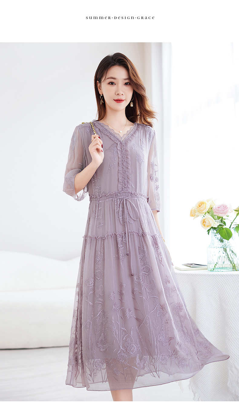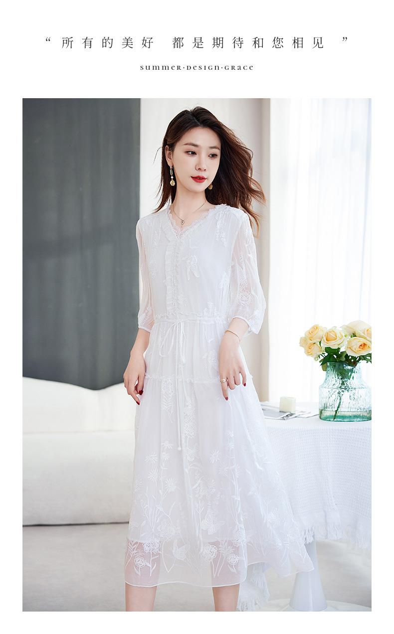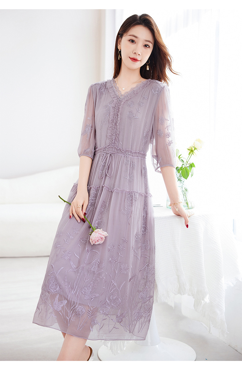 QS-82599500蚕光絮语新九天原创丝绸100%桑蚕丝重工绣花真丝连衣裙女9500