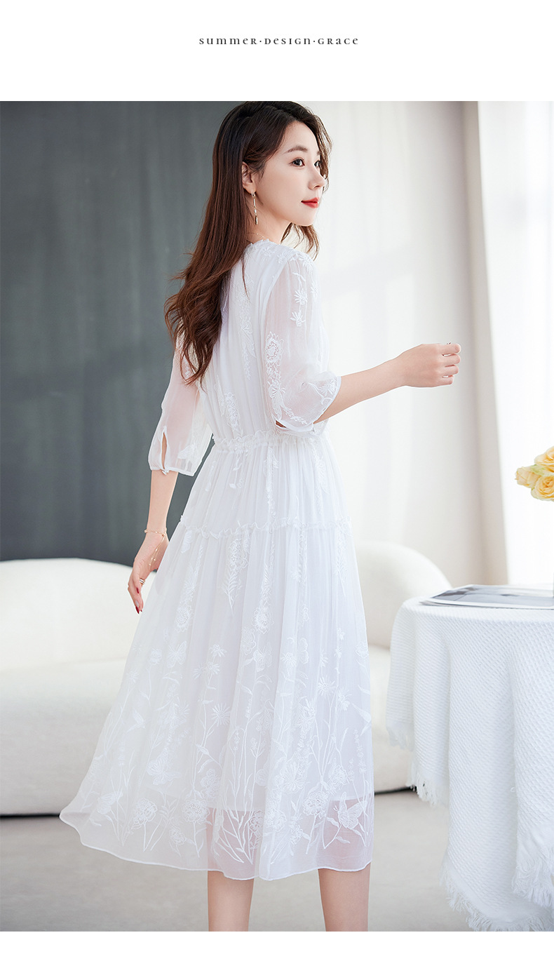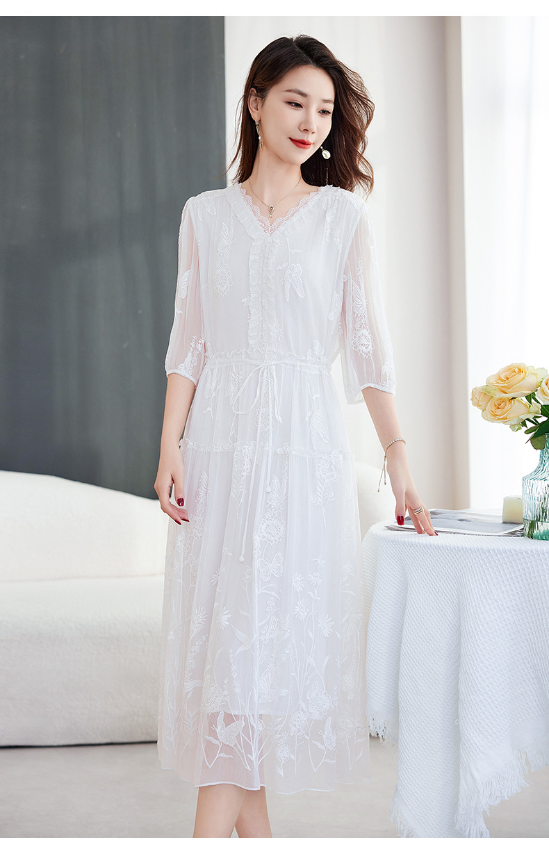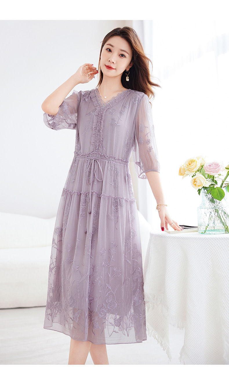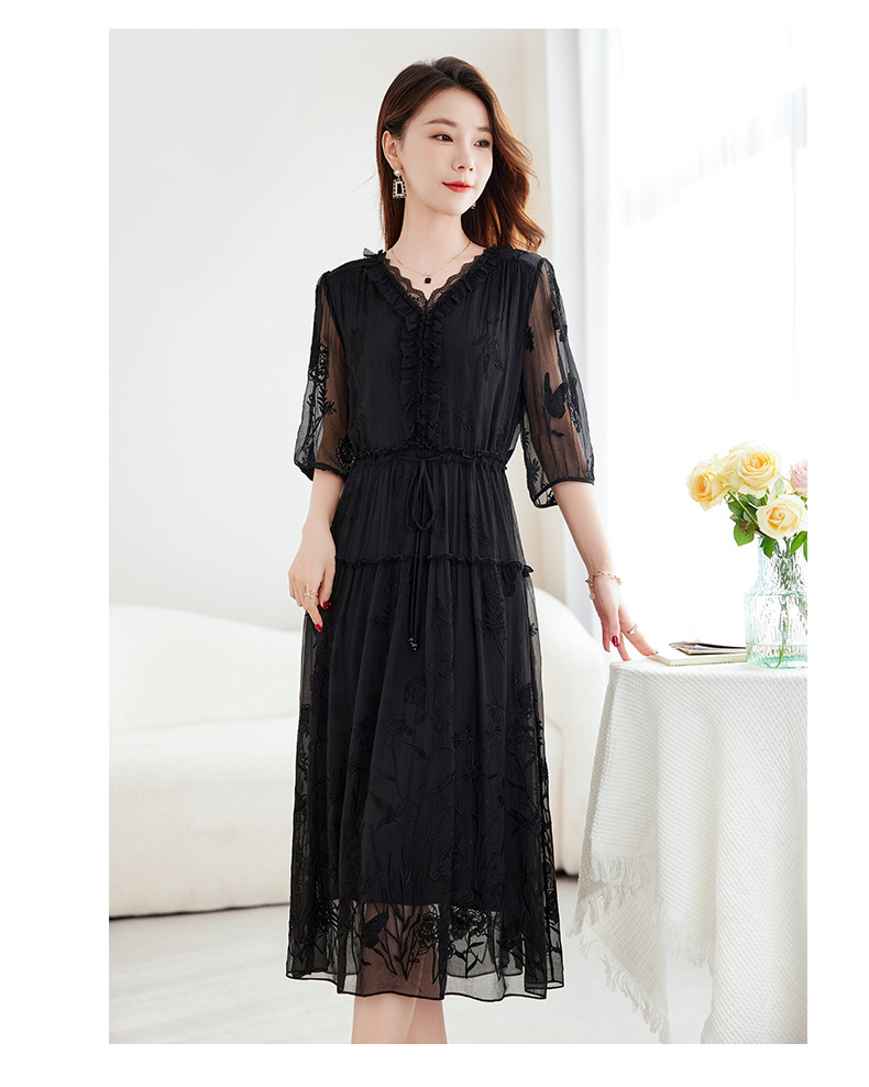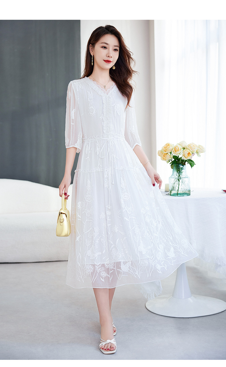 QS-82599500蚕光絮语新九天原创丝绸100%桑蚕丝重工绣花真丝连衣裙女9500