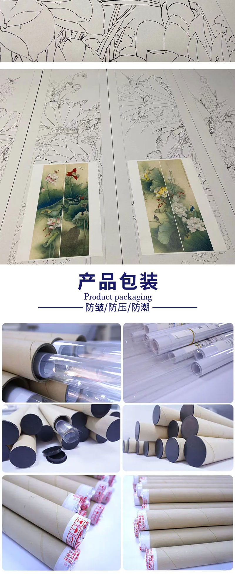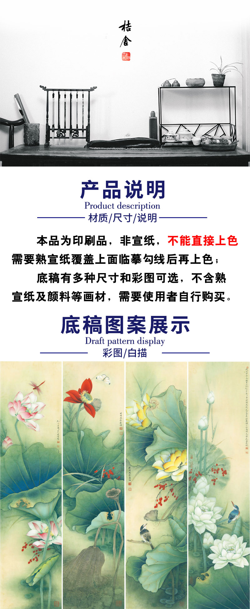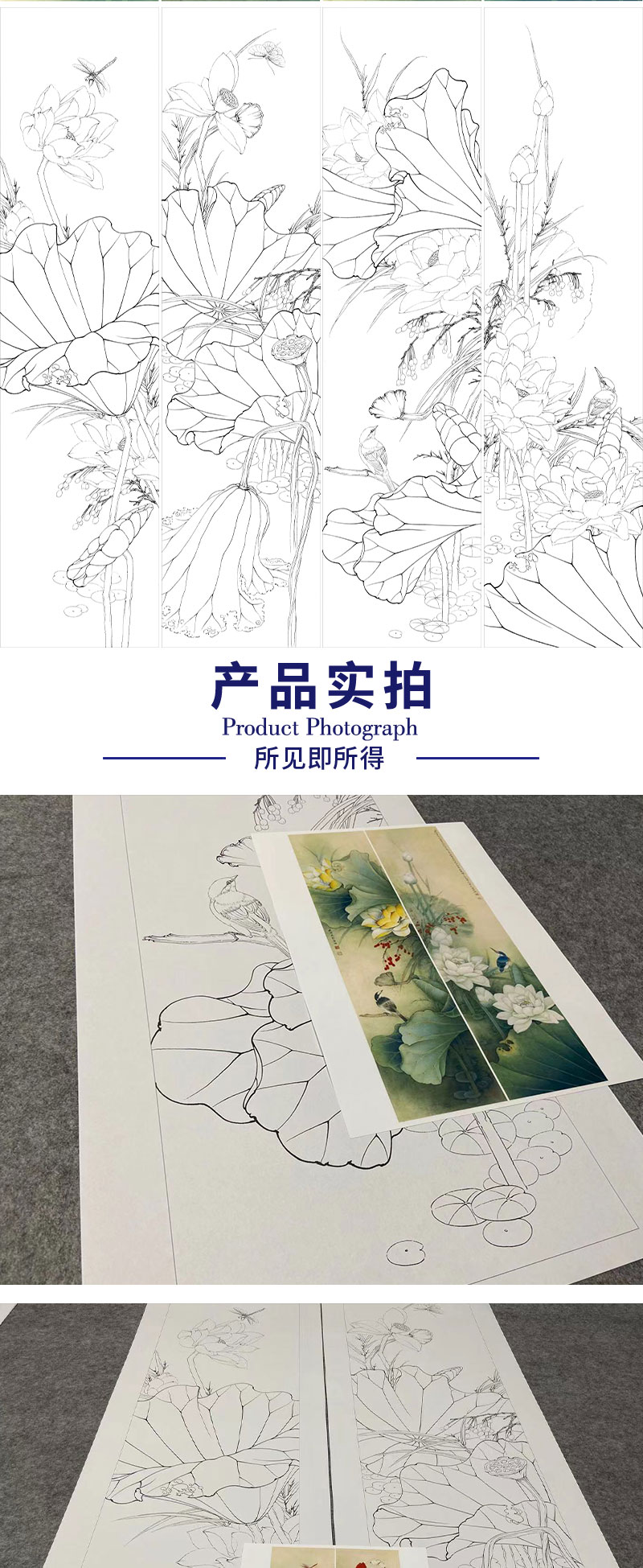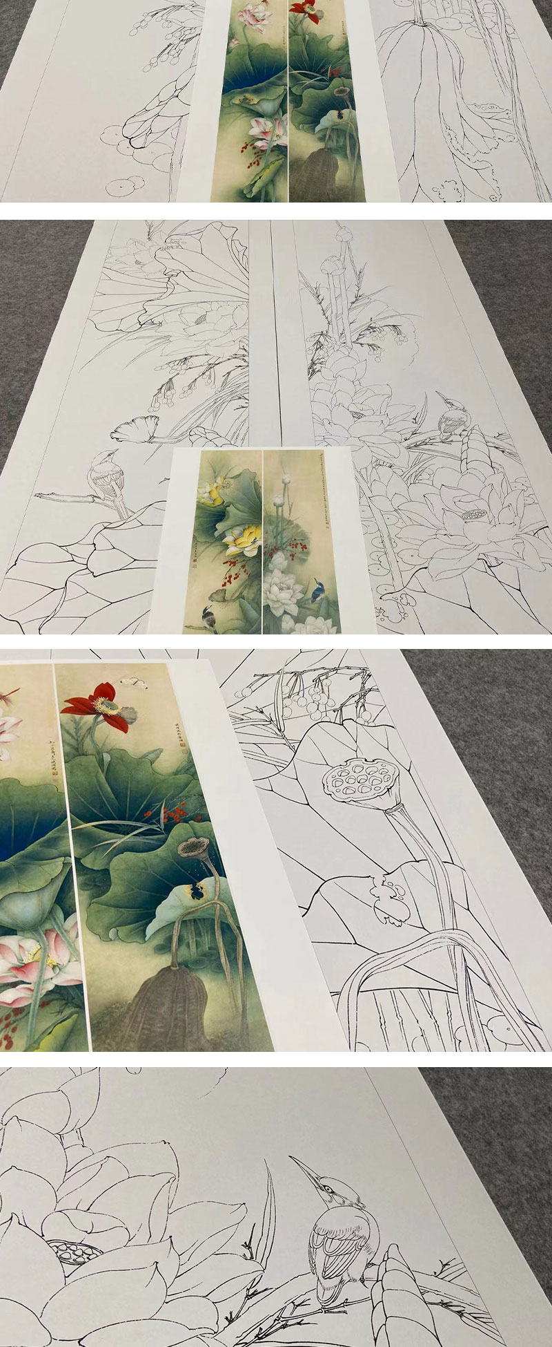 【四条屏】李晓明工笔画白描底稿荷花临摹勾线花鸟线稿选KA33